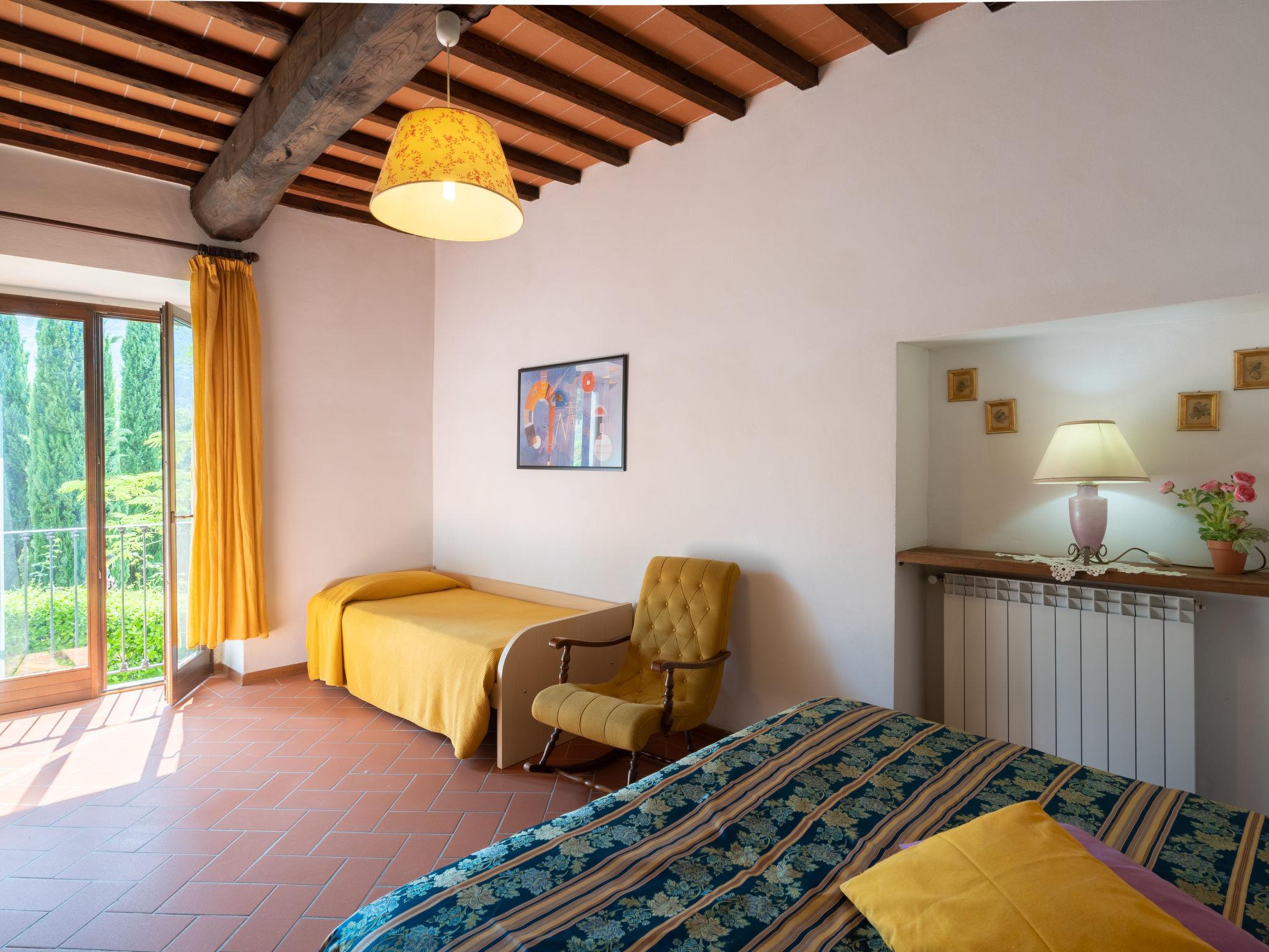Rustikal, freistehend auf Weingut Landwirtschaftlicher Betrieb "Vigna La Corte", auf 2 Stockwerken, aus dem 16. Jahrhundert, umgeben von Bäumen, Wiesen und Feldern. 3 Häuser in der Residenz. 13 Wohnungen in der Residenz. 2 km vom Zentrum von Dicomano, 7.2 km vom Zentrum von Vicchio, 45 km vom Zentrum von Firenze, alleinstehende, erhöhte Lage am Hang. Zur Mitbenutzung: Grundstück 60 ha mit Pflanzen und Bäumen, Wiese, Schwimmbad (16 x 8 m, 140 cm tief, saisonale Verfügbarkeit: 01.Mai. - 01.Okt.). Aussendusche, Tischtennis, Laube, Terrasse, Gartenmöbel, Grill. In der Anlage: Empfang, Wireless LAN, Tischfussball, Waschmaschine (zur Mitbenutzung), Heizung nur verfügbar von 15.Nov. - 15.Apr.. Zufahrt (500 m Naturweg). Parkplatz (überdacht) auf dem Grundstück. Supermarkt 2 km, Restaurant 2 km, Bushaltestelle 900 m, Bahnstation "Dicomano" 2 km. Nahe gelegene Sehenswürdigkeiten: Autodromo Internazionale del Mugello 25 km, Outlet Barberino del Mugello 35 km. Auf dem Grundstück Tierhaltung. Ab Hof Verkauf von bäuerlichen Produkten. Bitte beachten: Eisenbahnlinie 1 km vom Haus.