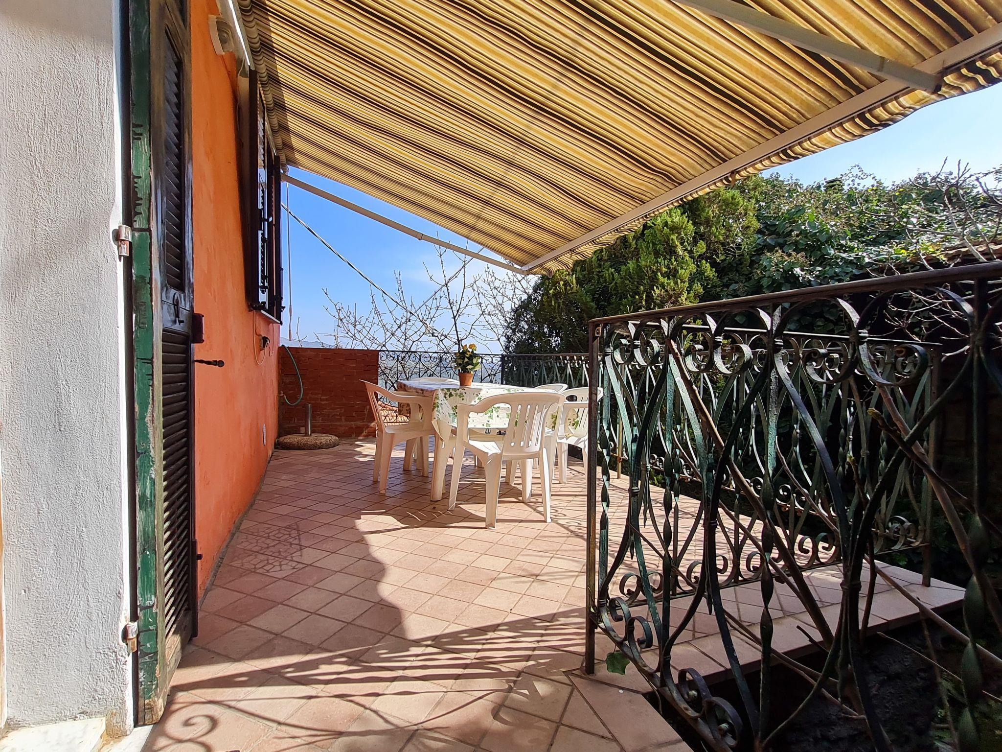 "Agnese (DOL235)", 3-Zimmer-Haus 65 m2. Zweckmässig eingerichtet: Wohn-/Schlafzimmer mit 1 Diwanbett und offenem Kamin (nur Deko), Esstisch und Sat-TV. 1 Zimmer mit 1 Doppelbett (160 cm). 1 Zimmer mit 2 Betten (80 cm). Offene Küche (Backofen, 4 Flammen, elektrische Kaffeemaschine). Bad/WC. Keine Heizmöglichkeit. Terrasse 15 m2 teilweise überdacht. Terrassenmöbel, Gartengrill (mobil). Schöne Fernsicht auf die Berge, das Tal und das Meer. Zur Verfügung: Waschmaschine, Kinderhochstuhl, Babybett. Maximal 1 Haustier/Hund erlaubt. IT008030C2PZF4FHUG