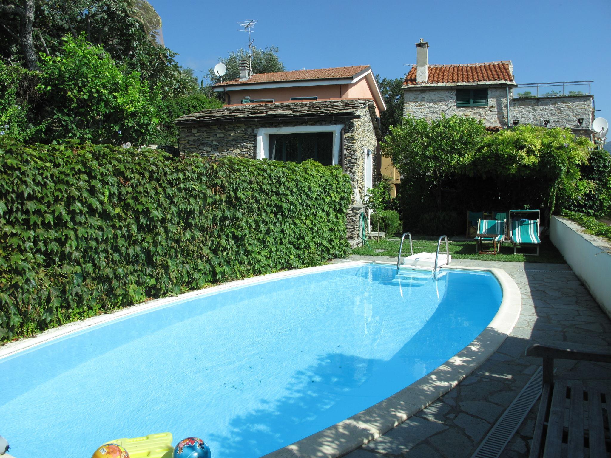 Schönes Landhaus auf 2 Stockwerken, einseitig angebaut. Im Weiler Bellissimi, 4 km vom Zentrum von Dolcedo, 13 km vom Zentrum von Imperia, am Hang, in einem Wohnquartier, 11 km vom Meer. Zur Mitbenutzung: Schwimmbad (8 x 4 m, 150 cm tief, saisonale Verfügbarkeit: 01.Mai. - 15.Okt.). Aussendusche, Poolpflege durch den Besitzer/Gärtner. Zur Alleinbenutzung: schöner, gepflegter Garten 200 m2 (eingezäunt) mit Rasen und Bäumen, Liegewiese. Sitzplatz, Laube, Gartenmöbel. Im Hause: Waschmaschine (zur Mitbenutzung). 200 m steiler Fussweg bis zum Haus. Öffentliche Parkplätze 200 m. Einkaufsgeschäft 4 km, Supermarkt 13 km, Restaurant 5 km, Bushaltestelle 200 m, Bahnstation "Imperia Porto Maurizio" 13 km, Kieselstrand "Imperia Porto Maurizio" 13 km, Freibad 10 km. Bitte beachten: Die Wohnung befindet sich in einer für den Verkehr begrenzt zugänglichen Zone (ZTL). In dieser Anlage zusätzlich mietbar: 1 Haus.