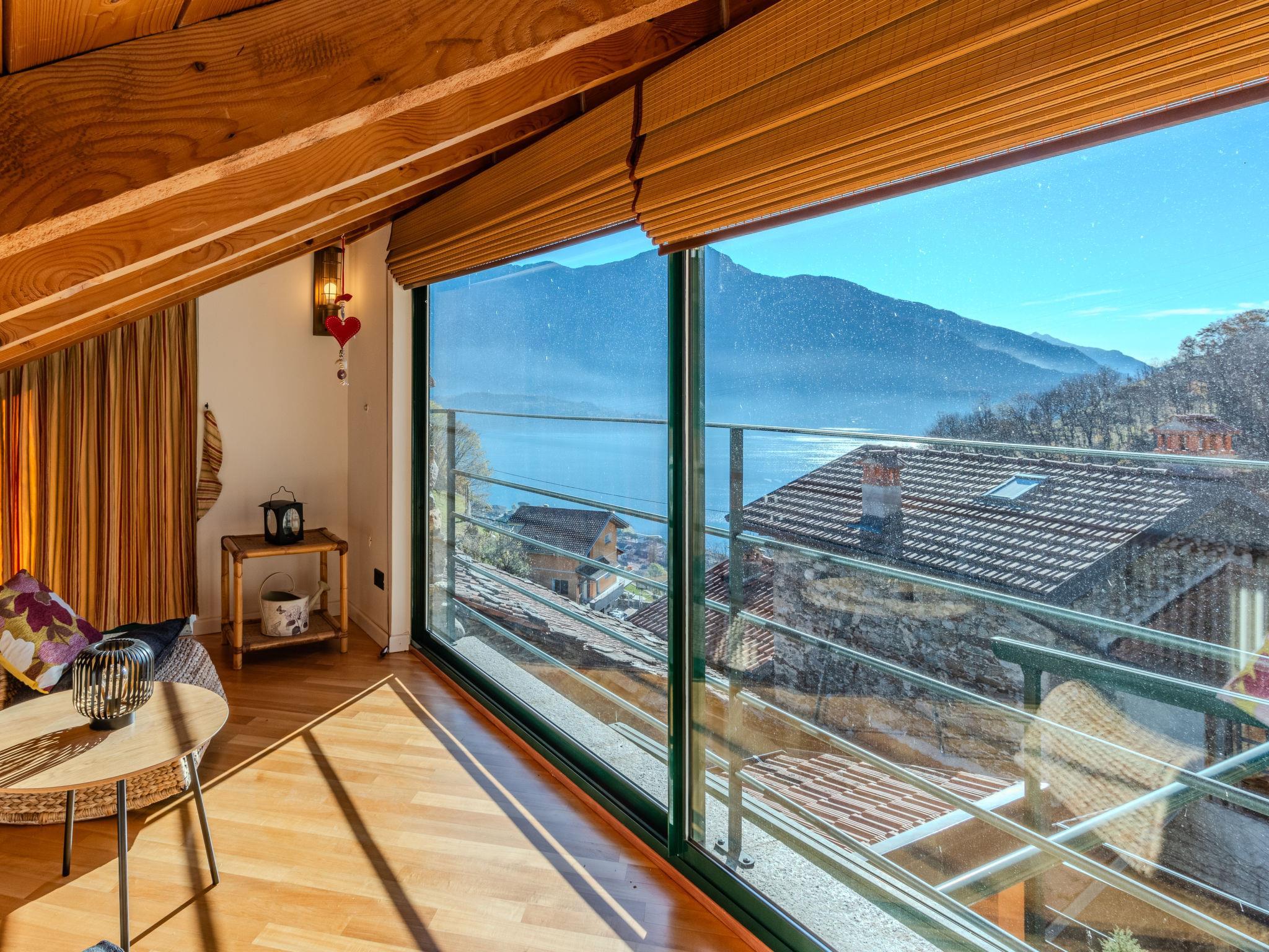 5-Zimmer-Haus 160 m2 auf 4 Stockwerken. Geschmackvoll und gemütlich eingerichtet: offener Eingang. Dusche/WC. Obergeschoss: offenes Wohn-/Esszimmer mit offenem Kamin und Sat-TV. Offene Küche (Geschirrspüler, 4 Induktionskochplatten, Toaster, Mikrowelle, elektrische Kaffeemaschine). 2. Obergeschoss: offenes Wohn-/Schlafzimmer mit 1 Diwanbett. Ausgang zur Terrasse. 1 offenes Zimmer mit 1 Bett und 1 Schlafmöglichkeit. 3. Obergeschoss: 1 offenes Doppelzimmer mit Panoramafenster Wintergarten mit 1 Doppelbett und Klimaanlage. 1 Doppelzimmer. Dusche/Bidet/WC, Whirlbadewanne. Heizung. Parkettboden, Natursteinboden. Balkon, Gartensitzplatz. Balkonmöbel, Gartengrill, Liegestühle (4). Herrliche Panoramasicht auf den See und die Landschaft. Zur Verfügung: Waschmaschine, Wäschetrockner, Haartrockner. Internet (Wireless LAN, gratis). Garage (1 Auto). Bitte beachten: für Kleinkinder nicht geeignet. Nichtraucher-Haus. Kein Fahrstuhl. IT013089C25R2HRSC3