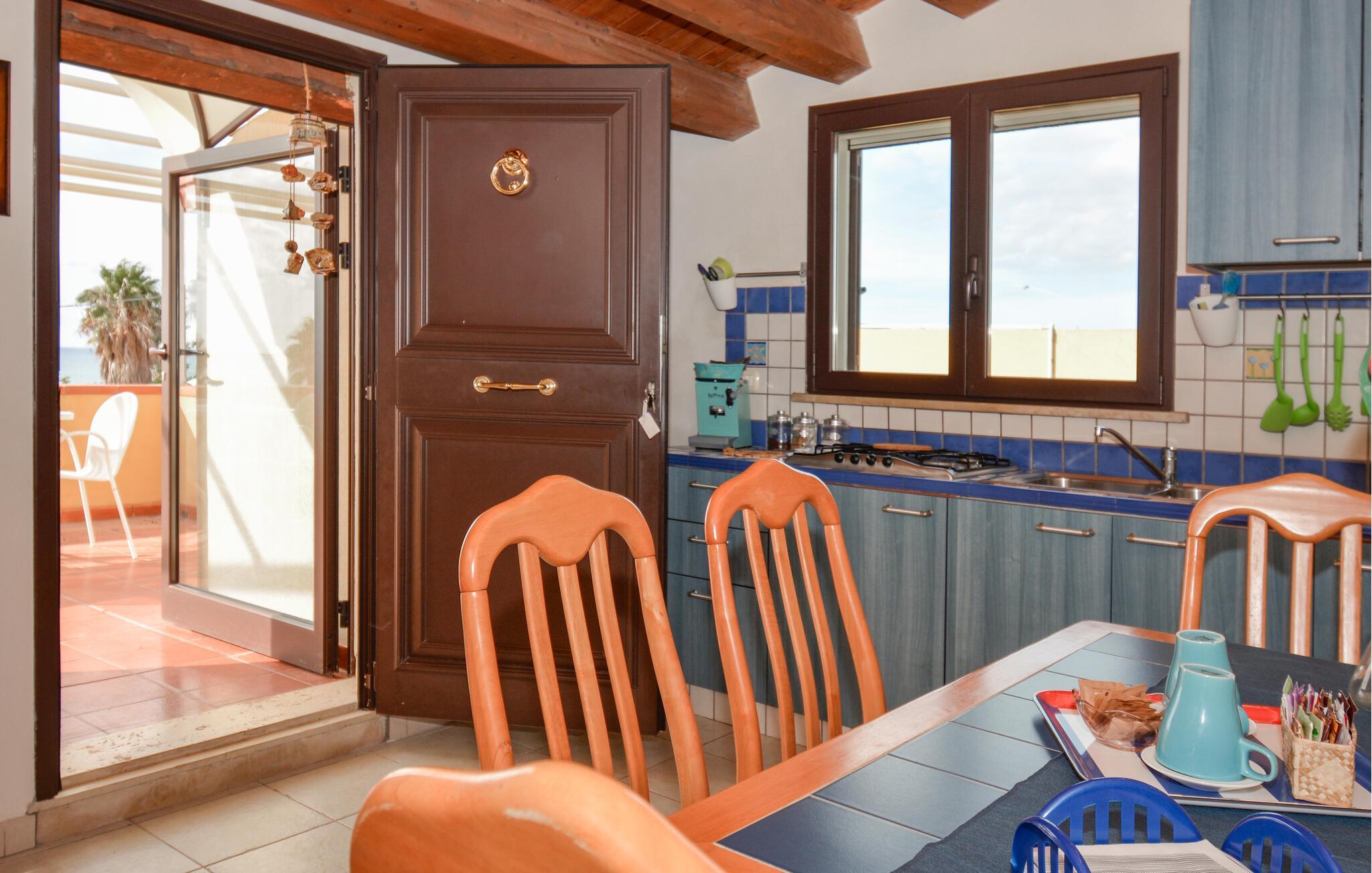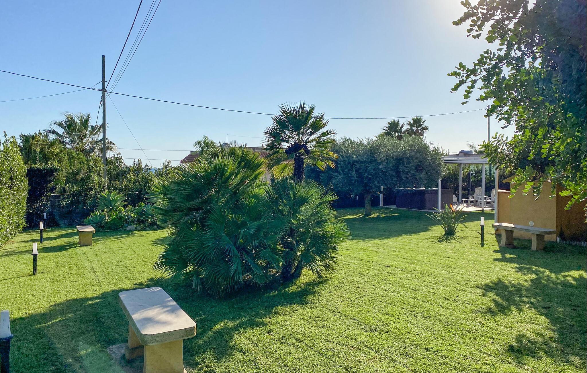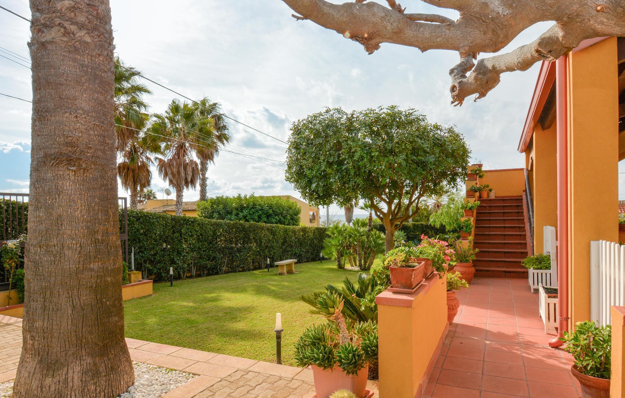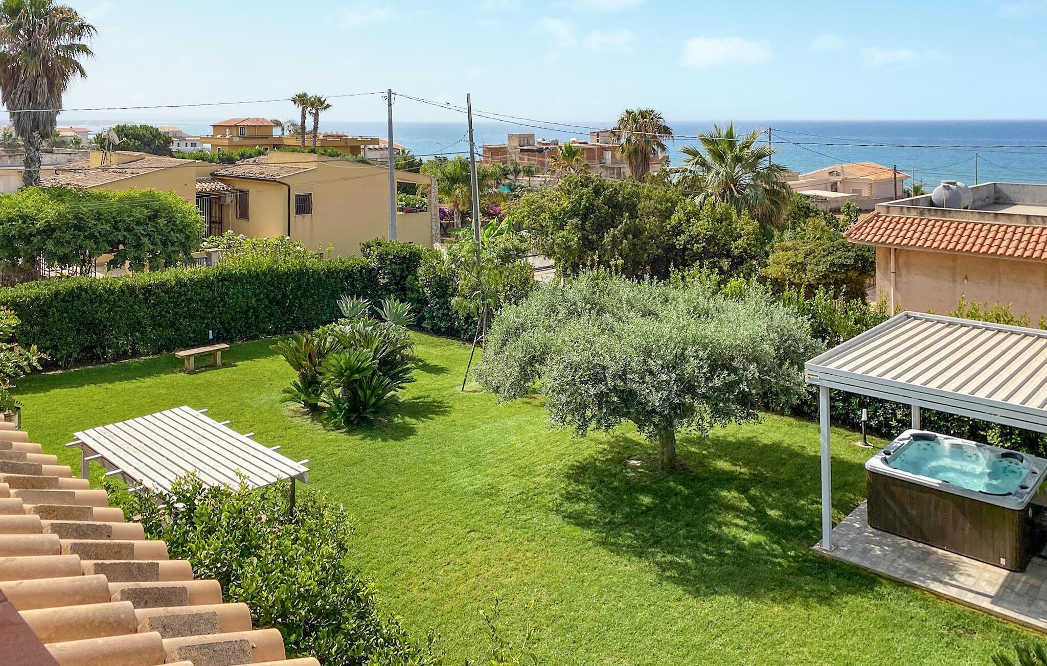Genießen Sie Ihren Urlaub in diesem charmanten Ferienhaus in Donnalucata, das nur einen kurzen Spaziergang vom Meer entfernt liegt. Der großzügige Garten bietet Ihnen viel Platz, um sich zu entspannen, sei es beim Sonnenbaden, Lesen oder bei einer erfrischenden Pause im Whirlpool. Die Terrasse mit Meerblick lädt dazu ein, den Tag mit einem gemütlichen Frühstück zu beginnen oder bei einem Glas Wein den Sonnenuntergang zu beobachten. Die Essküche mit ihrem mediterranen Flair bietet Ihnen die Möglichkeit, lokale Spezialitäten zuzubereiten und diese dort auch zu genießen.