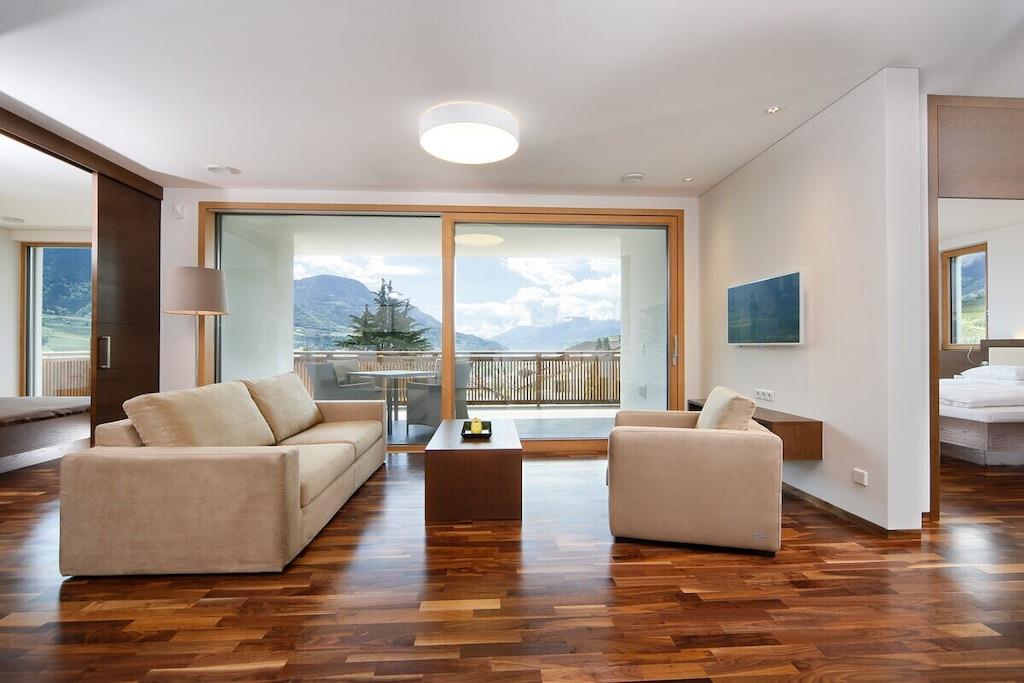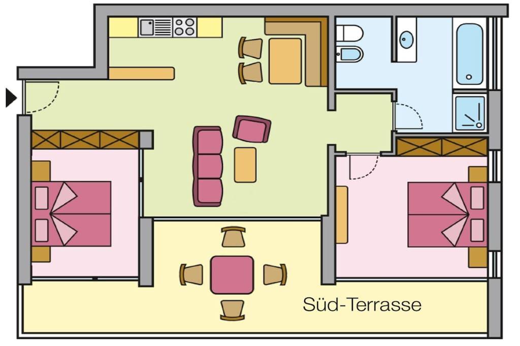 Die Ferienwohnung verfügt über 2 getrennte Doppelzimmer und über eine voll ausgestatte Küche. Das großzügige Badezimmer verfügt über eine Dusche, Badewanne, WC, Bidet, Föhn und Beautyspiegel. Ein Flat-TV, WLAN und Telefon befinden sich im großzügigen Wohnraum mit gemütlicher Sitzcouch. Ein Be- und Entlüftungssystem reguliert die Heizung und die Kühlung und sorgt für ein besonders behagliches Wohnklima. Eine beheizte Schwimmbadanlage mit Panoramalounge und 2 Etagen Liegewiese, sowie ein Sandtennisplatz ergänzen Ihr Wohlbefinden in unserem Resort. Fitnessraum und Saunabereich befinden sich im Haupthaus.