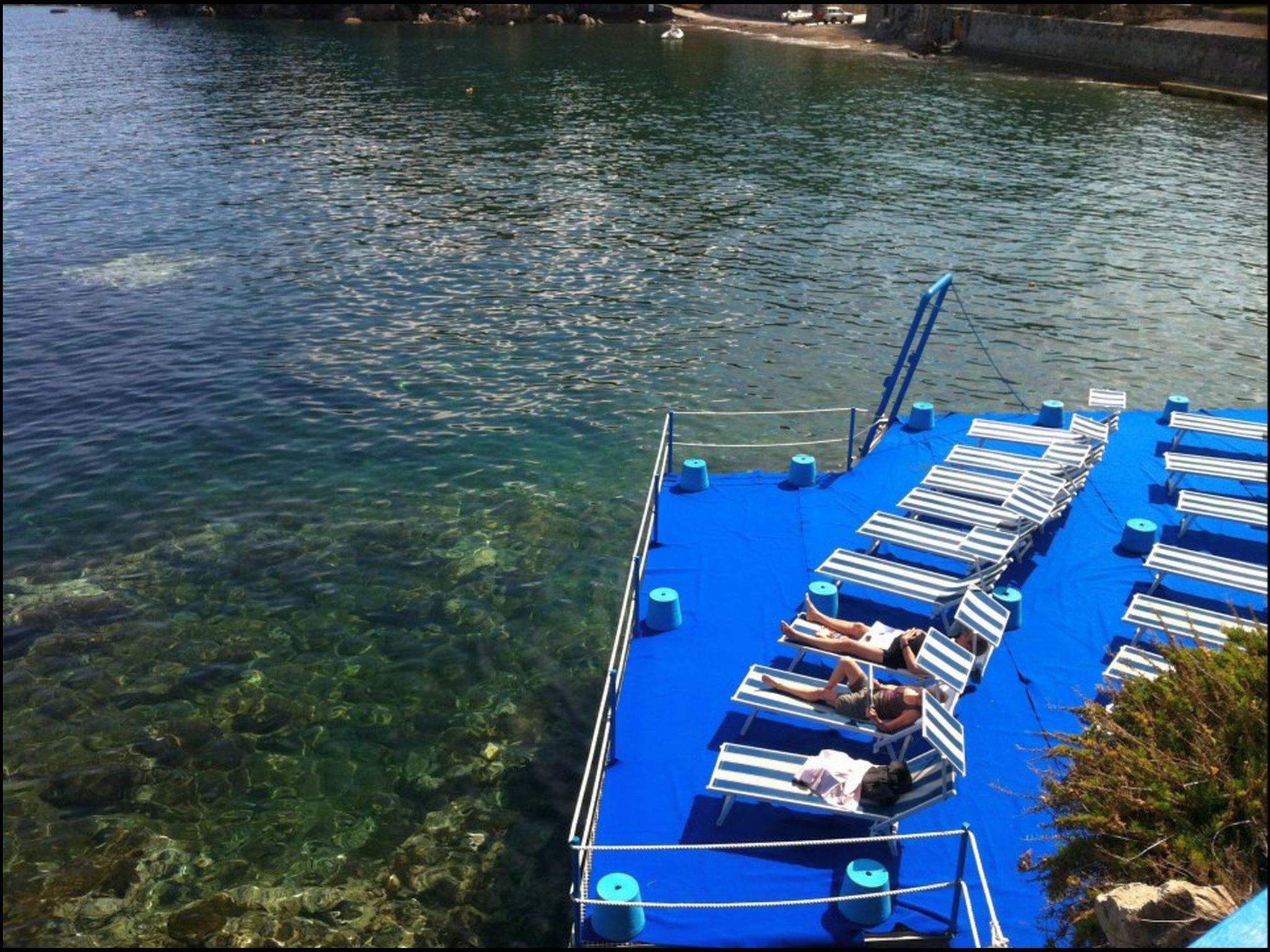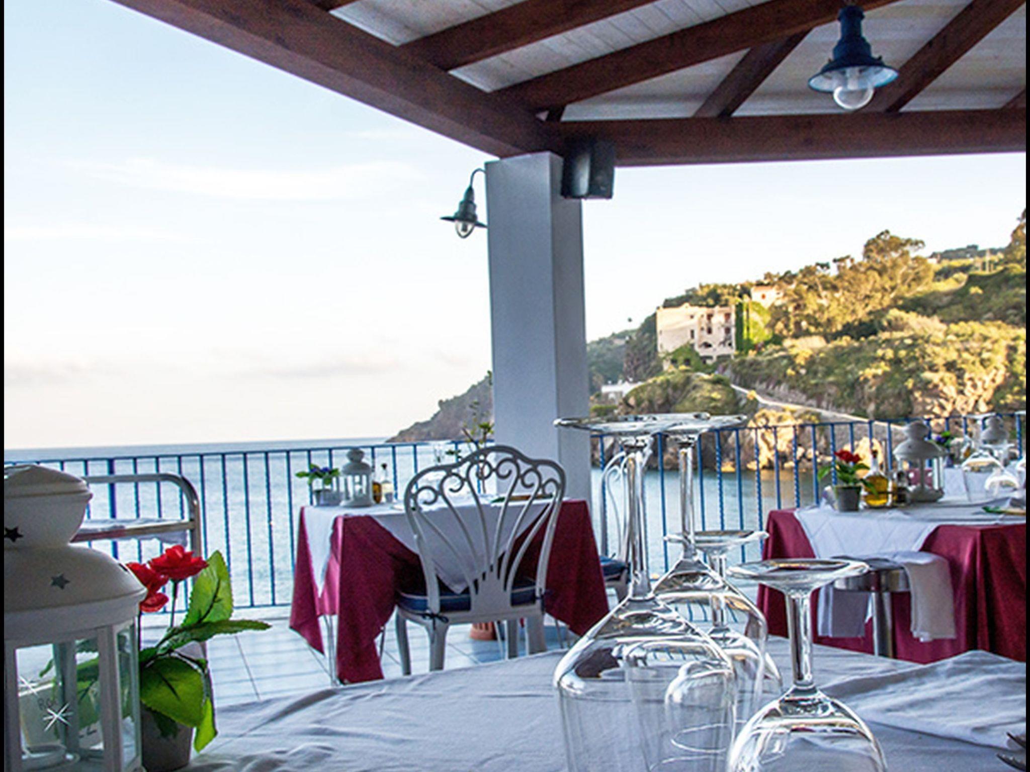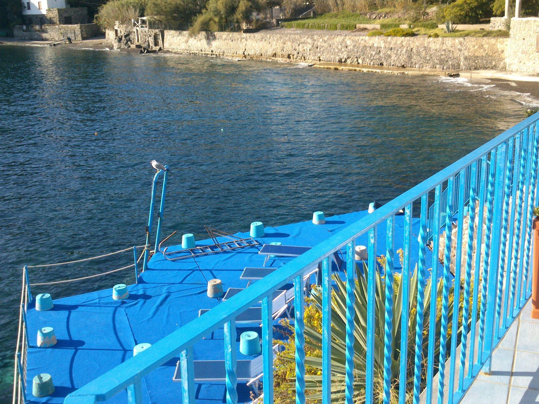 Im Außenbereich besticht das Hotel durch seine privilegierte Lage auf den Felsen, die an das klare, blaue Wasser der Äolischen Inseln plätschern, und durch einen Sandstrand in der kleinen Bucht von Porto delle Genti. Die Bar und das Restaurant mit ihren Terrassen direkt am Meer und die auf dem Wasser errichtete Plattform mit Liegestühlen und Sonnenschirmen bieten zu jeder Tageszeit Entspannung und Genuss für die Sinne.