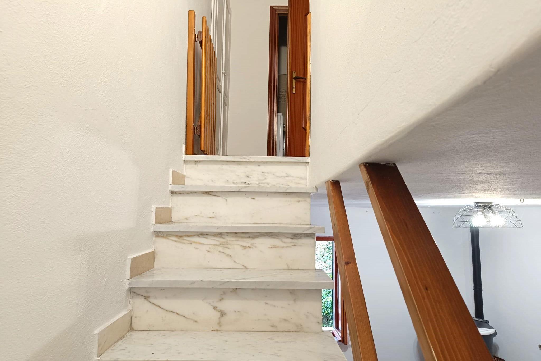 Parterre: (offene Küche(Kochplatte, Wasserkocher, Toaster, Kochherd, Dunstabzugshaube, Backofen, Kühl-/Gefrierkombination), Wohn/Esszimmer(Schlafcouch 1 Pers., TV, Esstisch, Herd)) In der 1. Etage: (Schlafzimmer(Doppelbett, TV), Badezimmer(Dusche, Waschbecken, Toilette, Bidet, Waschmaschine), Terrasse) Heizung, Garten(alleinige Nutzung, nicht angelegt), Gartenmöbel, Grill, Parkplatz, Plancha