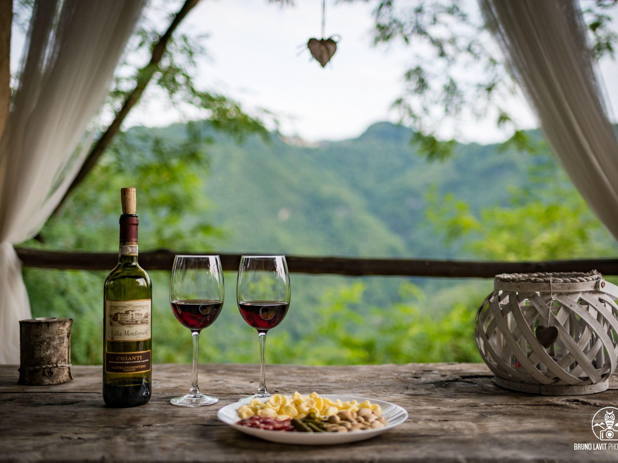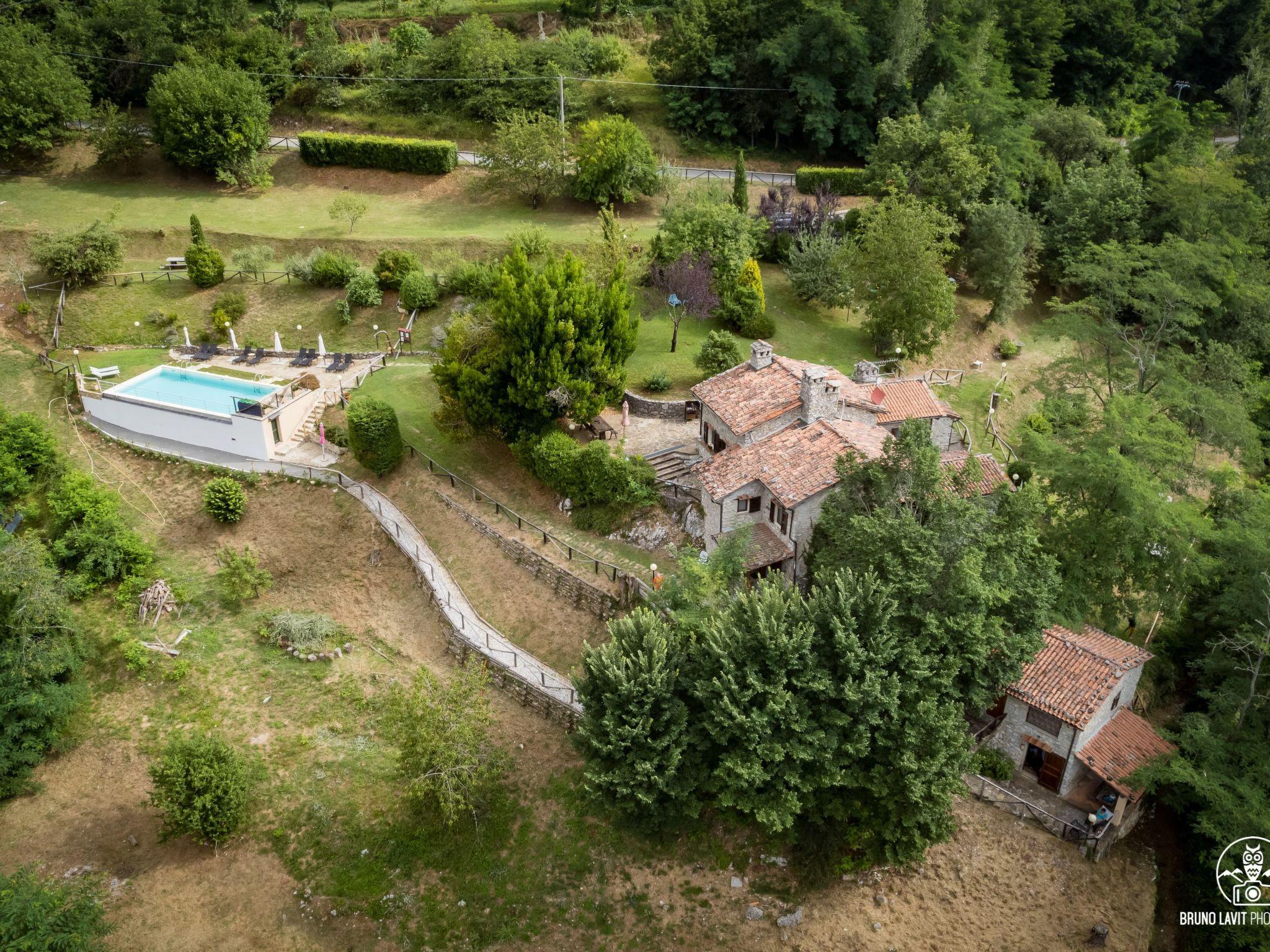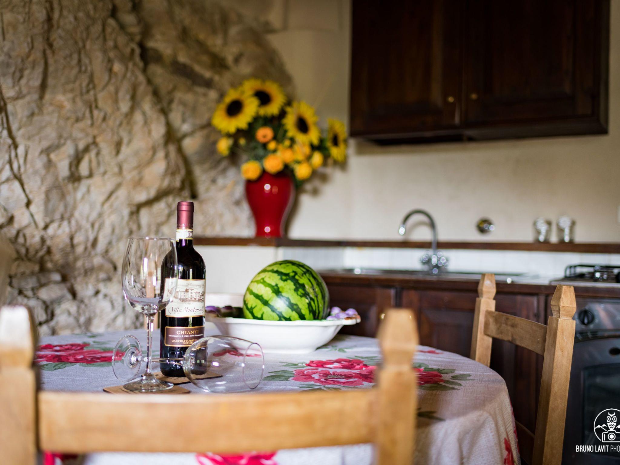 Dieser ehemalige Heuschober liegt separat vom Hauptgebäude und ist über einen kleinen Pfad zu erreichen, der sich auf der linken Seite des Hauses befindet und direkt auf der Loggia des Appartements endet. Der Weg ist etwas abschüssig; deswegen ist die Wohnung nicht für ältere Personen geeignet. Sie ist hingegen ideal für junge Paare in den Flitterwochen, weil sie sich abseits vom Haupthaus befindet; die Loggia bietet einen herrlichen Blick auf die jahrhundertealten Wälder der Apuanischen Alpen. Von der Loggia aus zwei Stufen hinaufsteigend, betreten Sie den Wohnraum. Hier befindet sich ein schöner Kamin, sowie das Schlafsofa. Neben der Glastür, die sich auf eine Terrasse mit wunderbarem Panorama öffnet, steht der Eßtisch. In eine Nische, durch die nach oben führende Holztreppe entstanden, wurde die großzügig ausgerüstete Küche eingebaut. In der zweiten Etage am Ende der Treppe finden wir ein wunderschönes, geräumiges Doppelschlafzimmer mit einer Glastür, die sich zur oberen Terrasse hin öffnet. Daneben ist ein Fenster zu sehen, bei dem an der Außenseite die originalen, typischen Backsteine im Stil “frangivento” erhalten sind. Vom Schlafzimmer aus führt eine Tür in ein kleines, aber komplettes Bad. Das Appartement ist sehr wohnlich und gemütlich mit den überall hervorschauenden, originalen Mauersteinen.