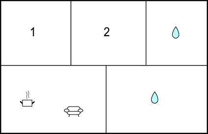 Badezimmer (nr. 1) - WC. Warmes und kaltes Wasser. Dusche