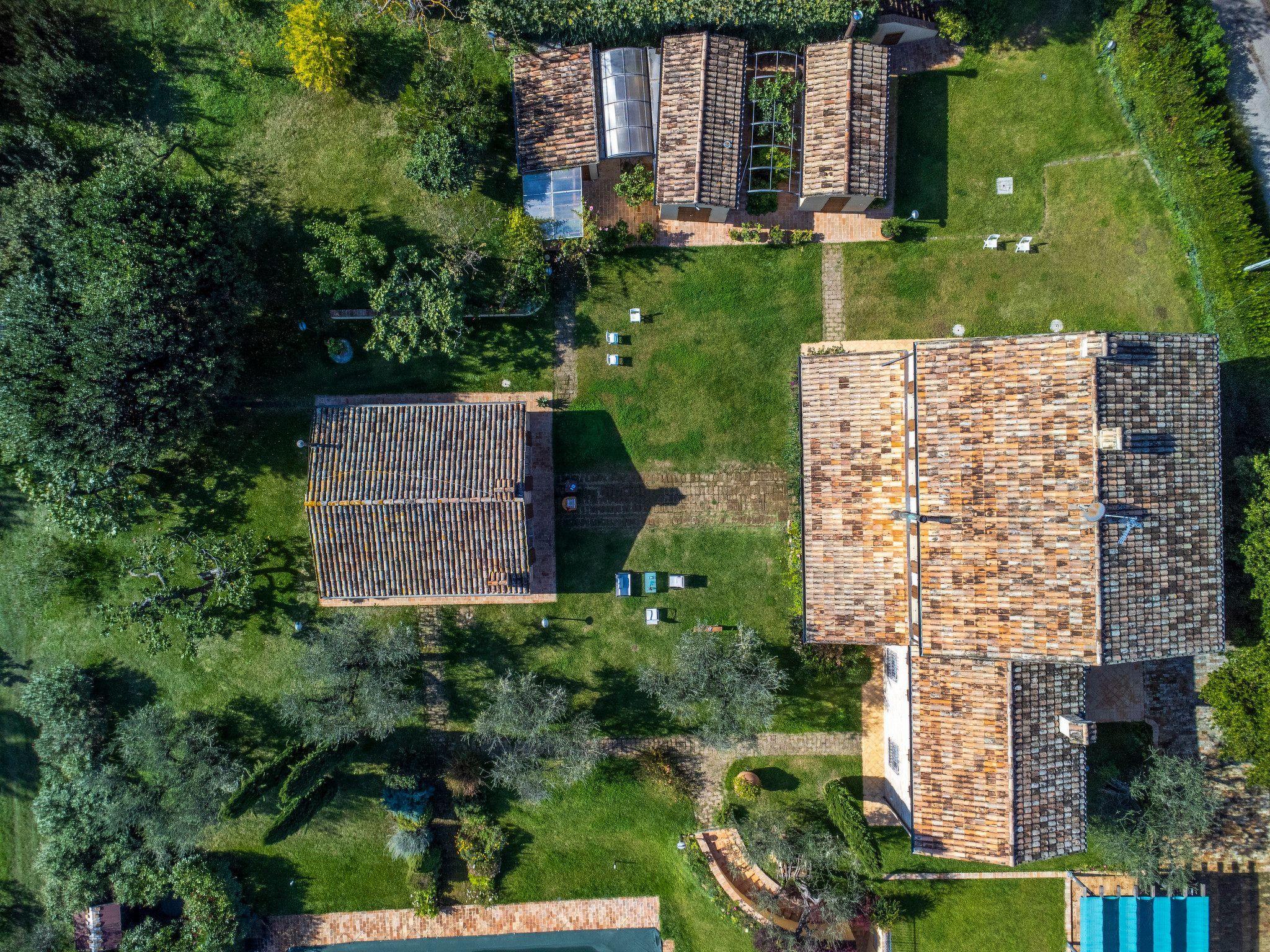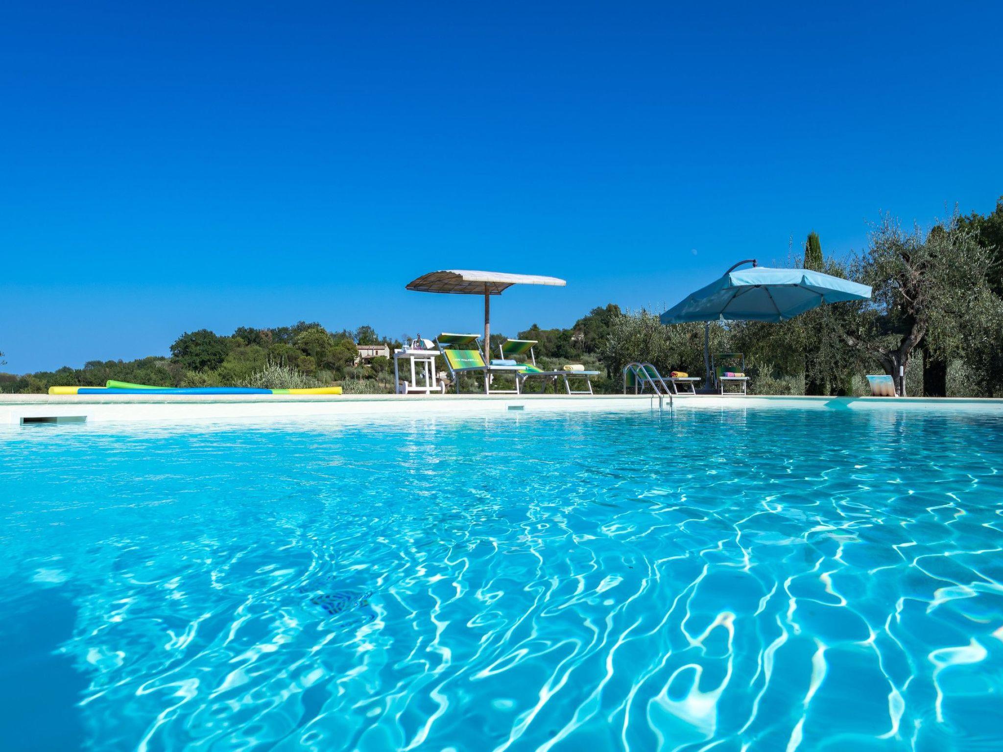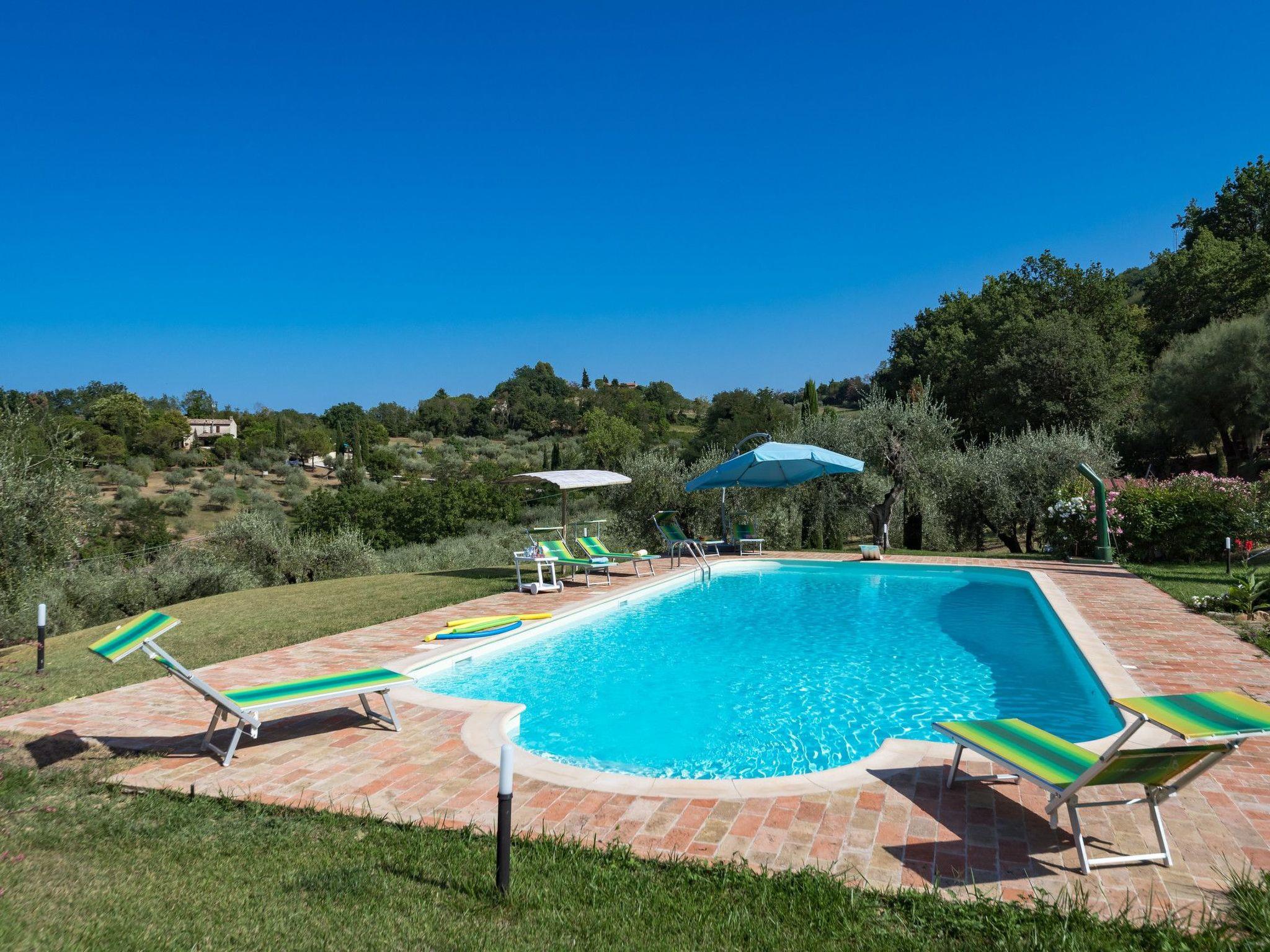 Das Schwimmbad, das von verschiedenen Stellen des Gartens aus zugänglich ist, bietet einen Panoramablick auf die umliegenden Hügel.