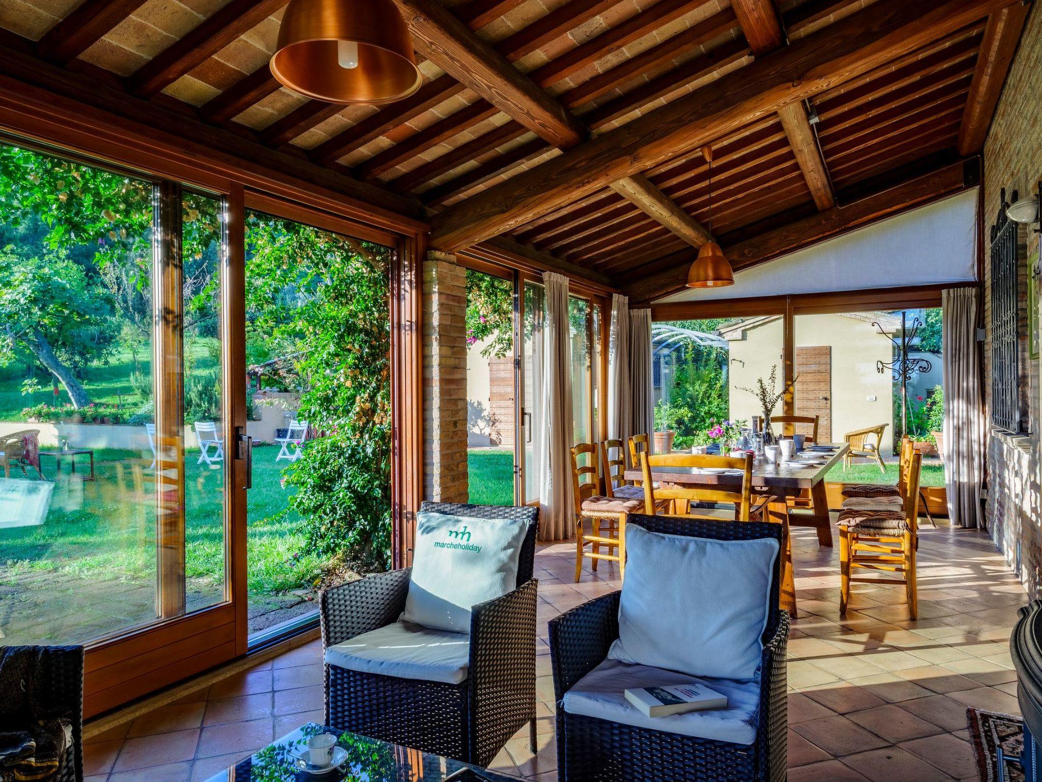 Villa Emilianna ist eine elegante, klimatisierte Villa mit privatem Schwimmbad, die sich in den Ausläufern von Fano befindet. Ihre privilegierte Lage bietet einen herrlichen Blick, der sich von der umliegenden Landschaft bis zum Meer erstreckt. Das alte Bauernhaus wurde komplett renoviert und in einen eleganten Landsitz verwandelt, der bis zu zehn Personen beherbergen kann. Die Innenräume zeichnen sich durch klassische Oberflächen und Balkendecken aus. Das Highlight der Hauptvilla ist die Veranda: ein hervorragender Ort, um sich zu entspannen und das Grün zu genießen, das die Struktur umgibt.