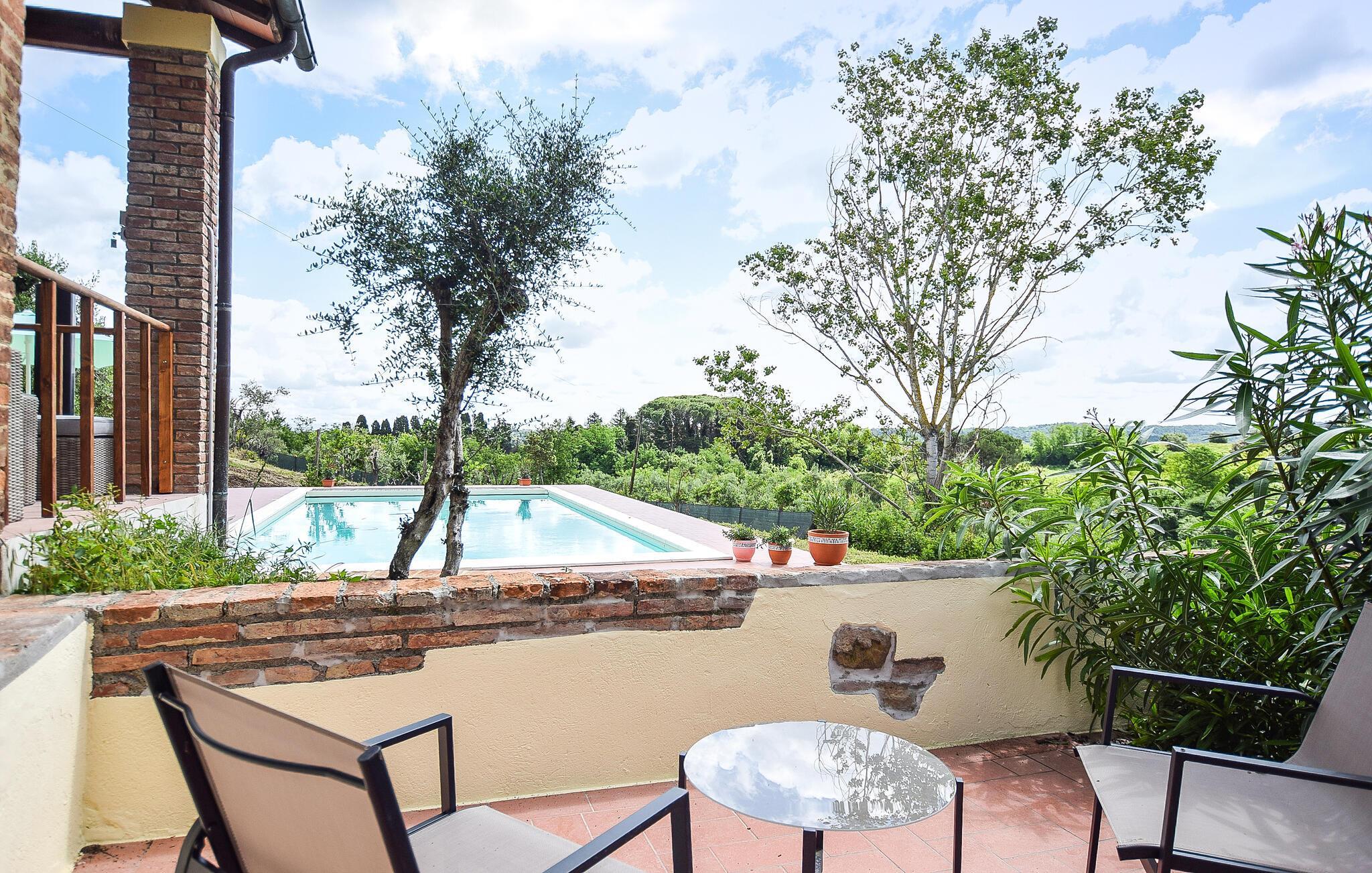 Draußen erwartet Sie ein großzügiger Garten, der zum Verweilen einlädt, sowie ein Swimmingpool, den Sie mit der anderen Haushälfte teilen können. Genießen Sie gemeinsame Mahlzeiten im Freien oder einen ruhigen Nachmittag unter der toskanischen Sonne.