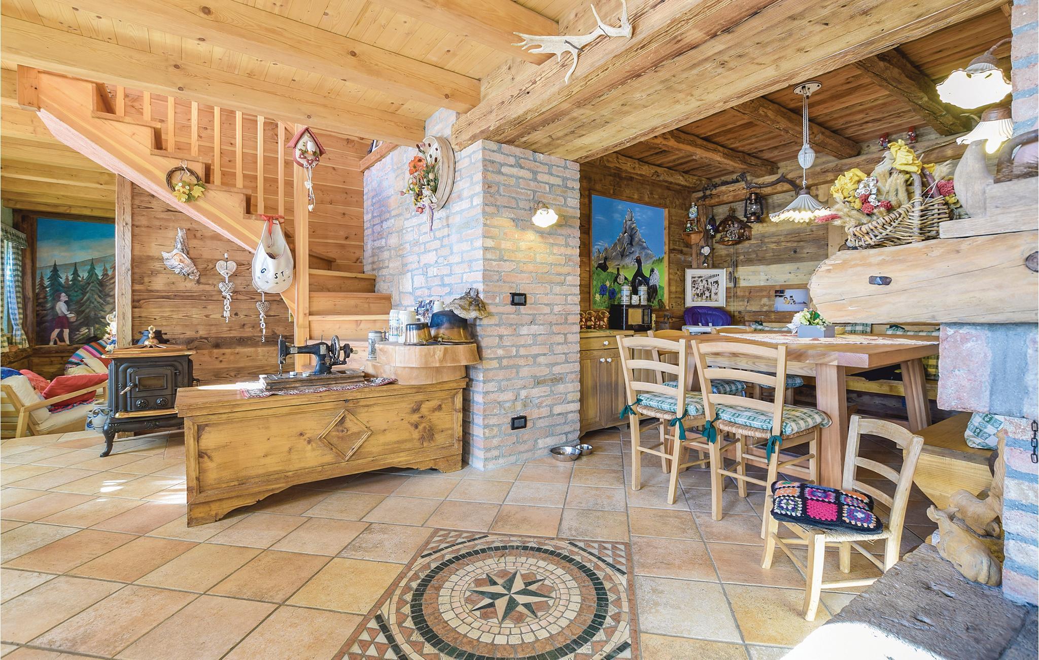 Eingebettet in einer Postkartenlandschaft, ist diese Berghütte 24 km von Feltre genau das Richtige für Naturliebhaber und Ruhesuchende. Genießen Sie die atemberaubende Aussicht auf die Berge an der Grenze zwischen den Belluneser und den Trentiner Dolomiten. Idyllisch eingebettet in die Natur, aber dennoch in günstiger Lage, um die Regionen Venetien mit ihren schönen Kunststädten (Belluno 55 km, Vicenza und Treviso 85 km, Venedig 120 km) und Trentino mit den Dolomiten und den traumhaft schönen Seen zu besuchen. Vom charakteristischen Bergdorf Lamon aus erreicht man das Haus über eine bergsteigende, kurvenreiche Straße (der letzte Kilometer ist ein Schotterweg). Die Gegend bietet viele Wanderwege und Mountainbikerouten. Einige Wanderwege führen vom Dorf aus zu den verschiedenen bekannten Höhlen des Gebiets. Für Abenteuerlustige sind die günstigen Luftströmungen der Bergflanke Monte Avena ideal für Paragliding und Drachenfliegen. Canyoning im Tal und die nahegelegenen Seen (Corlo See 20 km, Levicosee und Caldonazzosee 50 km) bieten Wassersport wie Windsurfen, Segeln, Kitesurfen. Das Gebiet bietet auch ein reichhaltiges Angebot an Speisen und Weinen mit typischen Produkten. Für Bierliebhaber gibt es in Pedavena (20 km) eine historische Bierbrauerei, bekannt für ihre typischen Gerichte und die große Auswahl an Fassbieren. Dieses Ferienhaus ist ein wahres Paradies für Naturliebhaber und oft wagen sich sogar Hasen oder Rehe bis aufs Grundstück. Den Gästen steht ein kleiner Gemüsegarten zur Verfügung. Im ersten Stock befinden sich zwei holzgetäfelte Schlafzimmer, wovon eines ein Vierbettzimmer mit einem Bett im offenen Dachgeschoss ist, beide mit Zugang zum Balkon mit Aussicht. Das Wasser kommt aus einer kontrollierten Wasserzisterne.