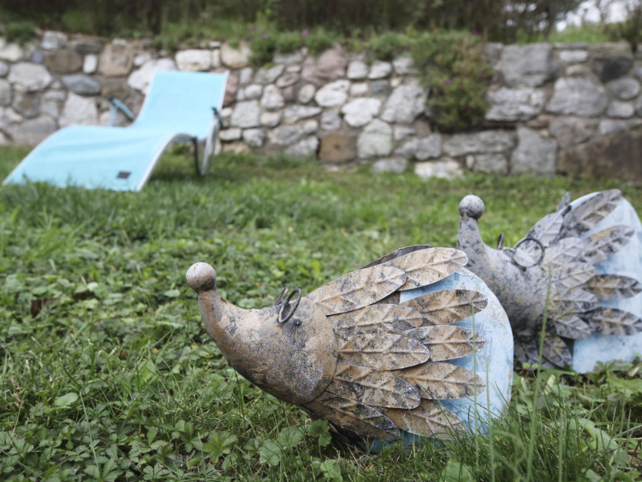 Große Terrasse mit Pavillon, Sonnenliegen, Grill und Spielen für die Kleinen. Wir wohnen in einem Ferienhaus mit großem Garten und möchten diesen Raum auch mit unseren tierischen Freunden teilen. Bei einem Spaziergang durch den Garten können Sie süße Enten, Gänse und andere Hoftiere treffen, die unseren Teich beleben; Sie können auch saisonale Früchte von den Bäumen in unserem Park pflücken; Sie können unsere fleißigen Bienenfreunde bewundern, die köstlichen Honig produzieren.