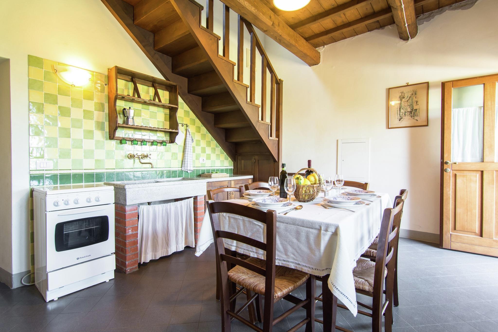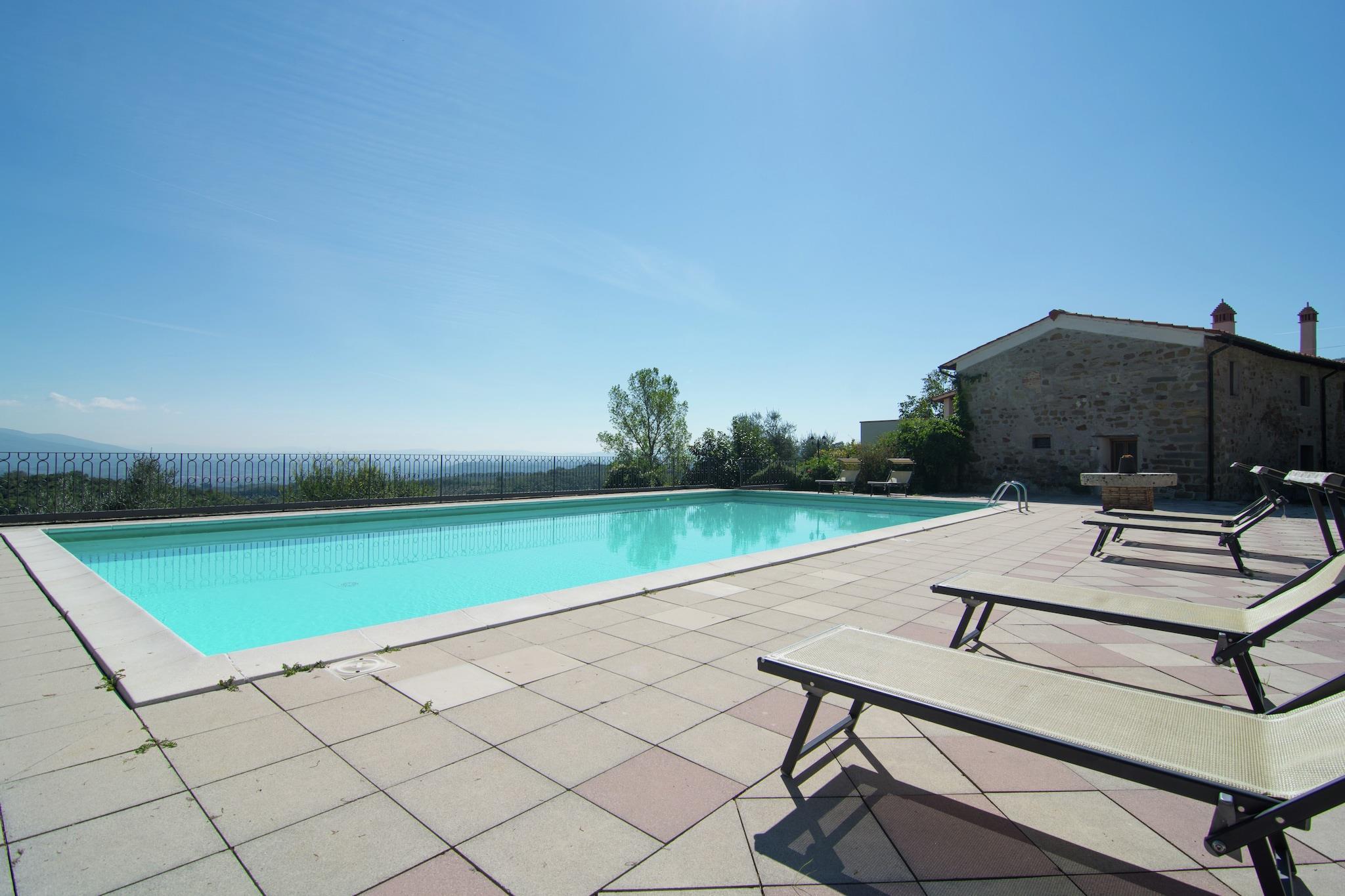 Inmitten der Hügel, nur 20 km von Florenz entfernt, bietet dieses Ferienhaus auf dem Land in der Toskana einen ruhigen Rückzugsort für Familien oder Gruppen von bis zu 6 Gästen. Das Anwesen mit 3 Schlafzimmern ist Teil eines restaurierten historischen Anwesens und verfügt über einen gemeinsamen Panoramapool, eine private Terrasse und einen atemberaubenden Blick auf das Valdarno und die florentinischen Hügel. Das Anwesen aus der lombardischen Zeit verbindet toskanische Tradition mit modernem Komfort. Umgeben von Olivenhainen, Weinbergen, Wäldern und einem malerischen See ist es ein idealer Ort für Naturliebhaber. Gäste können wandern, Mountainbike fahren, angeln oder einfach in der ruhigen Landschaft entspannen. Wildtierbeobachtungen und das Sammeln von Pilzen und Beeren sind ein weiteres Highlight. Auf dem Gelände finden Sie möblierte Außenbereiche mit Grillmöglichkeiten sowie einen Bio-Bauernhof, der natives Olivenöl extra, Wein, Honig, Eier und frische Produkte anbietet. Das Restaurant auf dem Anwesen lädt gelegentlich zum Abendessen ein, insbesondere im Juli und August oder bei privaten Veranstaltungen. Dank der Nähe zu Chianti, Siena und Arezzo eignet sich das Haus perfekt, um kulturelle Entdeckungen mit Entspannung zu verbinden.