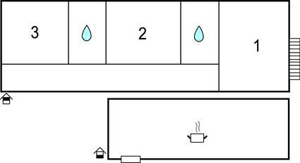 Badezimmer (nr. 2) - WC. Warmes und kaltes Wasser. Dusche