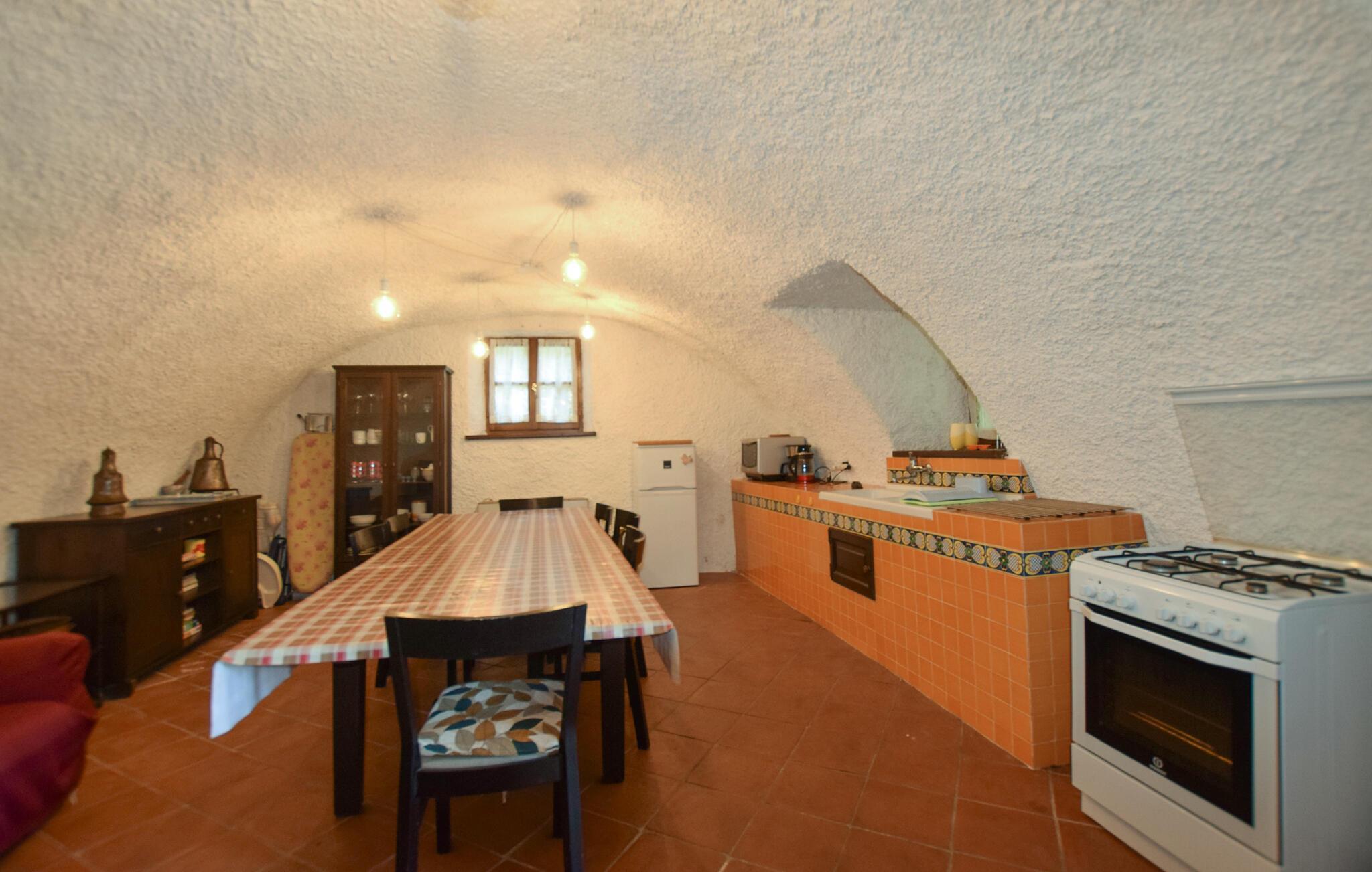 Verbringen Sie Ihre Ferien in einer charmanten Wohnung, die in einem historischen Bauernhaus untergebracht ist. Hier verbinden sich rustikaler Charakter und moderne Annehmlichkeiten zu einem besonderen Urlaubserlebnis. Treten Sie ein in den großzügigen Innenbereich mit gewölbten Decken, traditionellen Fliesen und einem langen Esstisch, der Platz für gesellige Mahlzeiten bietet. Nutzen Sie die urige Küche, um italienische Spezialitäten zuzubereiten, und entspannen Sie sich anschließend in der gemütlichen Sitzecke.