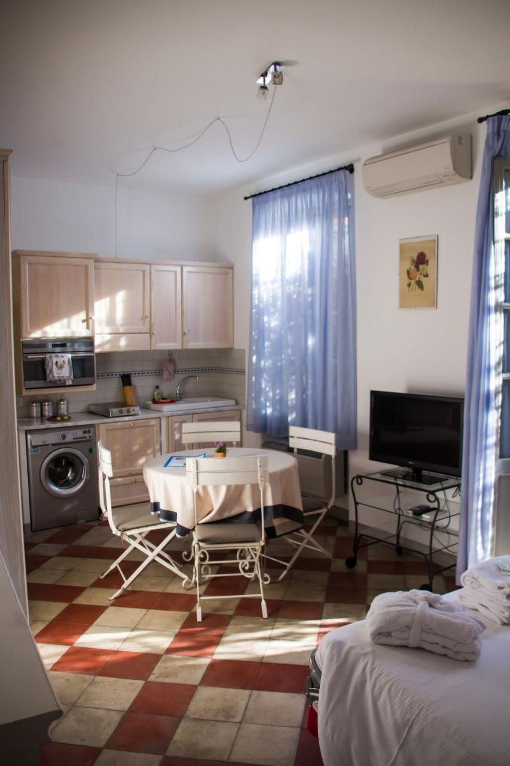 Unser Studio-Apartment befindet sich im ersten Stock und besteht aus einer Eingangshalle mit einem Doppelschlafsofa, einer Küche und einem Essbereich in einem Raum sowie einem Badezimmer.