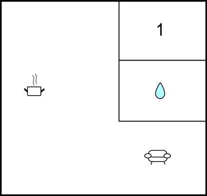 Badezimmer (nr. 1) - WC. Warmes und kaltes Wasser. Dusche