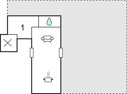 Badezimmer 5m2 (nr. 1) - WC. Warmes und kaltes Wasser. Dusche