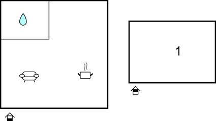 Badezimmer (nr. 1) - WC. Warmes und kaltes Wasser. Dusche