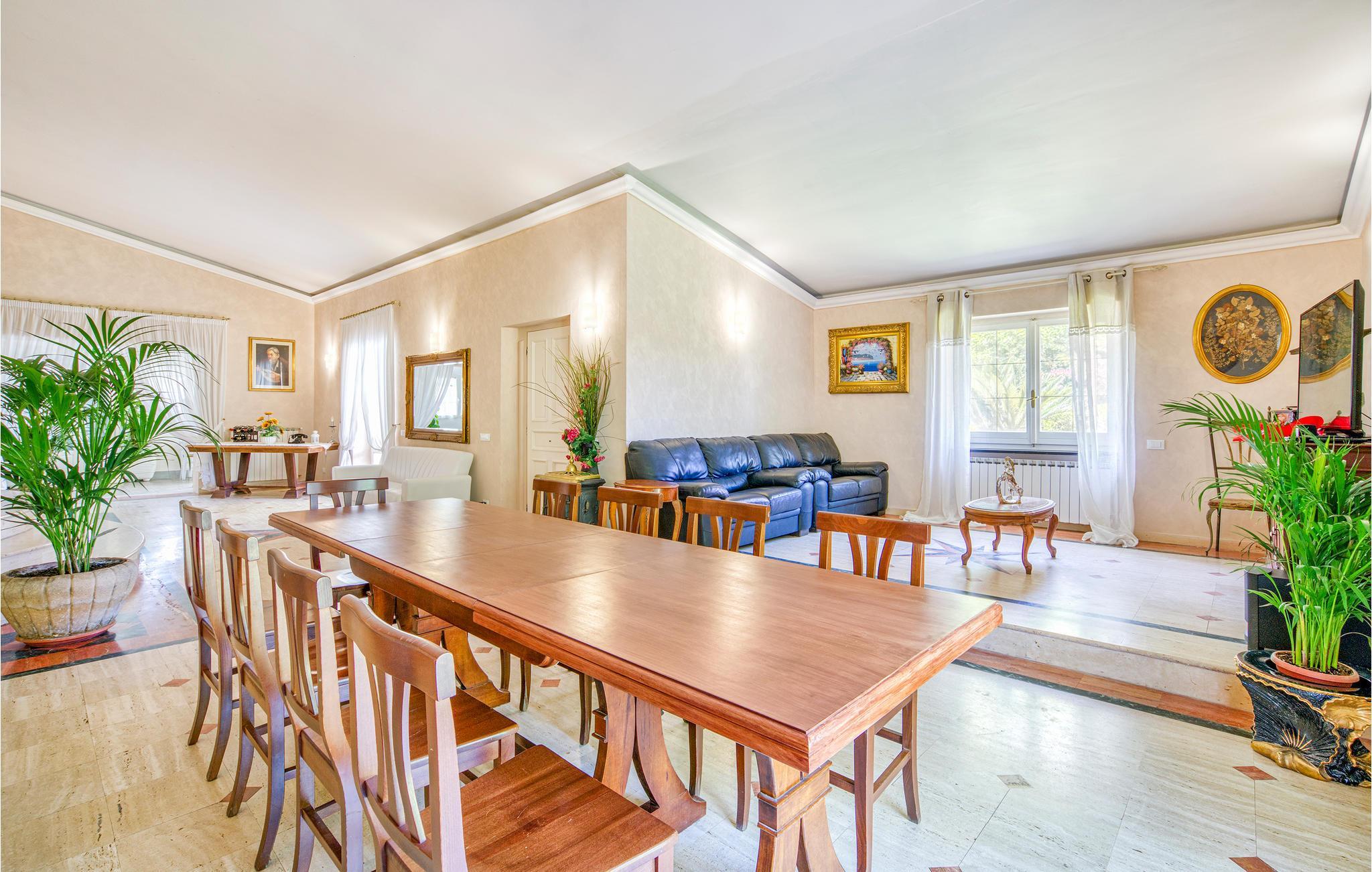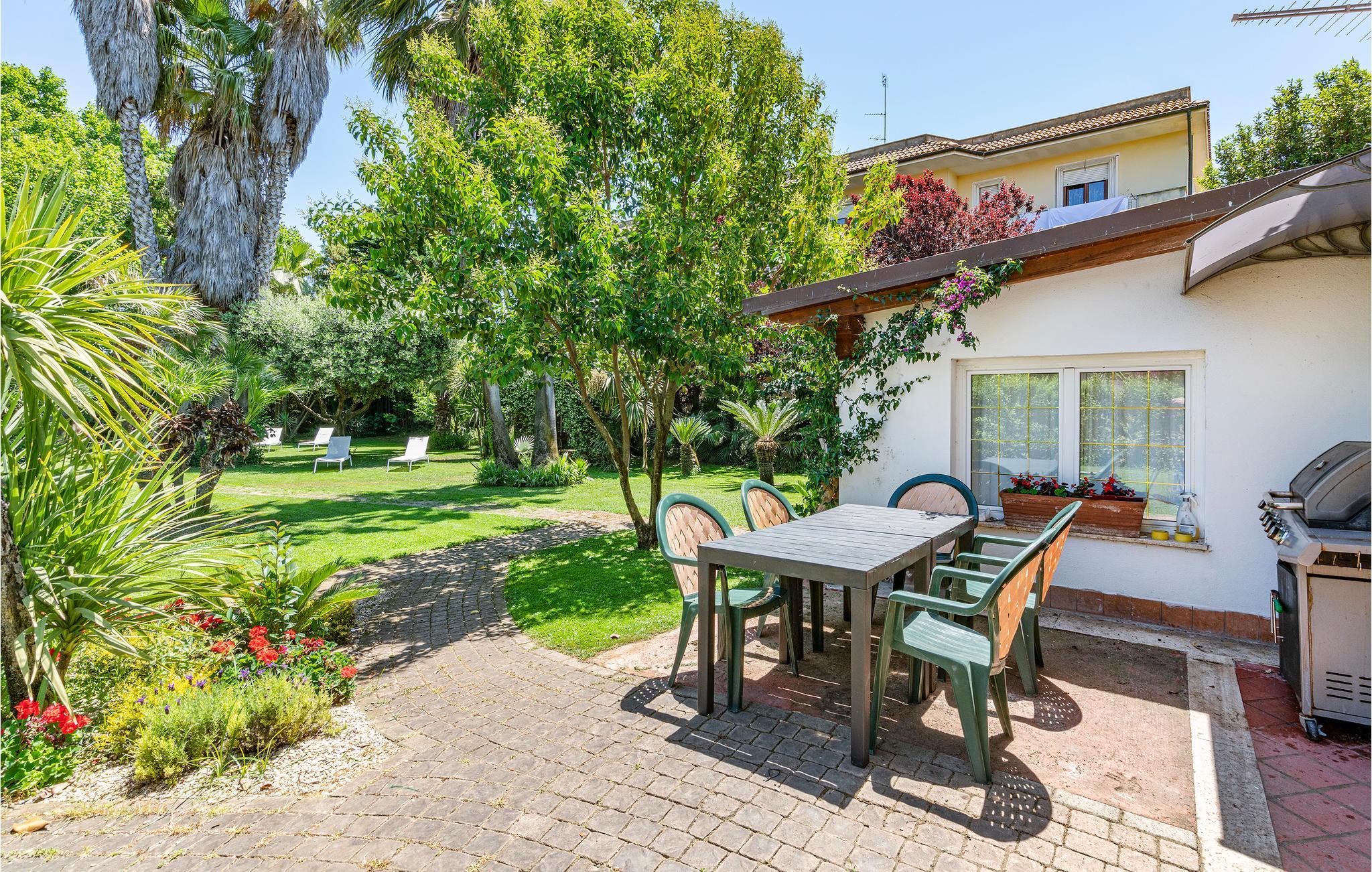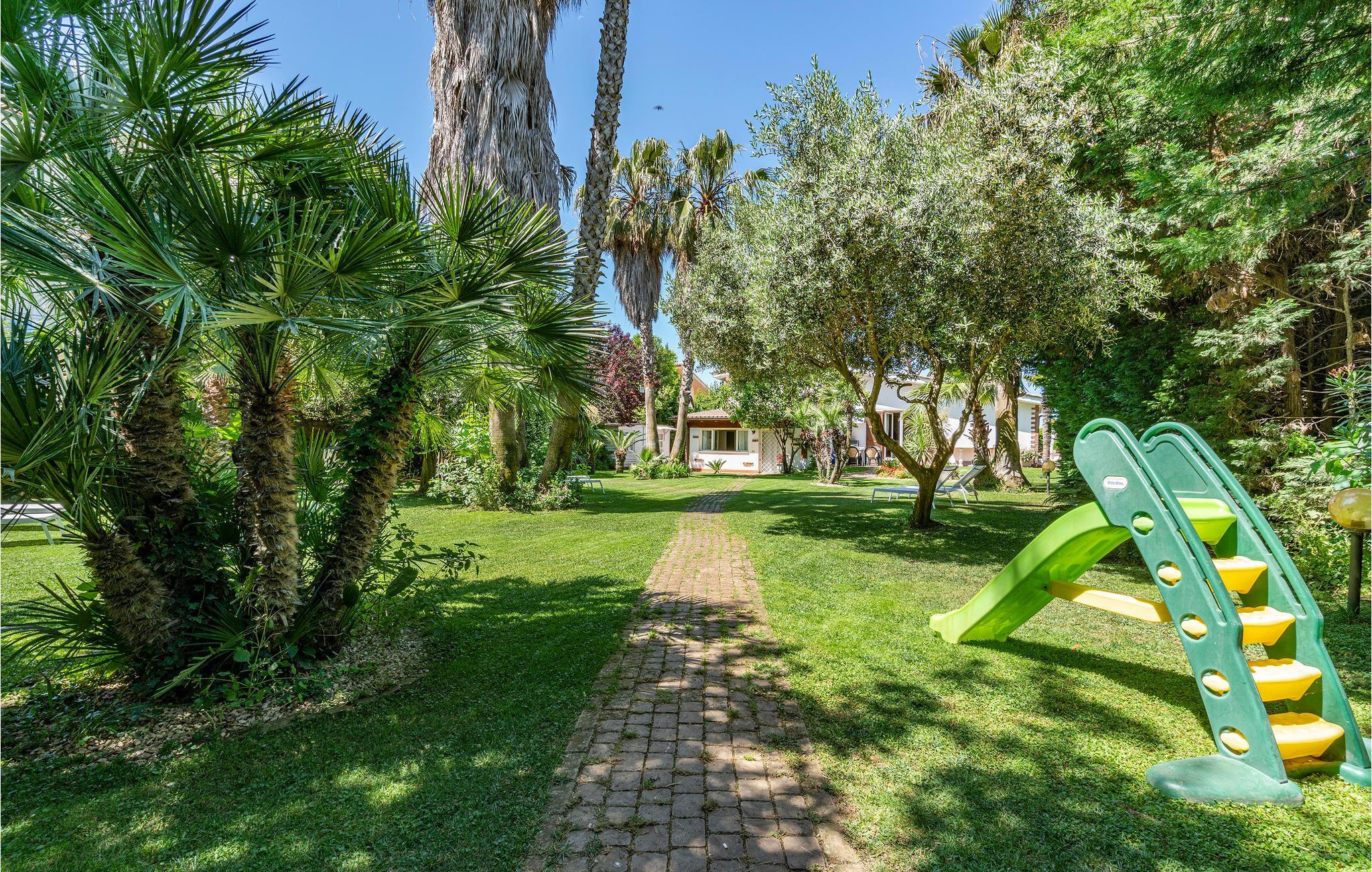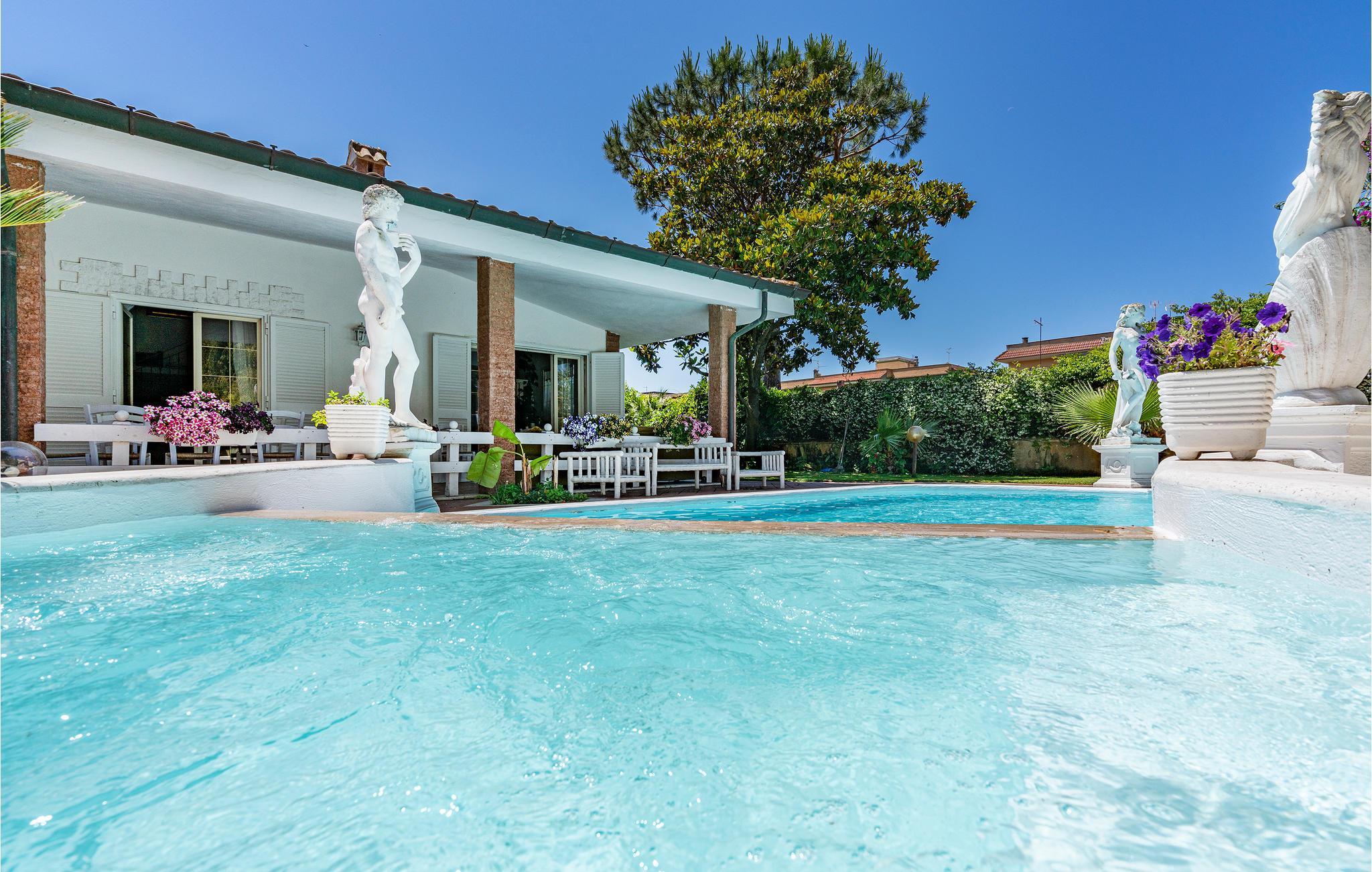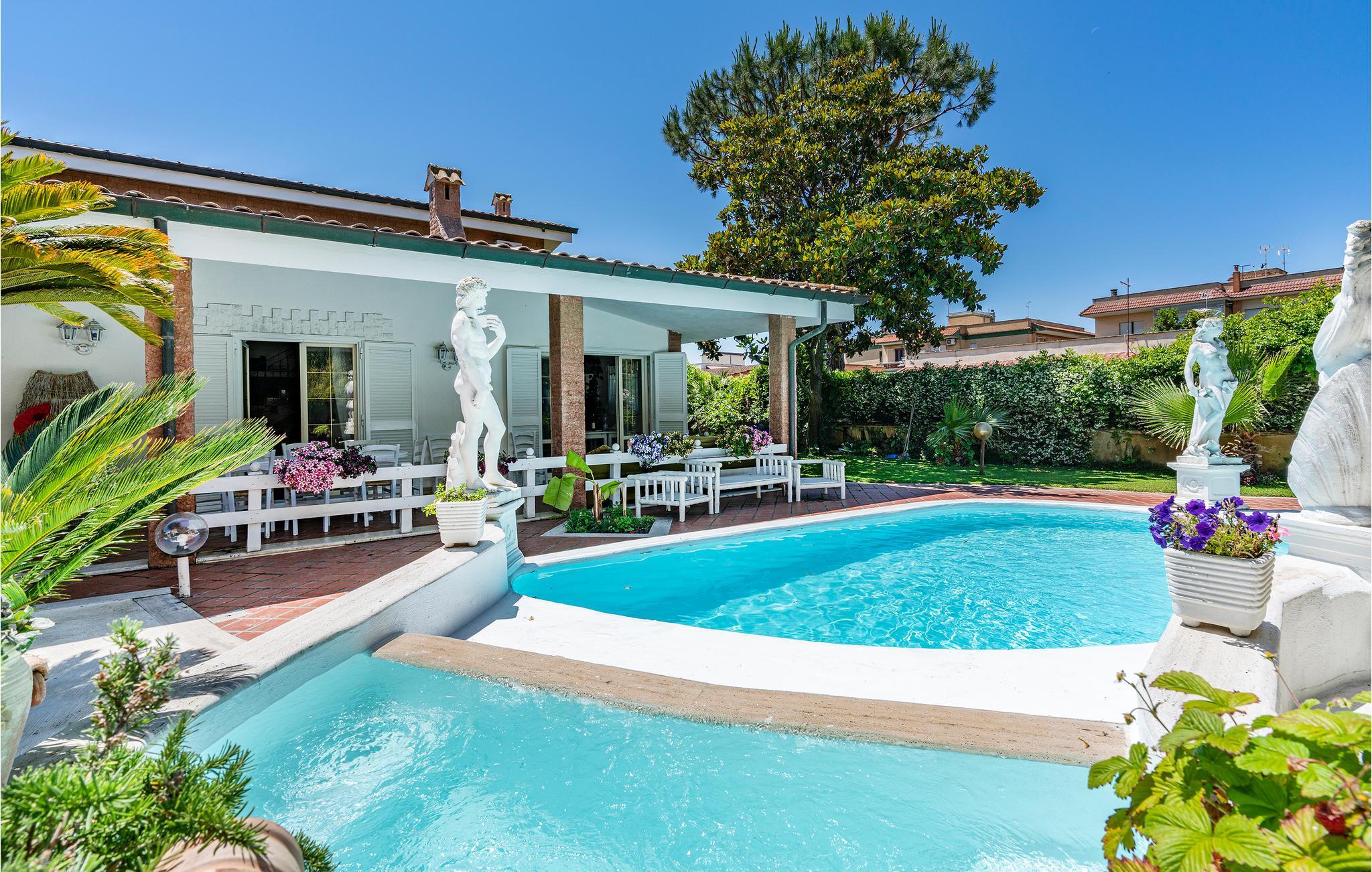 Wunderschöne Villa mit Privatpool in Fiumicino (Rom 15 km). Die Villa ist geschmackvoll und elegant eingerichtet und erstreckt sich über zwei Etagen. Außerhalb des Hauses stehen Ihnen, neben dem Pool, eine Unterwassermassagewanne (geöffnet von 01.05 - 15.09), ein gepflegter Garten, eine große überdachte Terrasse um im Freien zu essen und ein Spiel- und ein Fitnessbereich, zur Verfügung. Nach einem Tag am Strand (leicht zu Fuß erreichbar) können Sie sich am Pool oder in der Jacuzzi-Wanne entspannen und anschließend die Außenküche benutzen um Ihre leckeren Mahlzeiten im Freien vorzubereiten. Die Unterkunft ist ideal für Familien mit Kindern, die im vollständig umzäunten Garten mit Spielplatz ungestört spielen können. Ihre vierbeinigen Freunde sind hier ebenfalls willkommen. Die Strände von Fiumicino sind sehr lang und es gibt sowohl Badeanstalten als auch kostenlose freie Strände. Hier können Sie ebenfalls Wassersport treiben, Boote mieten und von den vielen gastronomischen Angeboten der Umgebung profitieren. Nachdem die Villa nur 1 km vom Strand entfernt liegt, ist sie ideal für Ihren entspannten Badeurlaub, stellt aber auch einen hervorragenden Ausgangspunkt dar, um die wunderschönen Attraktionen der Region zu erkunden: Z. B. die ewige Stadt Rom, die mit den öffentlichen Verkehrsmitteln erreichbar ist, das schöne Naturreservat des Litorale Romano, das nur 8 km entfernt liegt und vom WWF verwaltet wird, der Bracciano See (50 km) oder das beeindruckende Ostia Antica, mit seinem wunderschönen archäologischen Park in einer grünen Oase und die berühmte Stadt Viterbo (90 km).