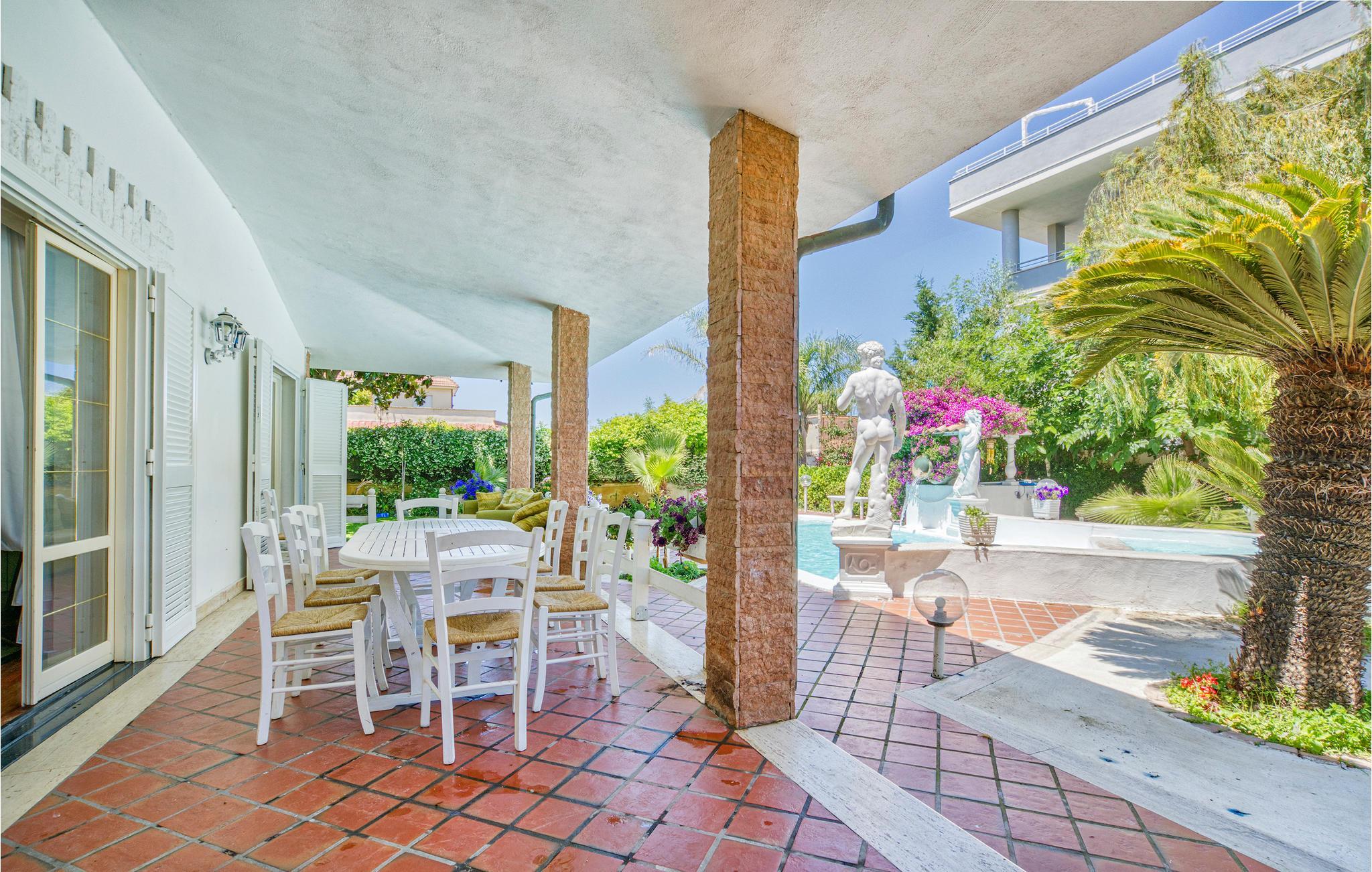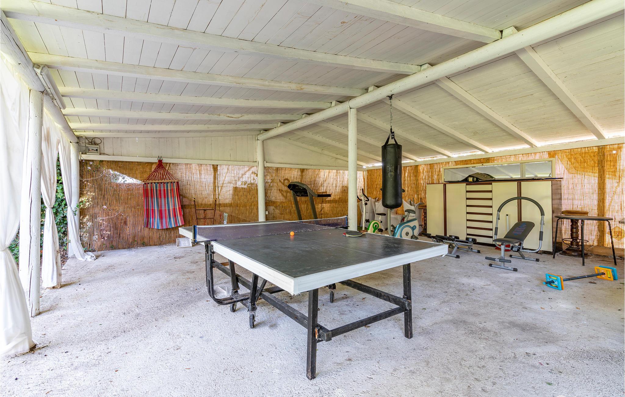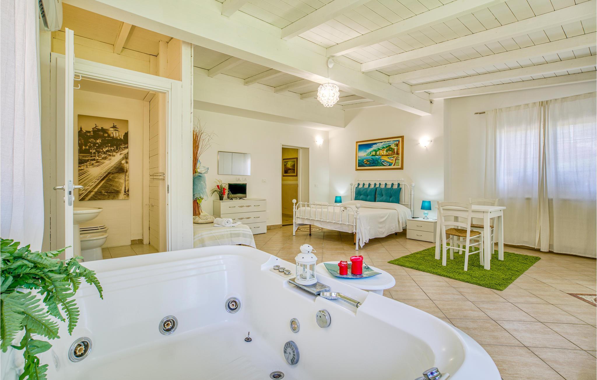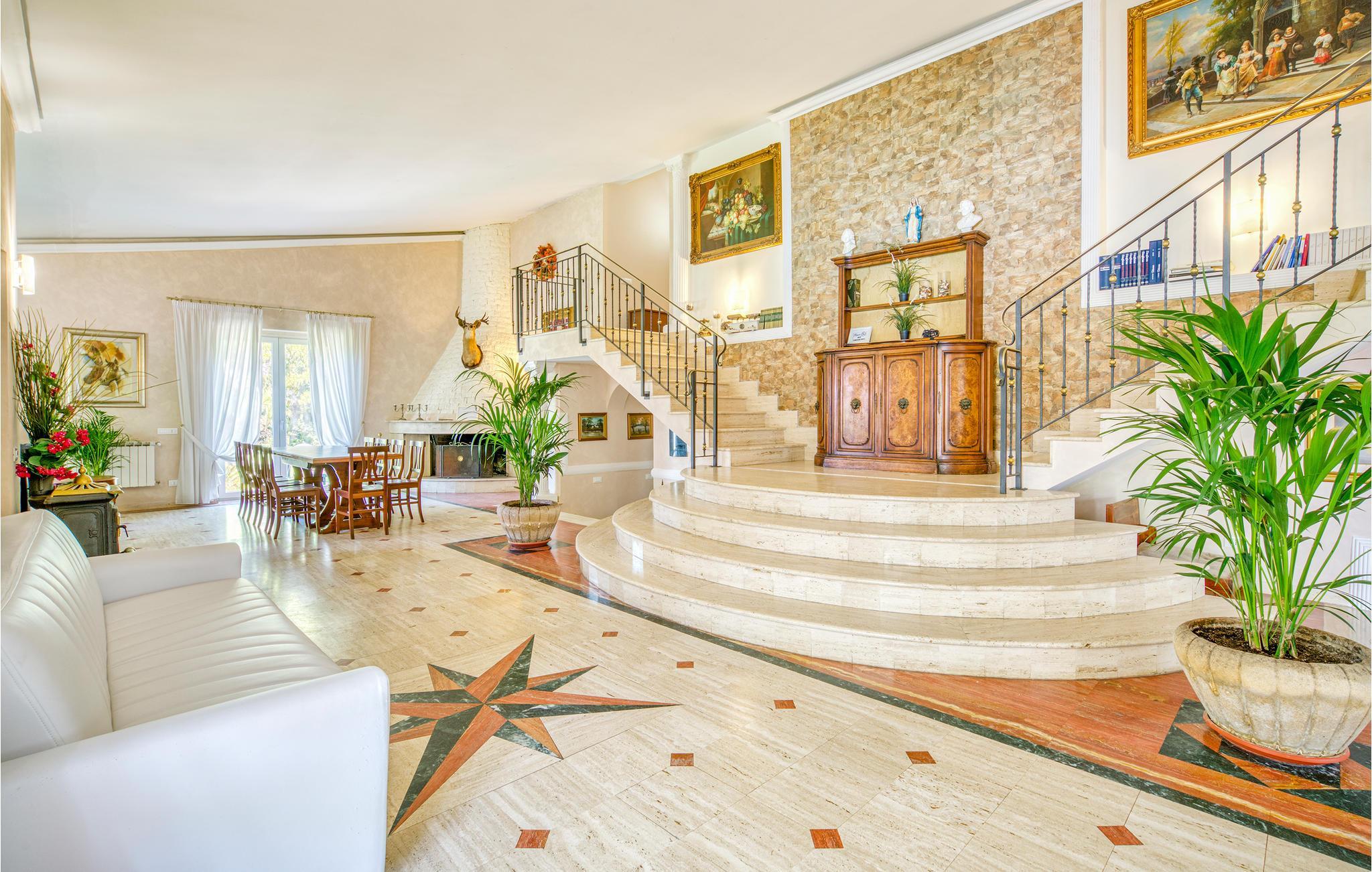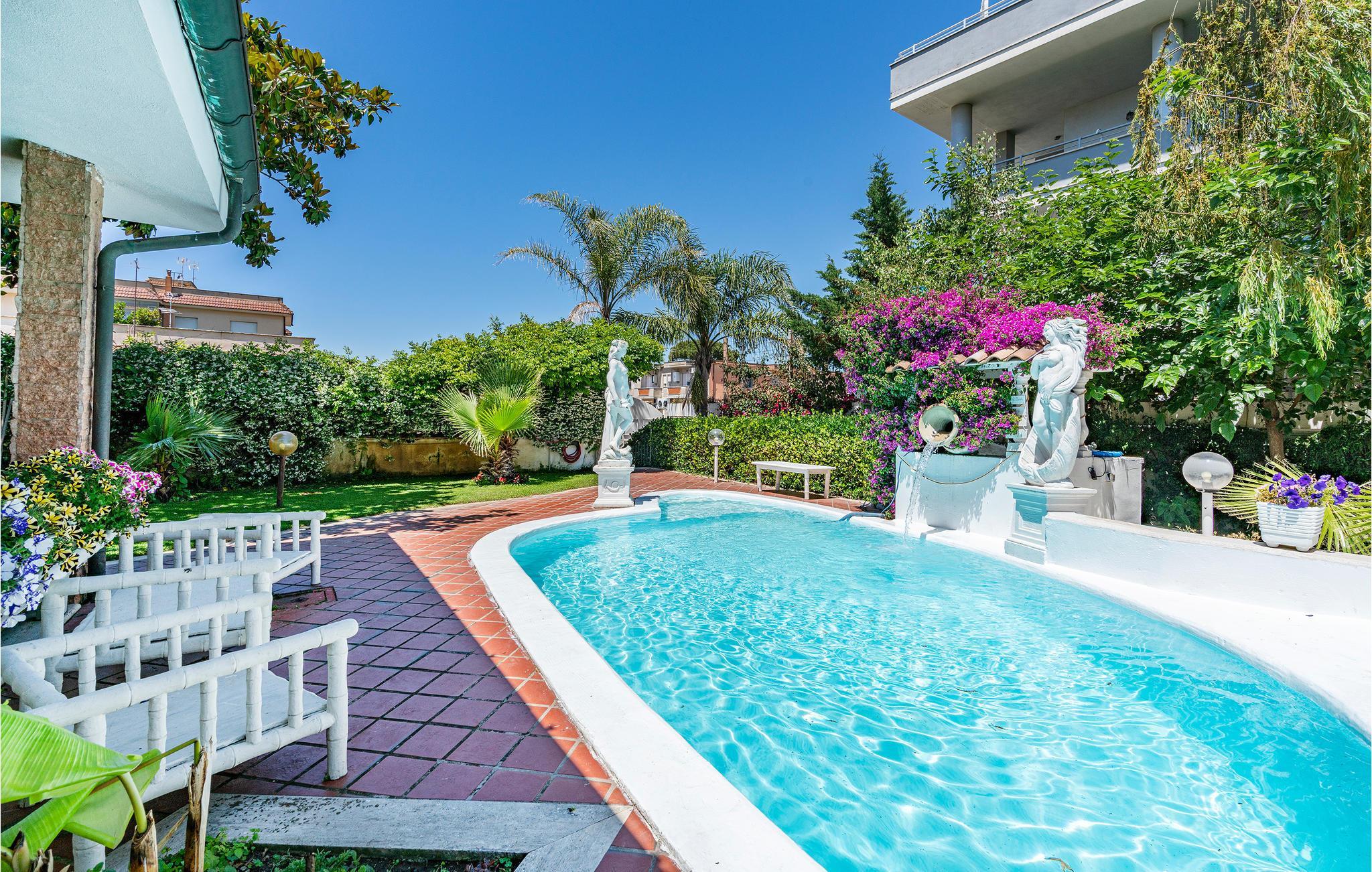 Wunderschöne Villa mit Privatpool in Fiumicino (Rom 15 km). Die Villa ist geschmackvoll und elegant eingerichtet und erstreckt sich über zwei Etagen. Außerhalb des Hauses stehen Ihnen, neben dem Pool, eine Unterwassermassagewanne (geöffnet von 01.05 - 15.09), ein gepflegter Garten, eine große überdachte Terrasse um im Freien zu essen und ein Spiel- und ein Fitnessbereich, zur Verfügung. Nach einem Tag am Strand (leicht zu Fuß erreichbar) können Sie sich am Pool oder in der Jacuzzi-Wanne entspannen und anschließend die Außenküche benutzen um Ihre leckeren Mahlzeiten im Freien vorzubereiten. Die Unterkunft ist ideal für Familien mit Kindern, die im vollständig umzäunten Garten mit Spielplatz ungestört spielen können. Ihre vierbeinigen Freunde sind hier ebenfalls willkommen. Die Strände von Fiumicino sind sehr lang und es gibt sowohl Badeanstalten als auch kostenlose freie Strände. Hier können Sie ebenfalls Wassersport treiben, Boote mieten und von den vielen gastronomischen Angeboten der Umgebung profitieren. Nachdem die Villa nur 1 km vom Strand entfernt liegt, ist sie ideal für Ihren entspannten Badeurlaub, stellt aber auch einen hervorragenden Ausgangspunkt dar, um die wunderschönen Attraktionen der Region zu erkunden: Z. B. die ewige Stadt Rom, die mit den öffentlichen Verkehrsmitteln erreichbar ist, das schöne Naturreservat des Litorale Romano, das nur 8 km entfernt liegt und vom WWF verwaltet wird, der Bracciano See (50 km) oder das beeindruckende Ostia Antica, mit seinem wunderschönen archäologischen Park in einer grünen Oase und die berühmte Stadt Viterbo (90 km).