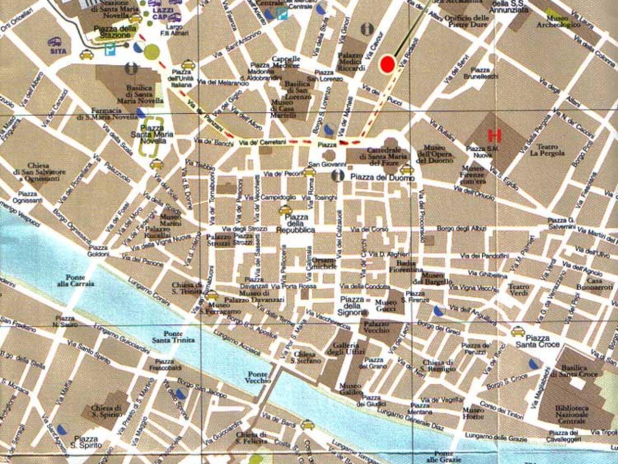 Sehenswürdigkeiten wie z. B. die Piazza della Signoria, der Ponte Vecchio, die Uffizien und der Bargello sind nur fünf Fußminuten von der Ferienwohnung entfernt. Lebensmittelgeschäfte sind ca. 50 m von der Ferienwohnung entfernt.