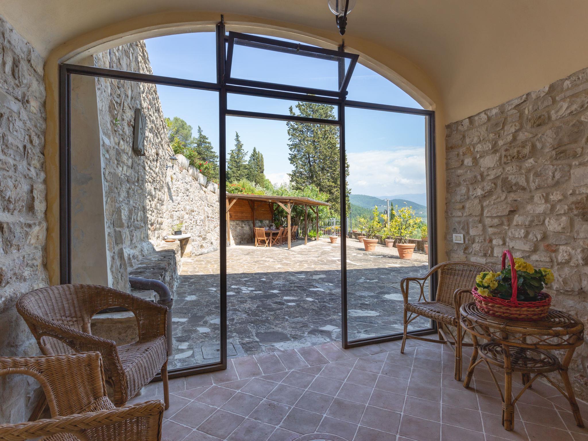 "Villa Monteloro", 8-Zimmer-Haus 240 m2 auf 4 Stockwerken, im Erdgeschoss. Eingang. Dusche/Bidet/WC. Obergeschoss: offenes Wohnzimmer mit offenem Kamin und Sat-TV. Salon. Ausgang zur Terrasse. 2 Doppelzimmer. Offene Küche (4 Kochplatten, Backofen, Geschirrspüler, Toaster, Wasserkocher, Mikrowelle, Tiefkühler, elektrische Kaffeemaschine) mit Esstisch. 2 Duschen/Bidet/WC. 2. Obergeschoss: 1 Doppelzimmer mit Dusche/WC. 1 Zimmer mit 2 Betten und Dusche/WC. 1 Doppelzimmer. Dusche/Bidet/WC. 3. Obergeschoss: 1 abgeschrägtes Zimmer mit 2 Betten. 2 Terrassen. Panoramasicht auf die Landschaft. Zur Verfügung: Fliegengitter, Kinderhochstuhl, Haartrockner. Internet (WLAN, extra). Maximal 2 Haustiere/Hunde erlaubt. Das Hauptgebäude bietet 8 Personen Platz, die nebenanliegende Wohnung, die auch über eine Küche verfügt, für 4 Pers. Platz hat. 2 Terrassen (300 / 200 m2). IT048033C289YCJB9G