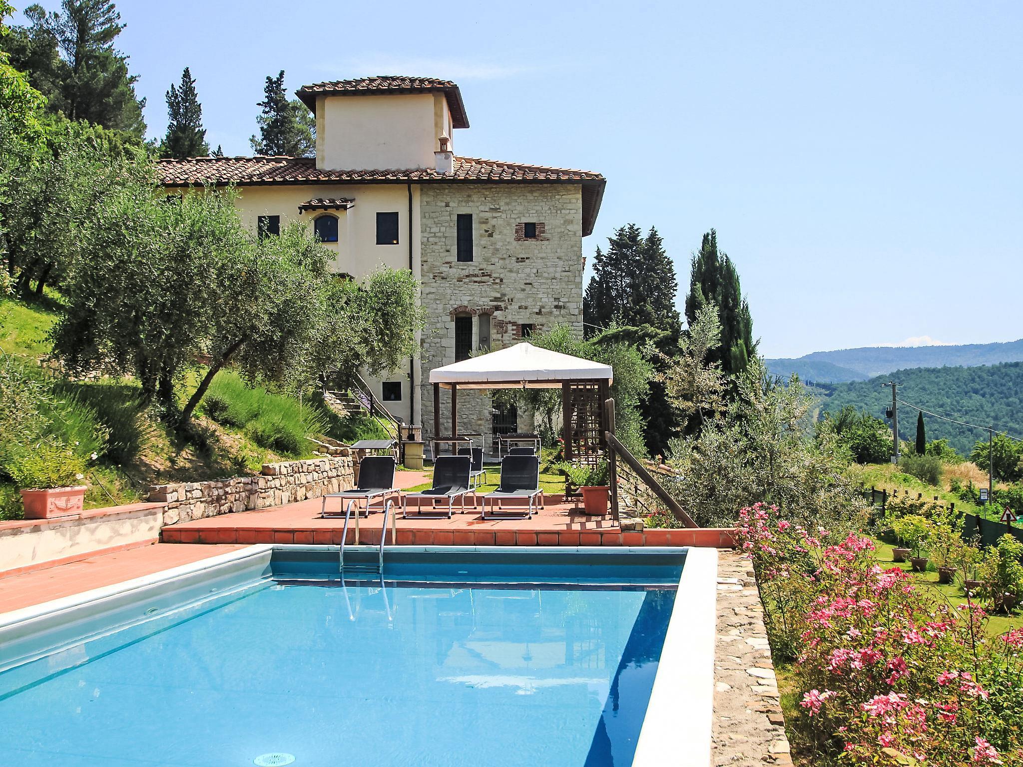 Sieci 12 km von Firenze: Das Anwesen unseres Angebotes ist das Hauptgebäude, neben einer anliegender Wohnung und einer umgebauten und bewohnten Scheune, in welcher der Eigentümer gelegentlich wohnt. Der Pförtner wohnt ebenfalls im Komplex. Villa "Monteloro", 300 m.ü.M., aus dem 12. Jahrhundert, renoviert im Jahre 2005. 2 km vom Zentrum von Sieci, 12 km vom Zentrum von Firenze, 80 km vom Zentrum von Siena, sonnige, erhöhte Lage auf einem Hügel. Zur Alleinbenutzung: Grundstück 25 ha, Garten (eingezäunt), Schwimmbad (13 x 5 m, 140 cm tief, saisonale Verfügbarkeit: 16.Apr. - 01.Okt.). Aussendusche, Poolhaus mit Kühlschrank, Dusche, WC und Kochherd, Grill. Im Hause: Waschmaschine, Heizung vor Ort zu zahlen, Heizung nur verfügbar von 01.Nov. - 15.Apr.. Parkplatz auf dem Grundstück. Einkaufsgeschäft 2 km, Lebensmittelgeschäft 2 km, Supermarkt 2 km, Bushaltestelle 1.5 km, Bahnstation "Sieci" 2 km, Sandstrand "Versilia" 110 km. Golfplatz (18 Loch) 24 km, Tennis 3 km. Nahe gelegene Sehenswürdigkeiten: Fiesole 15 km, Outlet The Mall 20 km, Reggello 30 km, Vallombrosa 35 km.