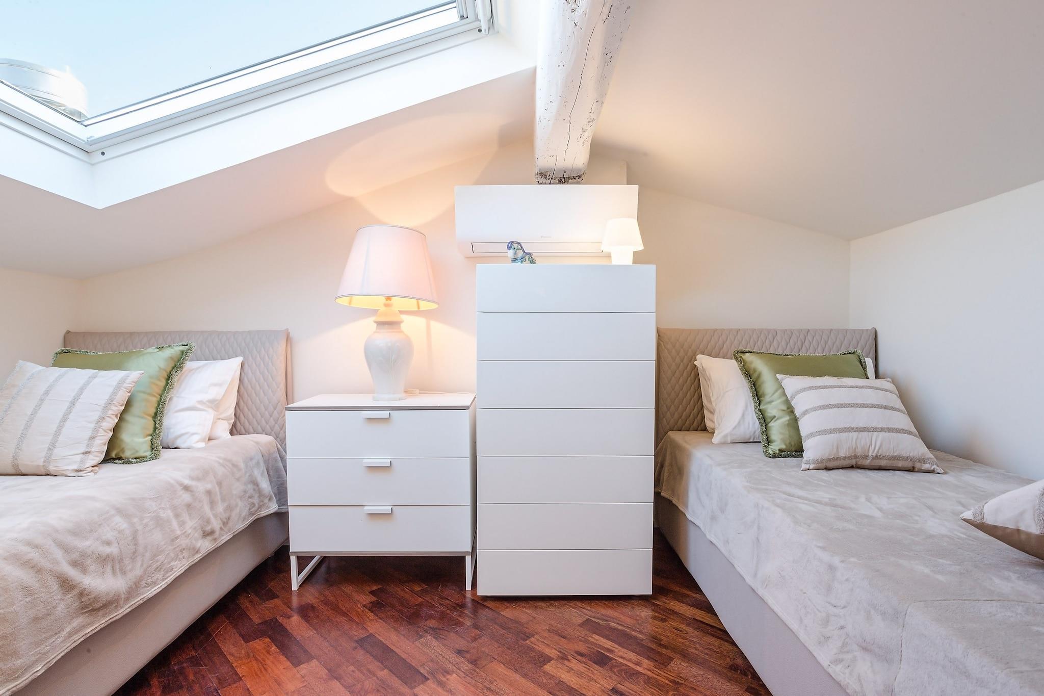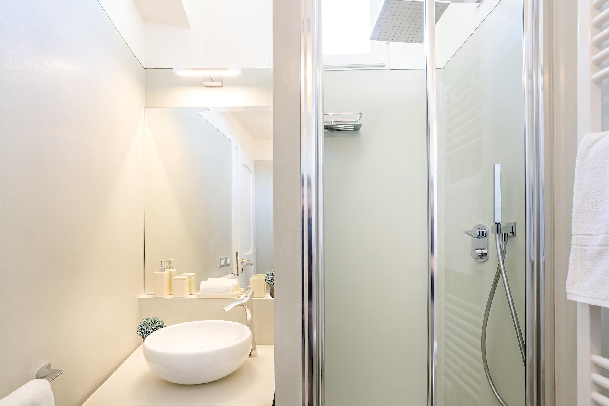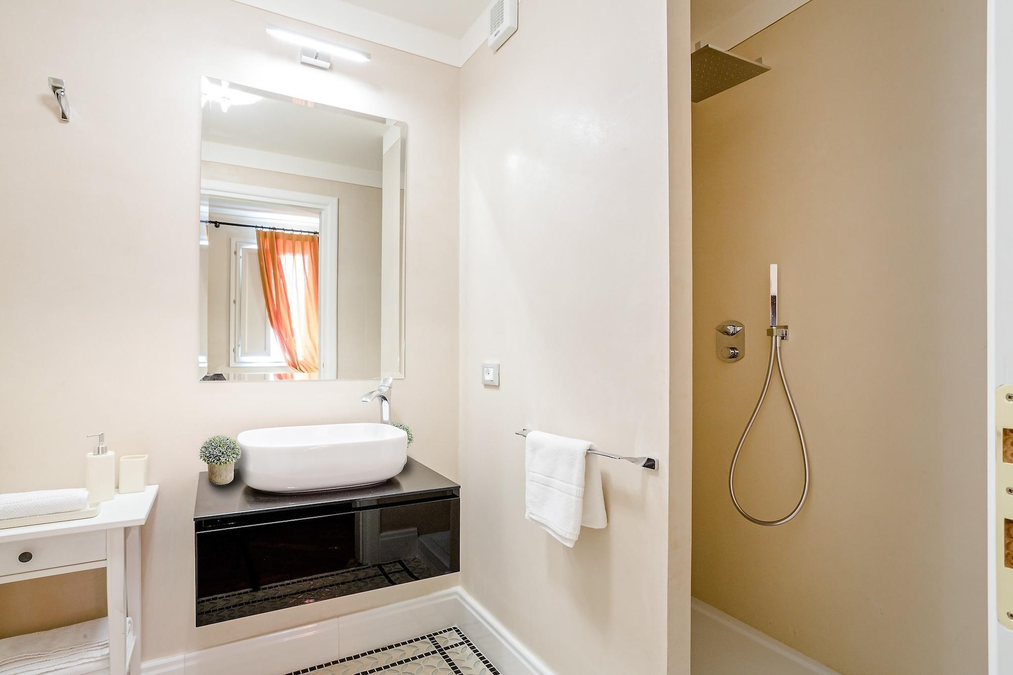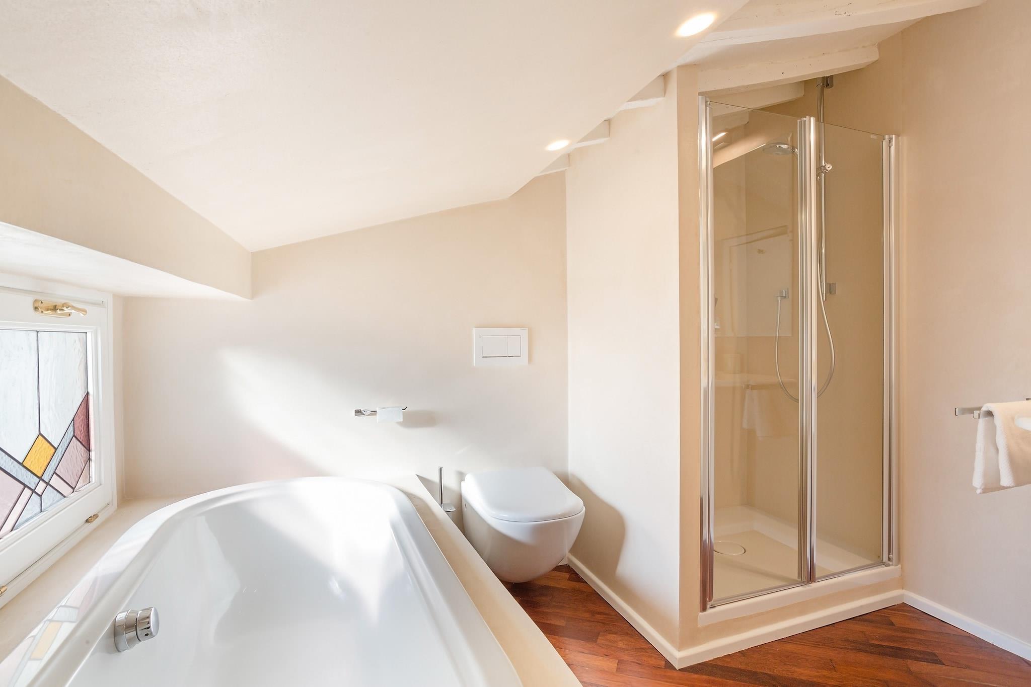 Erleben Sie den Charme von Florenz in diesem luxuriösen Apartment auf zwei Ebenen im vierten Stock eines historischen Gebäudes in einer malerischen Straße. Nur 5 Gehminuten vom Bahnhof entfernt und in der Nähe der Piazza Santa Maria Novella bietet dieses geschmackvoll renovierte Apartment Platz für bis zu sechs Gäste und verfügt über drei wunderschön eingerichtete Schlafzimmer und drei Badezimmer. Beim Betreten werden Sie von einem hellen Wohnzimmer mit dekorativem Kamin und großem Flachbildfernseher begrüßt. Der Essbereich bietet einen großen Tisch für sechs Personen, und die voll ausgestattete Küche verfügt über Gaskocher, Elektroherd, Geschirrspüler sowie Kaffeemaschinen für amerikanische und Espressomaschinen – ideal für hausgemachte Mahlzeiten. Das Apartment wurde auf Komfort und Privatsphäre ausgelegt und bietet zwei luxuriöse Schlafzimmer im Erdgeschoss, beide mit Kingsize-Betten und eigenem Bad. Eine beeindruckende Wendeltreppe führt in die obere Etage, wo Sie ein gemütliches Schlafzimmer mit zwei Einzelbetten und eigenem Bad mit Badewanne und Dusche finden. Jedes Schlafzimmer bietet eine ruhige Atmosphäre, ausgestattet mit Klimaanlage und zuverlässigem Highspeed-WLAN, sodass Sie nach einem erlebnisreichen Tag in der Stadt entspannen können. Dieses Apartment liegt im Viertel Duomo-Santa Maria Novella und ist somit das Herzstück der florentinischen Kulturszene. Erkunden Sie berühmte Sehenswürdigkeiten wie die Uffizien, genießen Sie gehobene Küche und shoppen Sie in den Boutiquen der berühmten Straßen. Das Gebiet ist Teil einer verkehrsberuhigten Zone (ZTL). Planen Sie daher bitte entsprechend, wenn Sie mit dem Auto anreisen. Familien mit Kindern unter 12 Jahren kontaktieren uns bitte für besondere Arrangements. Erleben Sie den Zauber von Florenz in diesem eleganten und einladenden Refugium!