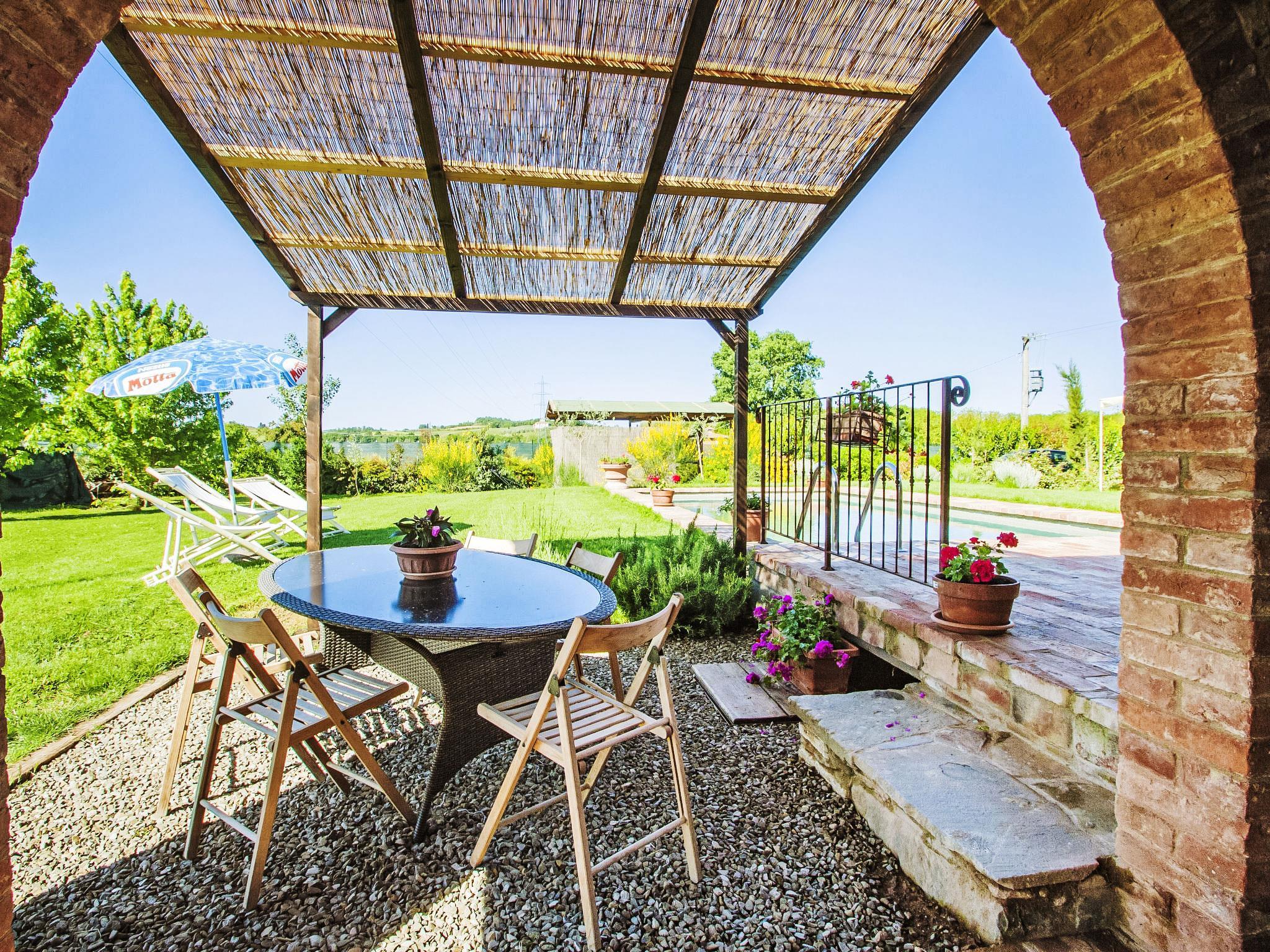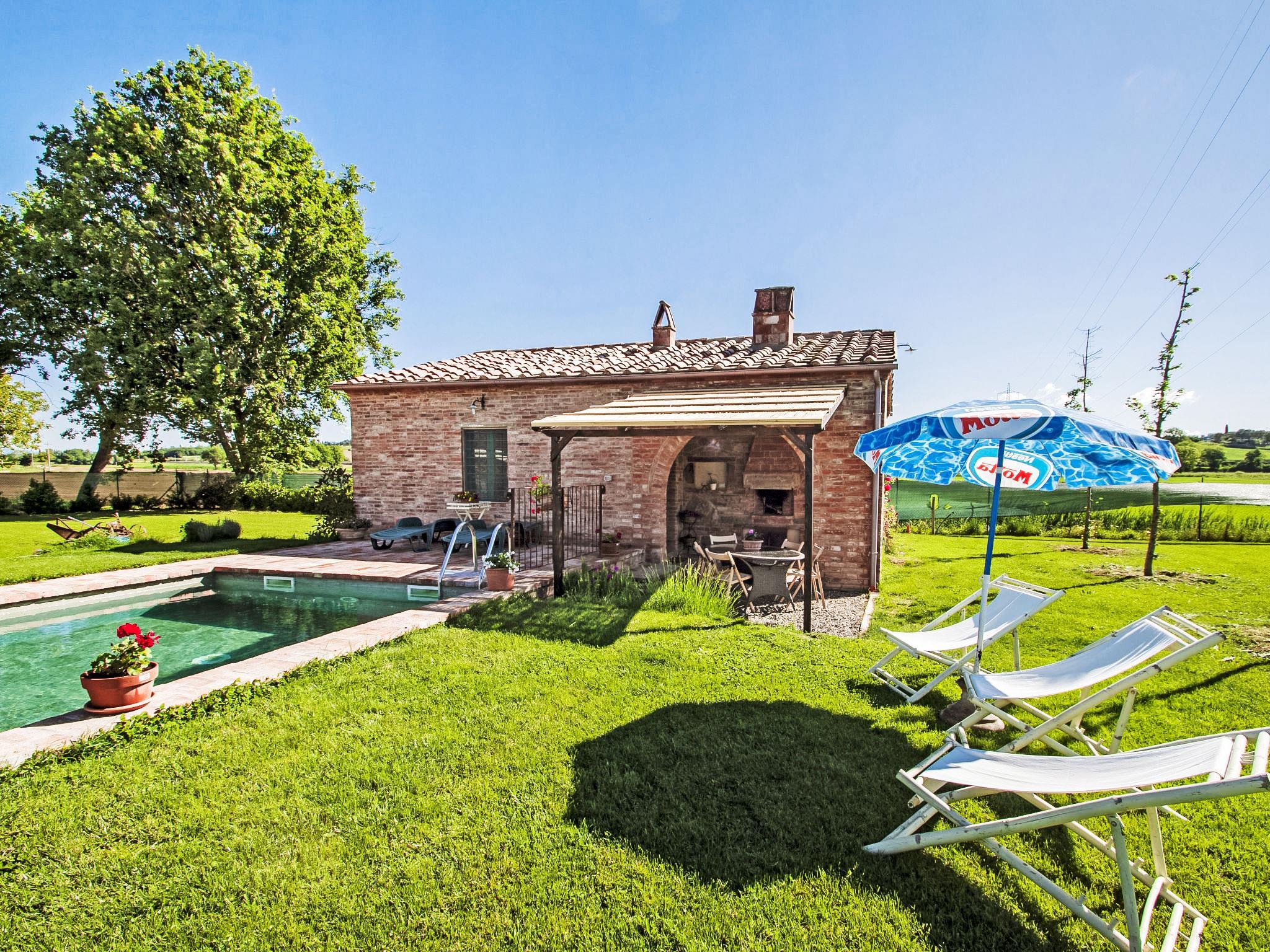 Gemütliches, freistehendes Einfamilienhaus "La Capannina", renoviert, umgeben von Feldern. Foiano della Chiana, 6 km vom Zentrum von Foiano della Chiana, sonnige Lage, 25 km vom See, im Grünen. Zur Mitbenutzung: Grundstück 2'000 m2 (eingezäunt). Zur Alleinbenutzung: Garten 1'000 m2 (eingezäunt), Schwimmbad (8 x 4 m, 150 cm tief, saisonale Verfügbarkeit: 01.Mai. - 30.Sep.). Dusche/WC im Poolbereich, Pergola, Gartenmöbel, Grill, Grillhaus. Im Hause: Internetzugang. Zufahrt (1.5 km Naturweg). Parkplatz auf dem Grundstück. Einkaufsgeschäft 2 km, Supermarkt 5 km, Einkaufszentrum 3 km, Restaurant 3 km, Bushaltestelle 5 km, Thermalbad "Rapolano Terme" 23 km, Badesee "Trasimeno" 25 km. Golfplatz (12 Loch) 10 km, Reitstall 3 km. Nahe gelegene Sehenswürdigkeiten: Cortona 20 km, Montepulciano 20 km, Pienza 30 km, Castiglione Del Lago 31 km, Arezzo 32 km, San quirico D'Orcia 38 km. Bitte beachten: Fahrzeug empfohlen. Geeignet für Familien. Objekt geeignet für 4 Erwachsene + 1 Kind. Der Besitzer wohnt auf dem gleichen Grundstück. Eigentümer hat einen Hund.