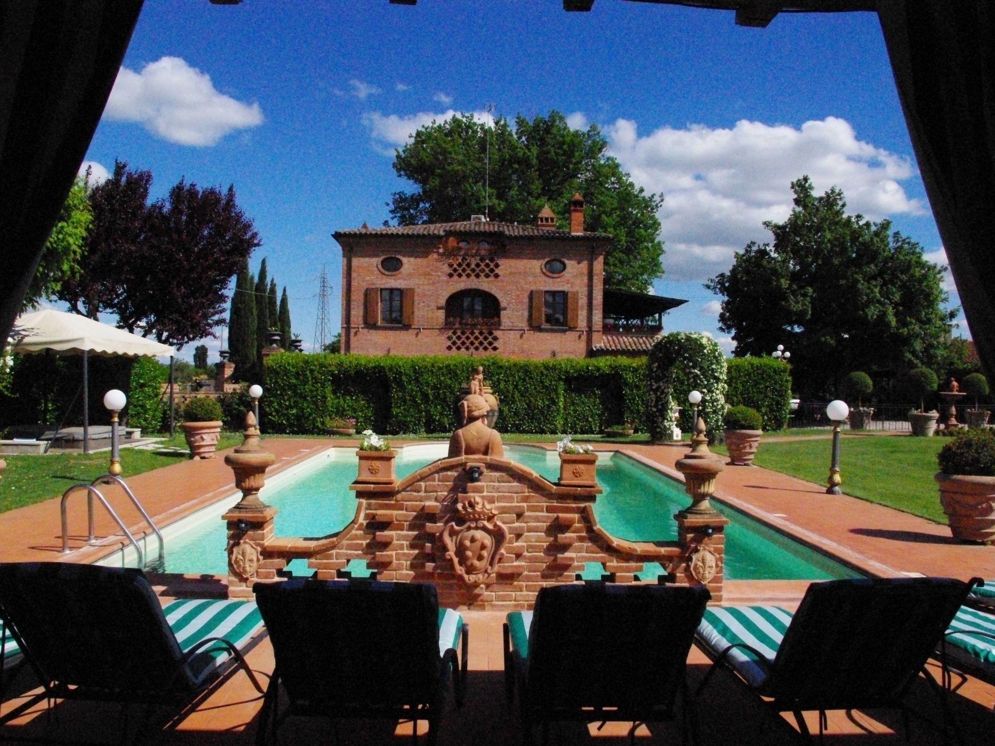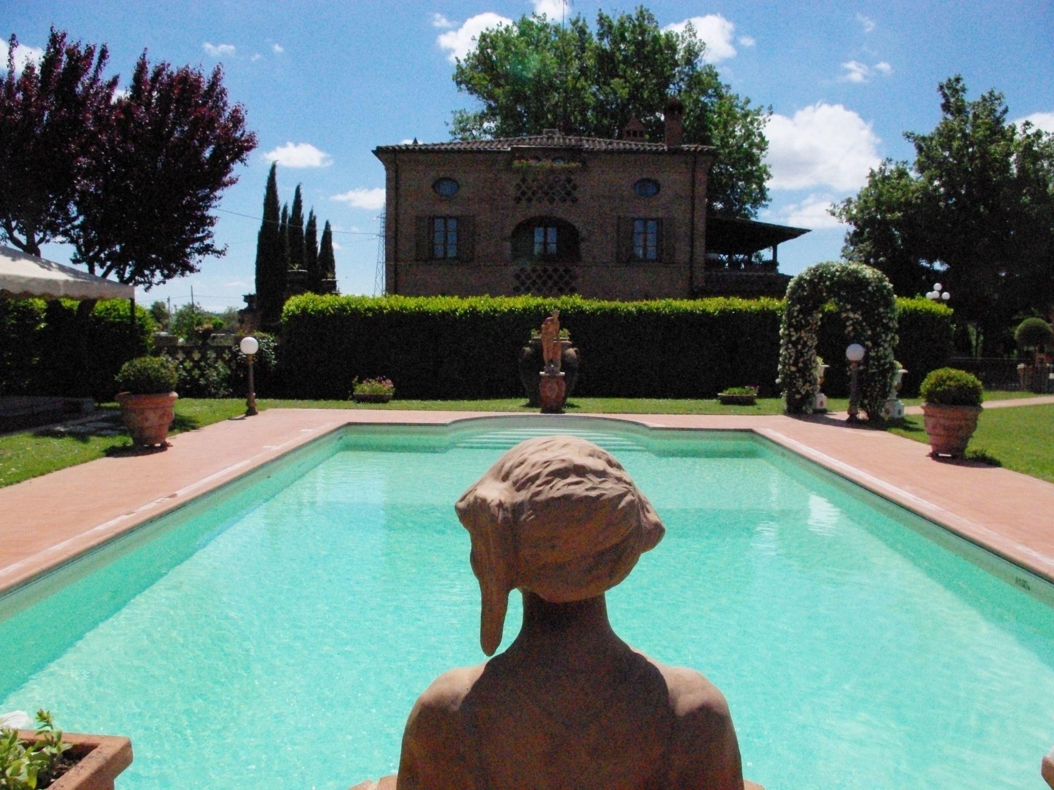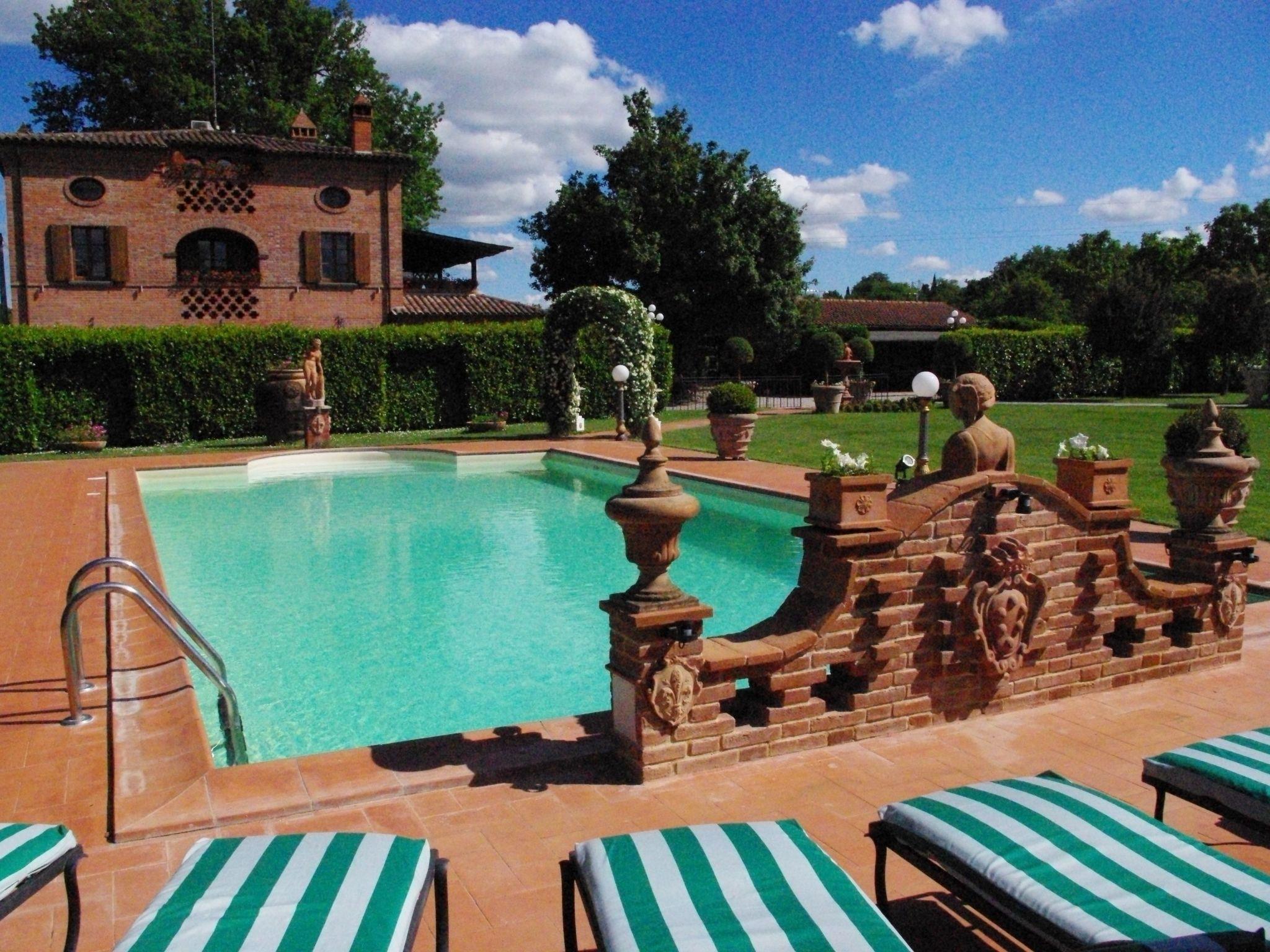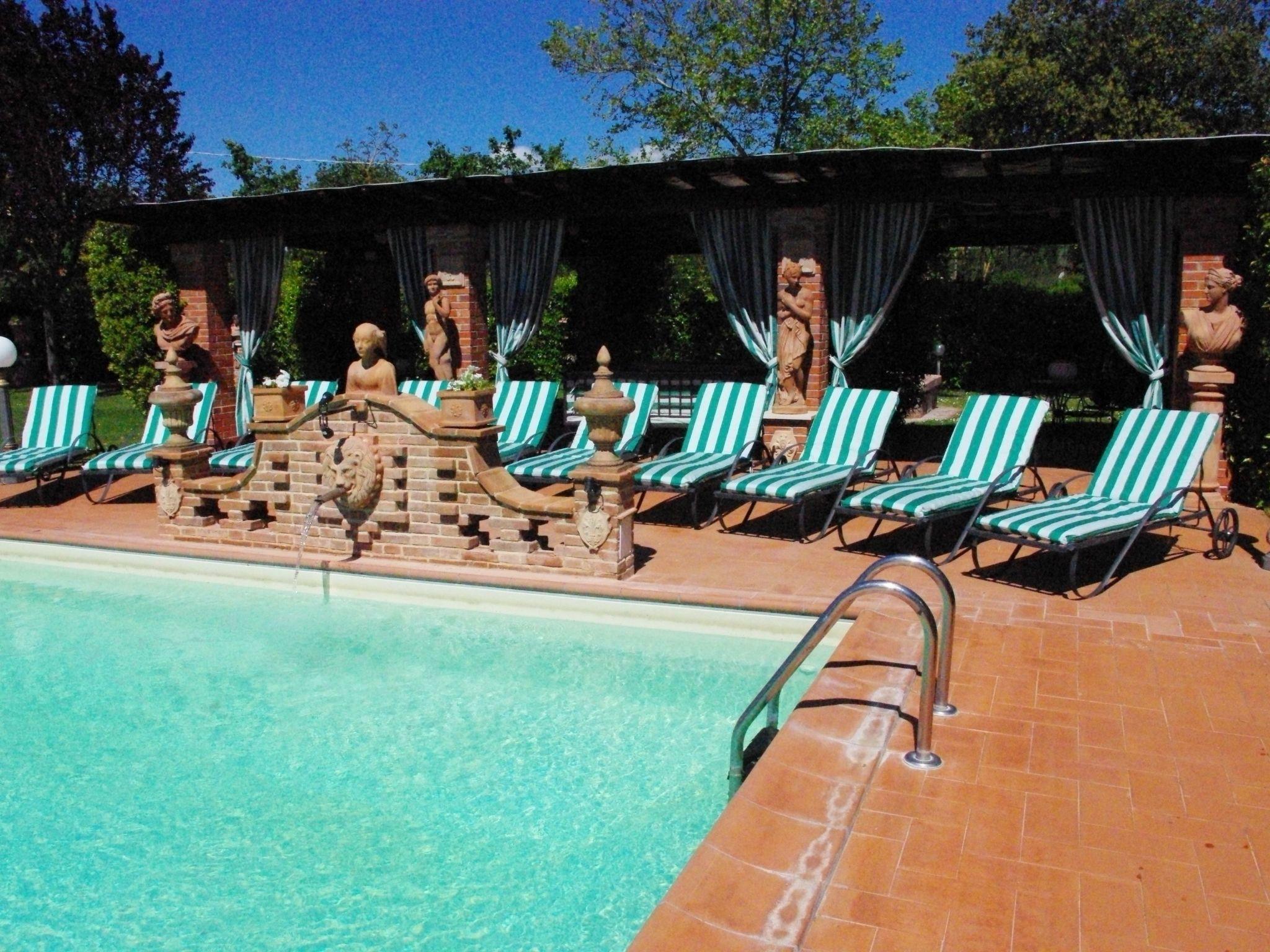 Diese fabelhafte Villa in der Provinz Arezzo lädt die Gäste ein, sich in der Natur der toskanischen Landschaft zu entspannen und zu erholen, die von grünen Hügeln, goldenem Sonnenschein, hervorragendem Wein und einer einzigartigen Küche geprägt ist. Die Gäste können einen Transfer vom und zum Flughafen, Führungen, Mahlzeiten, Kochkurse und andere Aktivitäten wie Angeln, Golf, Reiten, Mountainbiking und vieles mehr buchen. Die Villa wurde 1921 erbaut und hat im Laufe der Jahre einige Renovierungen und Erweiterungen erfahren, um allen modernen Komfort zu bieten. Direkt vor der Villa befindet sich der schöne Swimmingpool, der von klassischen italienischen Gärten und Skulpturen umgeben ist. Neben dem Pool gibt es zwei Grillplätze, einen Whirlpool mit 6 Plätzen und eine finnische Sauna mit 8 Plätzen, die das ganze Jahr über exklusiv von den Gästen genutzt werden können, sowie zahlreiche Pavillons und Liegestühle. Außerdem gibt es einen großen achteckigen Springbrunnen und einen weiteren Pavillon mit Tisch und Stühlen. Auf dem Grundstück befinden sich außerdem eine Tischtennisplatte, ein Tischfußball oder Kicker, Fitnessgeräte, 7 Mountainbikes für Erwachsene und 4 Mountainbikes für Kinder, die von den Gästen frei genutzt werden können, sowie ein Kinderspielplatz. Die Villa ist durch eine 26 cm hohe vertikale Trennwand aus Vollziegeln in zwei große Wohnungen mit drei Schlafzimmern unterteilt, von denen eine vom Eigentümer bewohnt wird, der über ein eigenes Einfahrtstor und eine eigene Tür verfügt, um den Gästen ein Höchstmaß an Privatsphäre zu gewährleisten, die den gesamten Garten, das Schwimmbad, die Sauna und den Whirlpool exklusiv nutzen können.