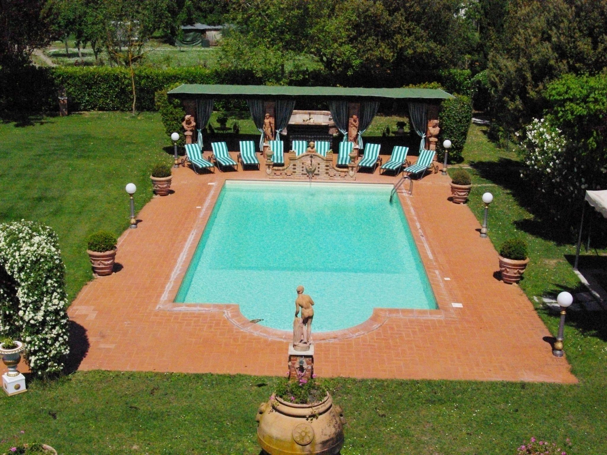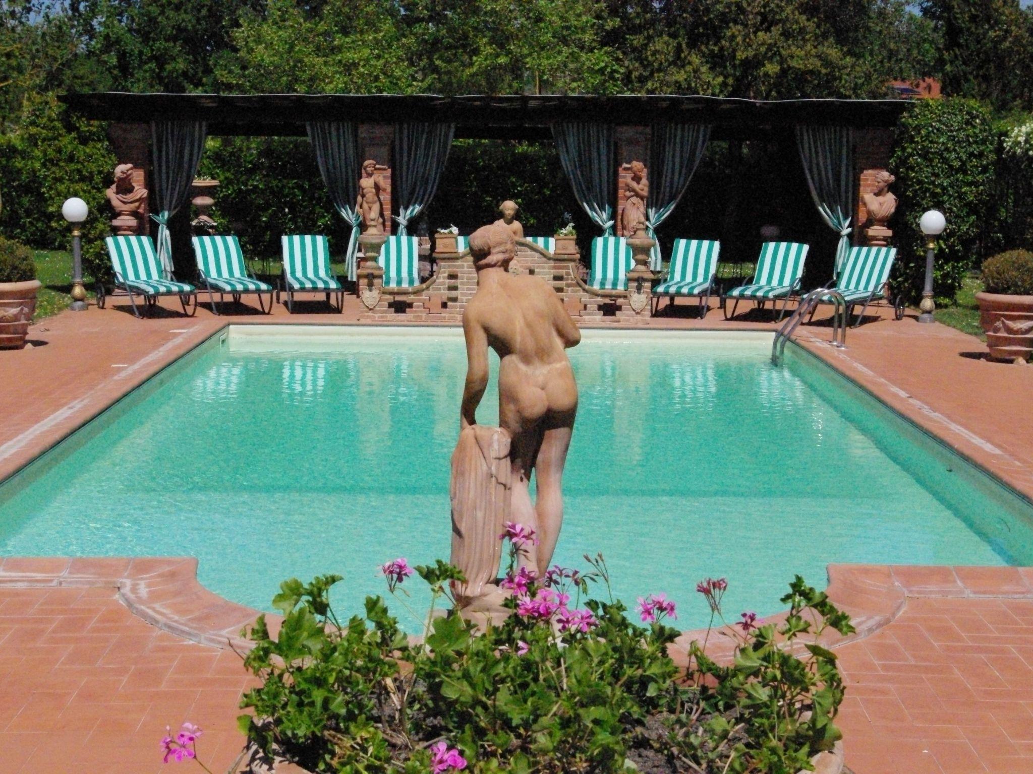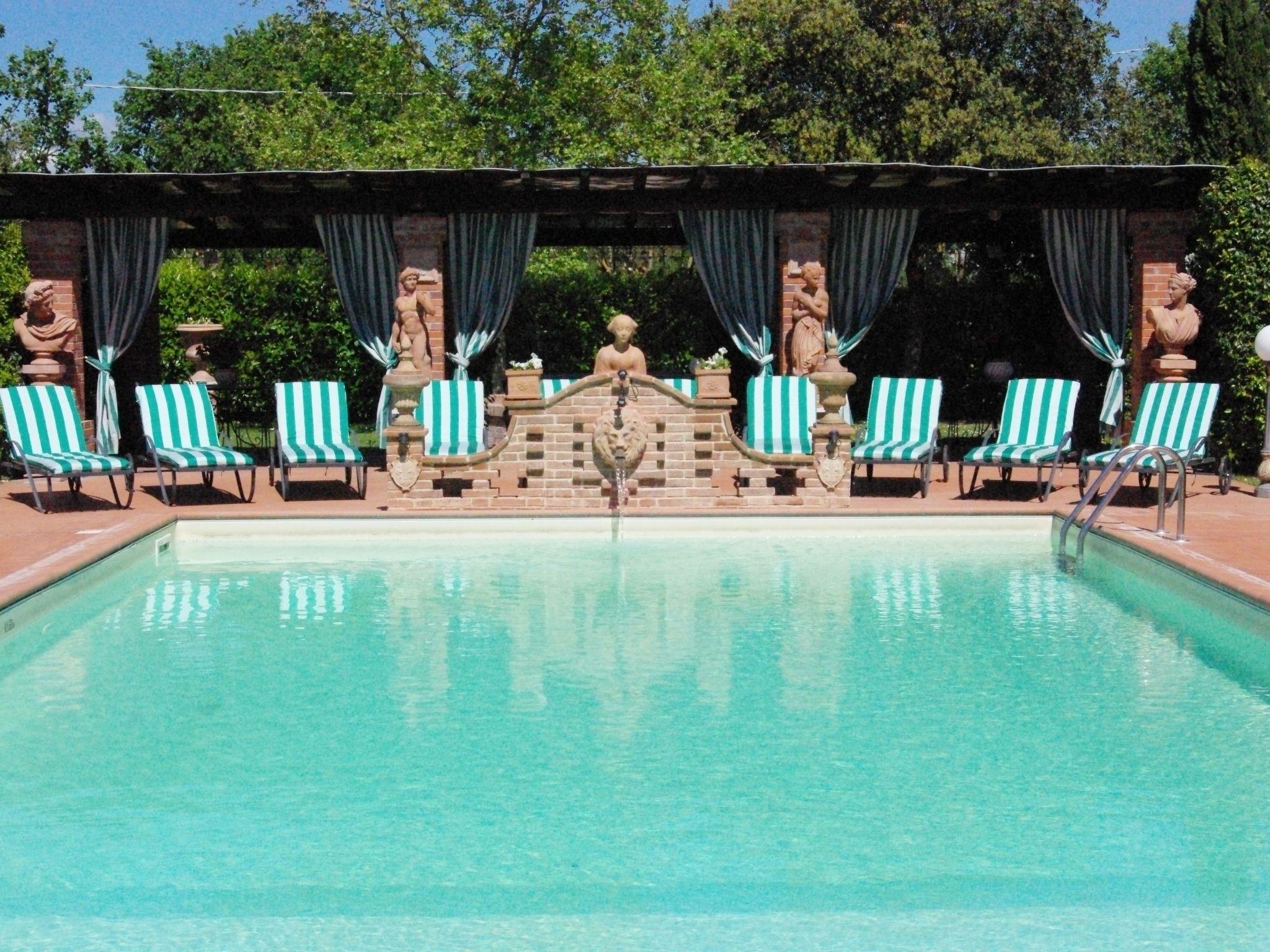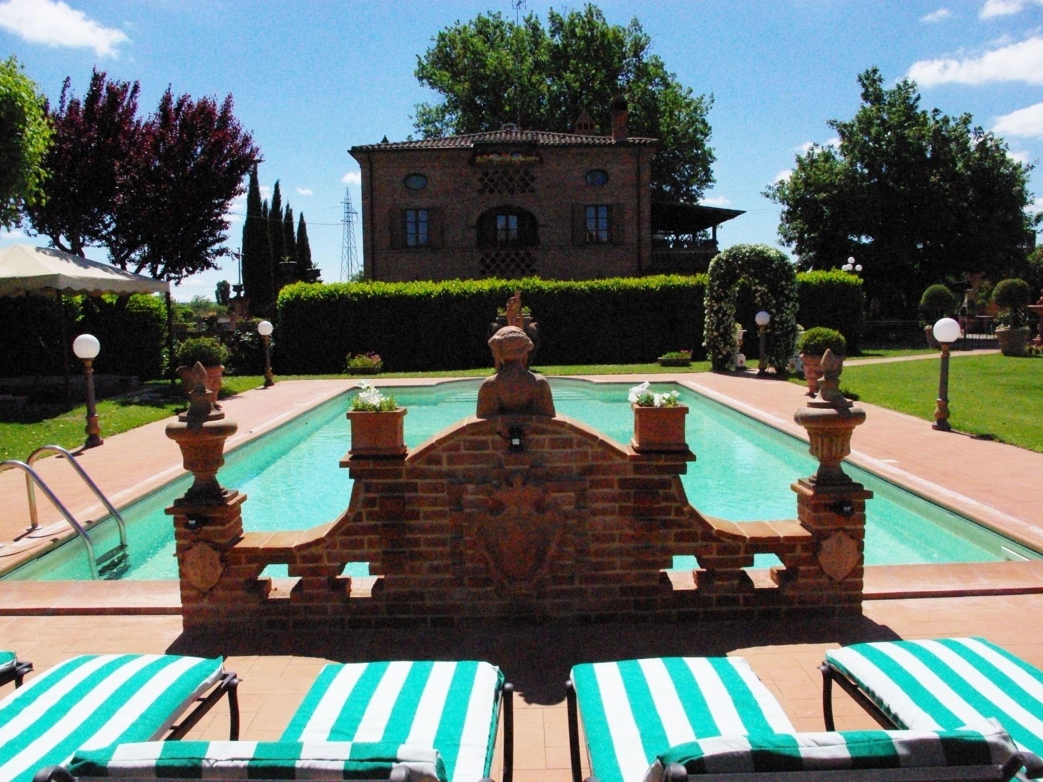 Diese fabelhafte Villa in der Provinz Arezzo lädt die Gäste ein, sich in der Natur der toskanischen Landschaft zu entspannen und zu erholen, die von grünen Hügeln, goldenem Sonnenschein, hervorragendem Wein und einer einzigartigen Küche geprägt ist. Die Gäste können einen Transfer vom und zum Flughafen, Führungen, Mahlzeiten, Kochkurse und andere Aktivitäten wie Angeln, Golf, Reiten, Mountainbiking und vieles mehr buchen. Die Villa wurde 1921 erbaut und hat im Laufe der Jahre einige Renovierungen und Erweiterungen erfahren, um allen modernen Komfort zu bieten. Direkt vor der Villa befindet sich der schöne Swimmingpool, der von klassischen italienischen Gärten und Skulpturen umgeben ist. Neben dem Pool gibt es zwei Grillplätze, einen Whirlpool mit 6 Plätzen und eine finnische Sauna mit 8 Plätzen, die das ganze Jahr über exklusiv von den Gästen genutzt werden können, sowie zahlreiche Pavillons und Liegestühle. Außerdem gibt es einen großen achteckigen Springbrunnen und einen weiteren Pavillon mit Tisch und Stühlen. Auf dem Grundstück befinden sich außerdem eine Tischtennisplatte, ein Tischfußball oder Kicker, Fitnessgeräte, 7 Mountainbikes für Erwachsene und 4 Mountainbikes für Kinder, die von den Gästen frei genutzt werden können, sowie ein Kinderspielplatz. Die Villa ist durch eine 26 cm hohe vertikale Trennwand aus Vollziegeln in zwei große Wohnungen mit drei Schlafzimmern unterteilt, von denen eine vom Eigentümer bewohnt wird, der über ein eigenes Einfahrtstor und eine eigene Tür verfügt, um den Gästen ein Höchstmaß an Privatsphäre zu gewährleisten, die den gesamten Garten, das Schwimmbad, die Sauna und den Whirlpool exklusiv nutzen können.
