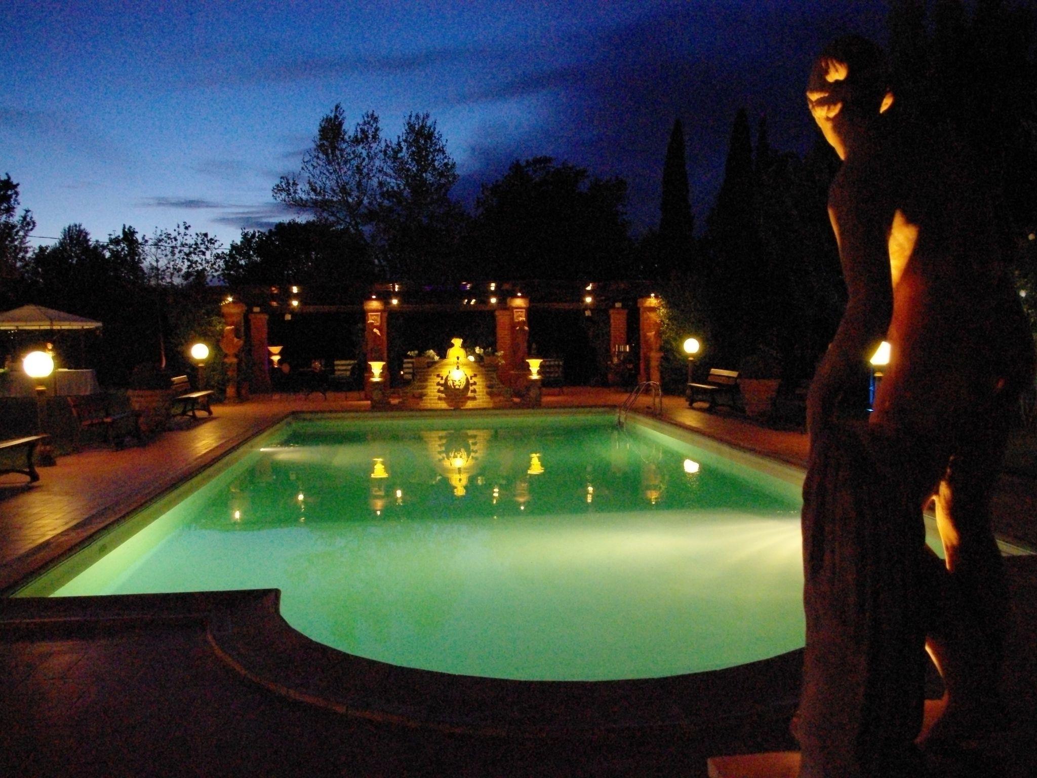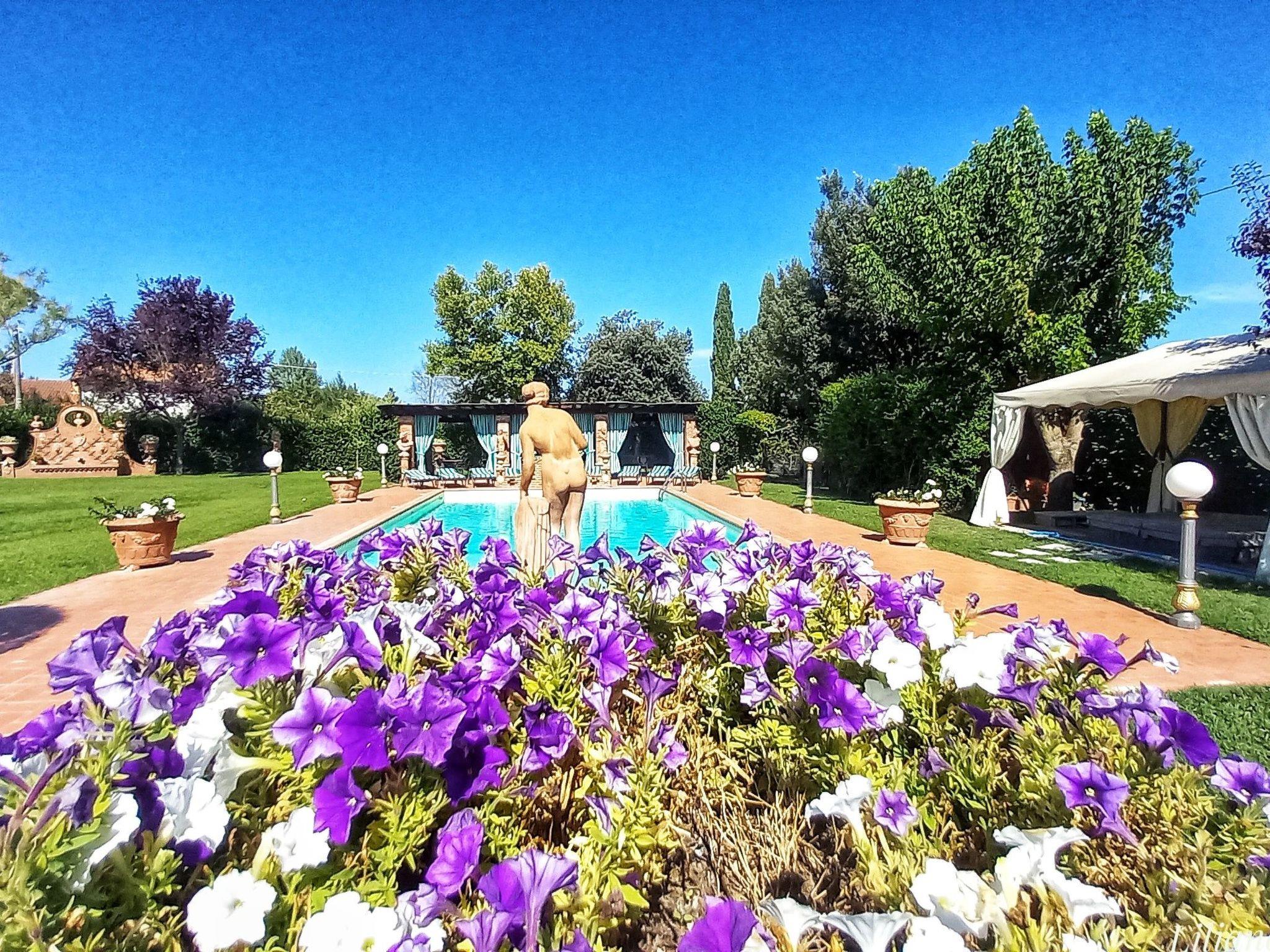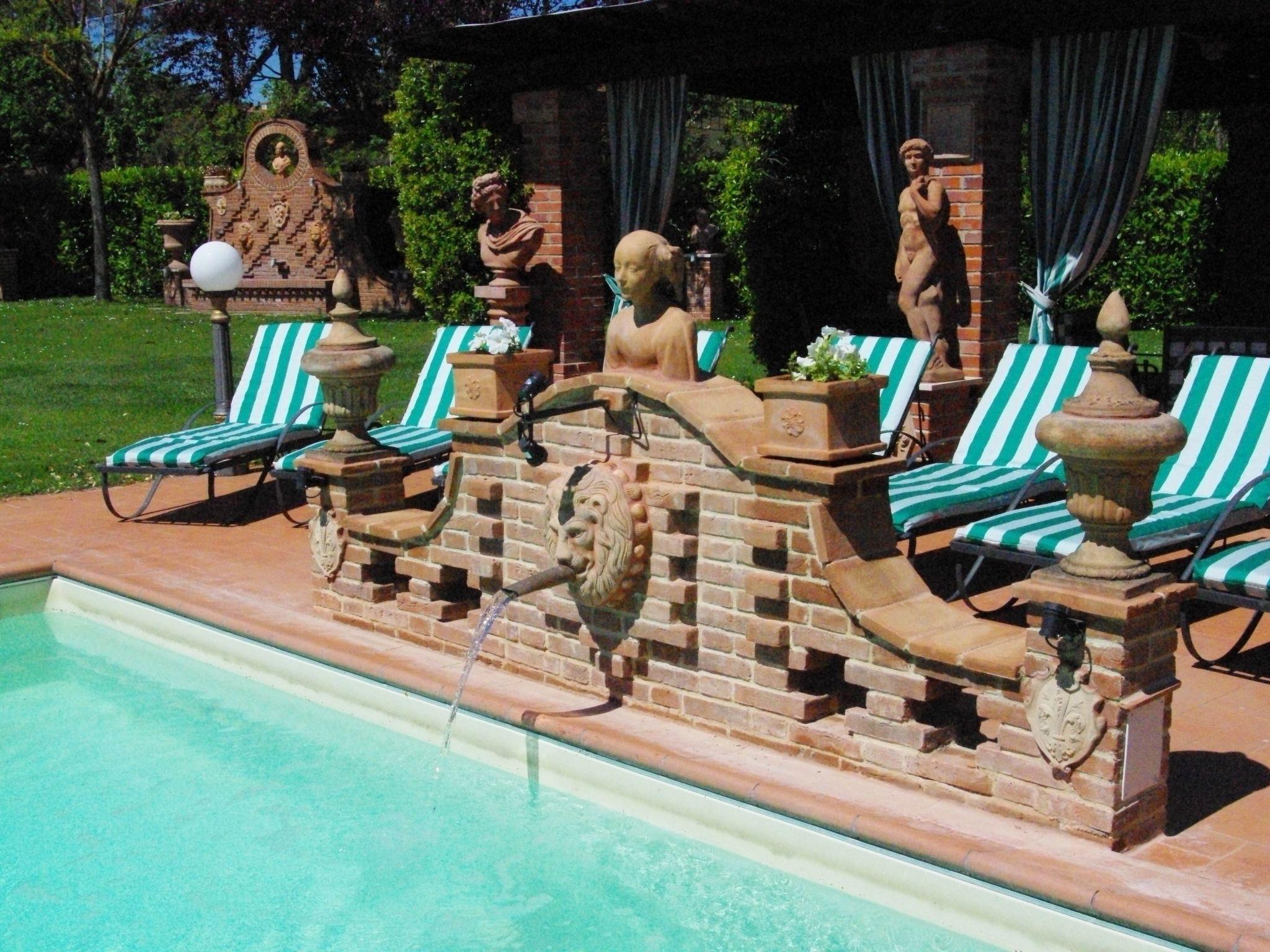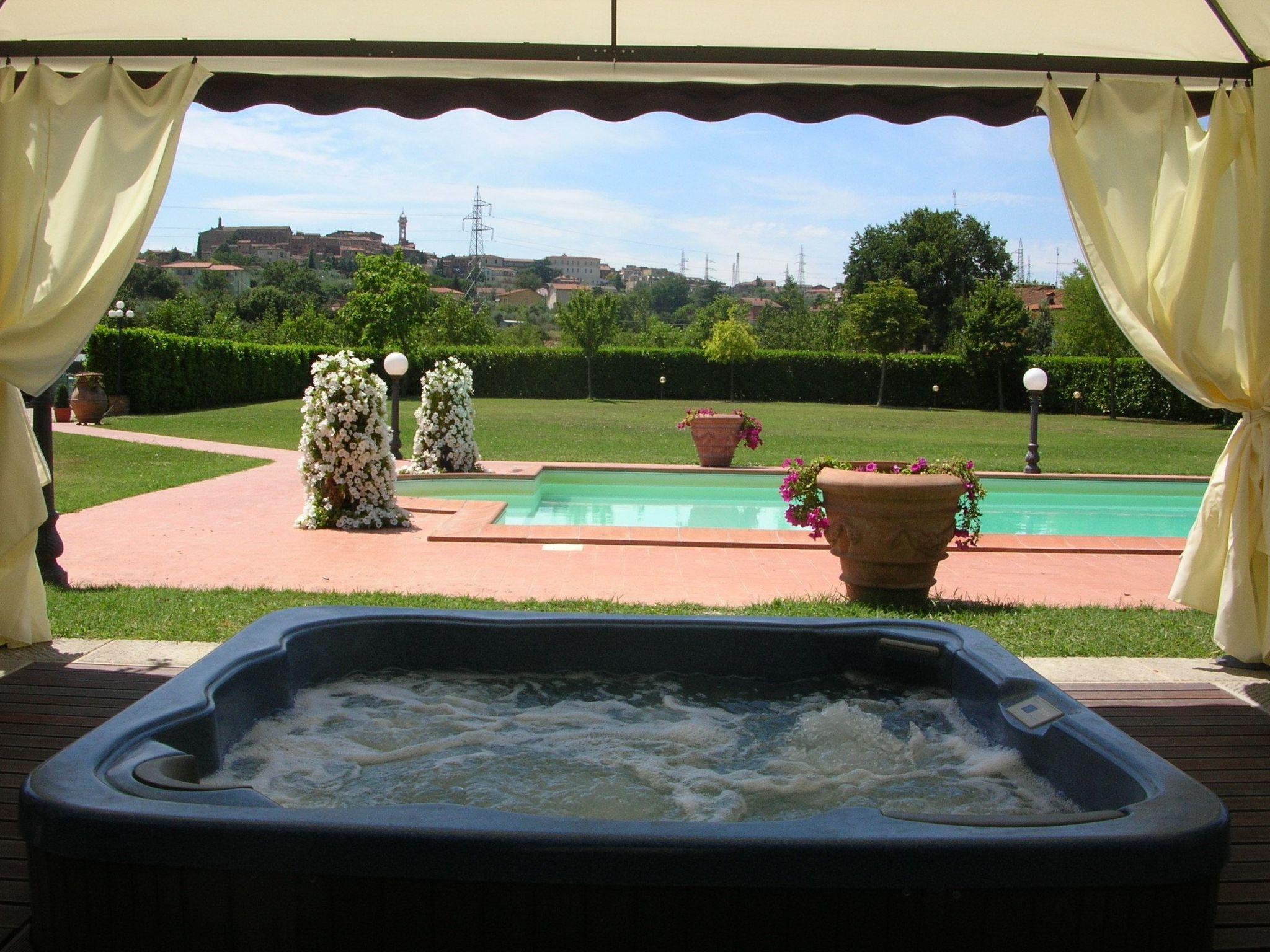 Diese fabelhafte Villa in der Provinz Arezzo lädt die Gäste ein, sich in der Natur der toskanischen Landschaft zu entspannen und zu erholen, die von grünen Hügeln, goldenem Sonnenschein, hervorragendem Wein und einer einzigartigen Küche geprägt ist. Die Gäste können einen Transfer vom und zum Flughafen, Führungen, Mahlzeiten, Kochkurse und andere Aktivitäten wie Angeln, Golf, Reiten, Mountainbiking und vieles mehr buchen. Die Villa wurde 1921 erbaut und hat im Laufe der Jahre einige Renovierungen und Erweiterungen erfahren, um allen modernen Komfort zu bieten. Direkt vor der Villa befindet sich der schöne Swimmingpool, der von klassischen italienischen Gärten und Skulpturen umgeben ist. Neben dem Pool gibt es zwei Grillplätze, einen Whirlpool mit 6 Plätzen und eine finnische Sauna mit 8 Plätzen, die das ganze Jahr über exklusiv von den Gästen genutzt werden können, sowie zahlreiche Pavillons und Liegestühle. Außerdem gibt es einen großen achteckigen Springbrunnen und einen weiteren Pavillon mit Tisch und Stühlen. Auf dem Grundstück befinden sich außerdem eine Tischtennisplatte, ein Tischfußball oder Kicker, Fitnessgeräte, 7 Mountainbikes für Erwachsene und 4 Mountainbikes für Kinder, die von den Gästen frei genutzt werden können, sowie ein Kinderspielplatz. Die Villa ist durch eine 26 cm hohe vertikale Trennwand aus Vollziegeln in zwei große Wohnungen mit drei Schlafzimmern unterteilt, von denen eine vom Eigentümer bewohnt wird, der über ein eigenes Einfahrtstor und eine eigene Tür verfügt, um den Gästen ein Höchstmaß an Privatsphäre zu gewährleisten, die den gesamten Garten, das Schwimmbad, die Sauna und den Whirlpool exklusiv nutzen können.