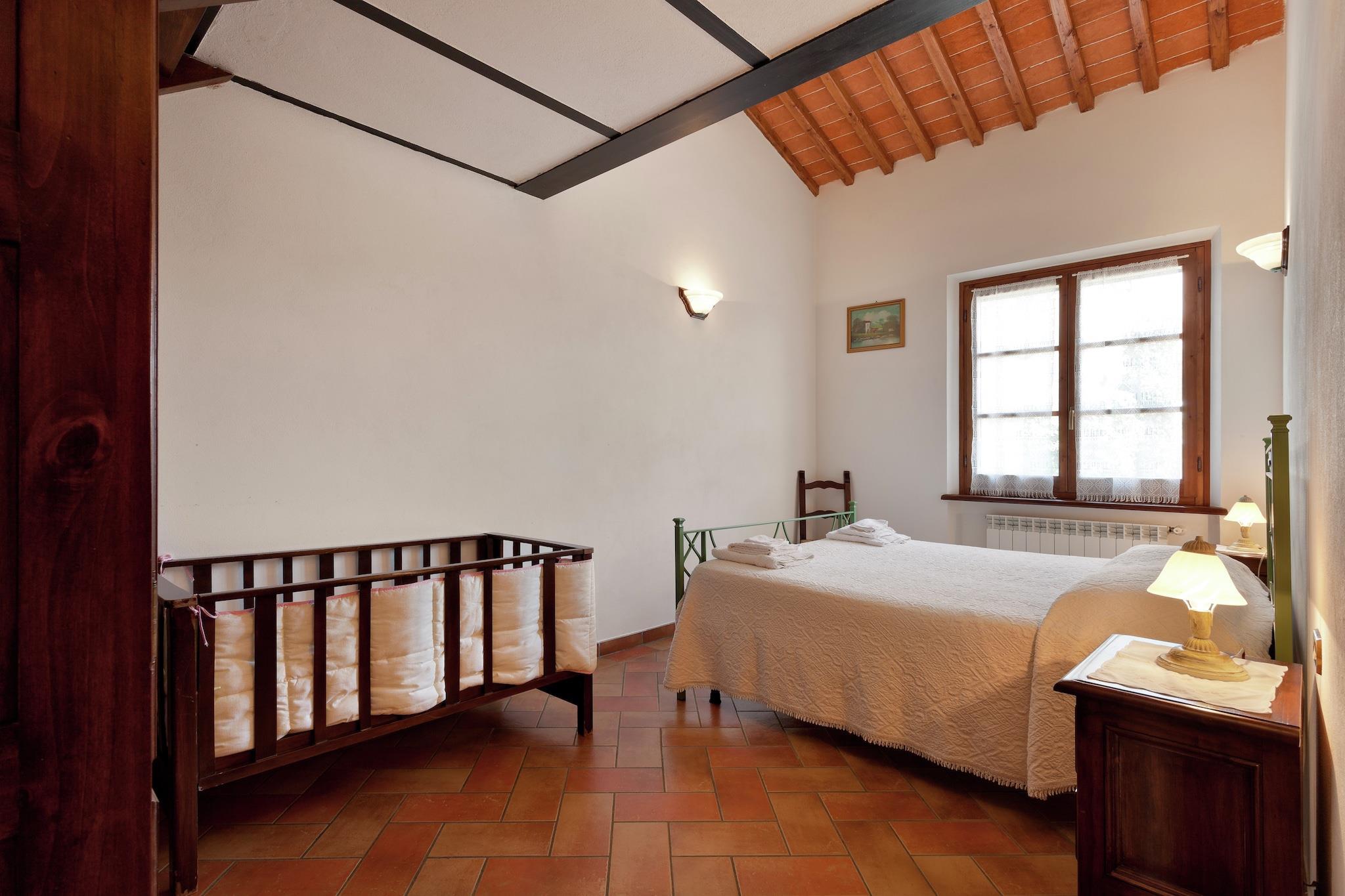 Diese gemütliche und charmante Wohnung befindet sich zusammen mit drei weiteren auf einem großen Anwesen mit zwei komplett restaurierten Häusern. Die Wohnung ist klimatisiert, geschmackvoll eingerichtet und mit besonderen Details versehen. Das etwa 40 Hektar große Anwesen beherbergt einen von Wäldern umgebenen See, der groß genug zum Angeln ist und ein Beispiel römischer Architektur darstellt. Gemeinsam mit den Bewohnern der anderen Wohnungen haben Sie Zugang zu einem großen Swimmingpool mit Kinderbecken, Außendusche, Spielplatz, einem kleinen Spielplatz und einer Terrasse mit Sitzgelegenheiten. Der an den Pool angrenzende Garten ist in private Bereiche mit Sonnenliegen und Sonnenschirmen unterteilt. Die Wohnung liegt nur 3 Kilometer vom Dorf Foiano della Chiana entfernt, wo Sie Ihre täglichen Einkäufe erledigen, gut essen und den Bahnhof finden können. Cortona, etwa 20 Kilometer entfernt, ist einen Besuch wert. Diese Stadt liegt auf einem Hügel und ist eine der ältesten Städte Italiens – sie ist wirklich beeindruckend. Für Shoppingbegeisterte gibt es Outlet-Shops in Foiano della Chiana, 9 Kilometer vom Haus entfernt. Der Trasimenische See ist 25 km entfernt und einen Besuch wert. Darüber hinaus sind Städte wie Arezzo (30 km), Siena (50 km) und Perugia (65 km) für einen unterhaltsamen Tagesausflug sehr zu empfehlen.