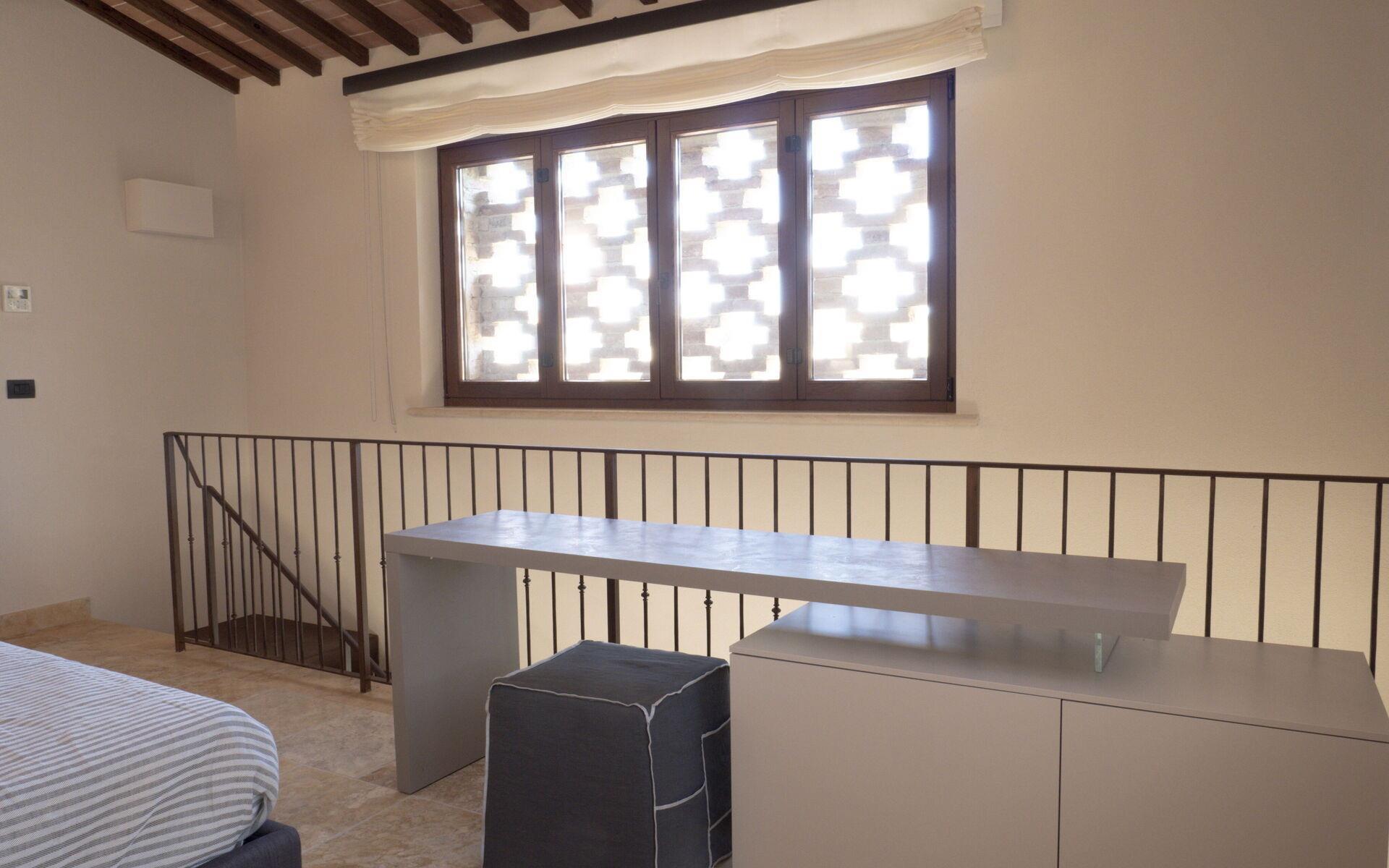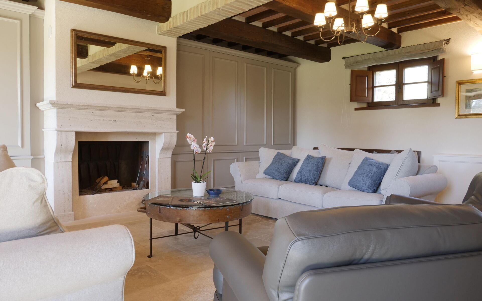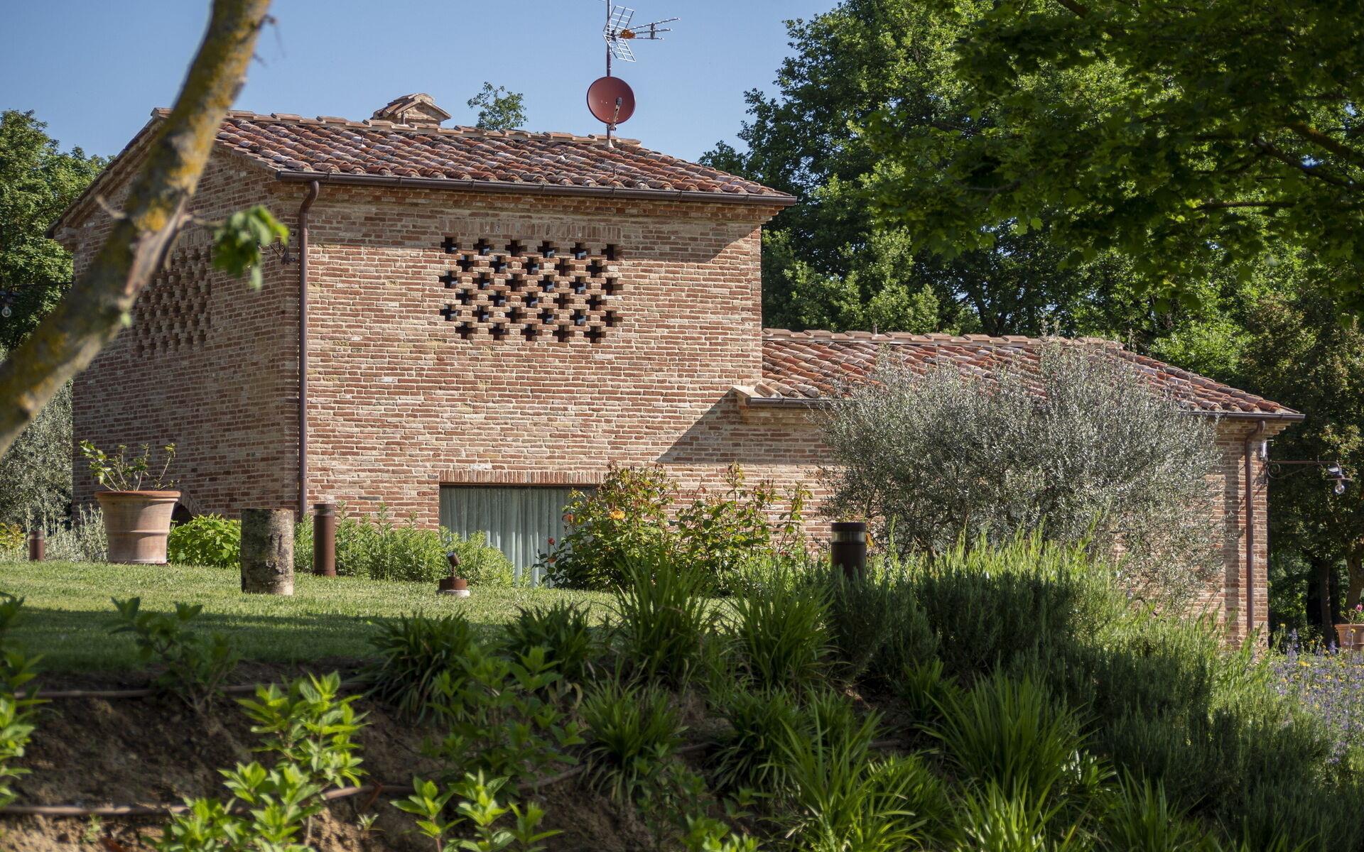 Die Hauptvilla erstreckt sich über drei Ebenen: Im Erdgeschoss befinden sich der Eingang, eine große Küche mit allem, was man zum Kochen braucht, ein Wohnzimmer und ein Badezimmer. Im ersten Stock gibt es 5 Doppelzimmer, alle mit eigenem Bad und Kühlschrank. Das letzte Stockwerk ist ein Untergeschoss, in dem sich eine zweite voll ausgestattete Küche, ein Wohnzimmer mit Billardtisch und ein Wohnbereich mit einer Ausstellung typisch toskanischer handwerklich hergestellter Salami befinden. Hier können auch Verkostungen von Weinen und typischen Produkten vor Ort angefragt werden (nach Absprache mit dem Eigentümer). Ein Gästebad vervollständigt diese Etage.