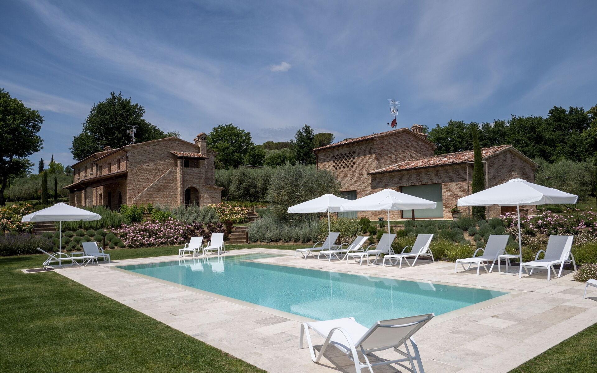 Eingebettet in die grüne Landschaft der Toskana, im Herzen der Valdichiana, befindet sich ein bedeutendes, luxuriöses und charmantes Anwesen, in dem Sie einen unvergesslichen Aufenthalt genießen können: die Villa Dahlia.