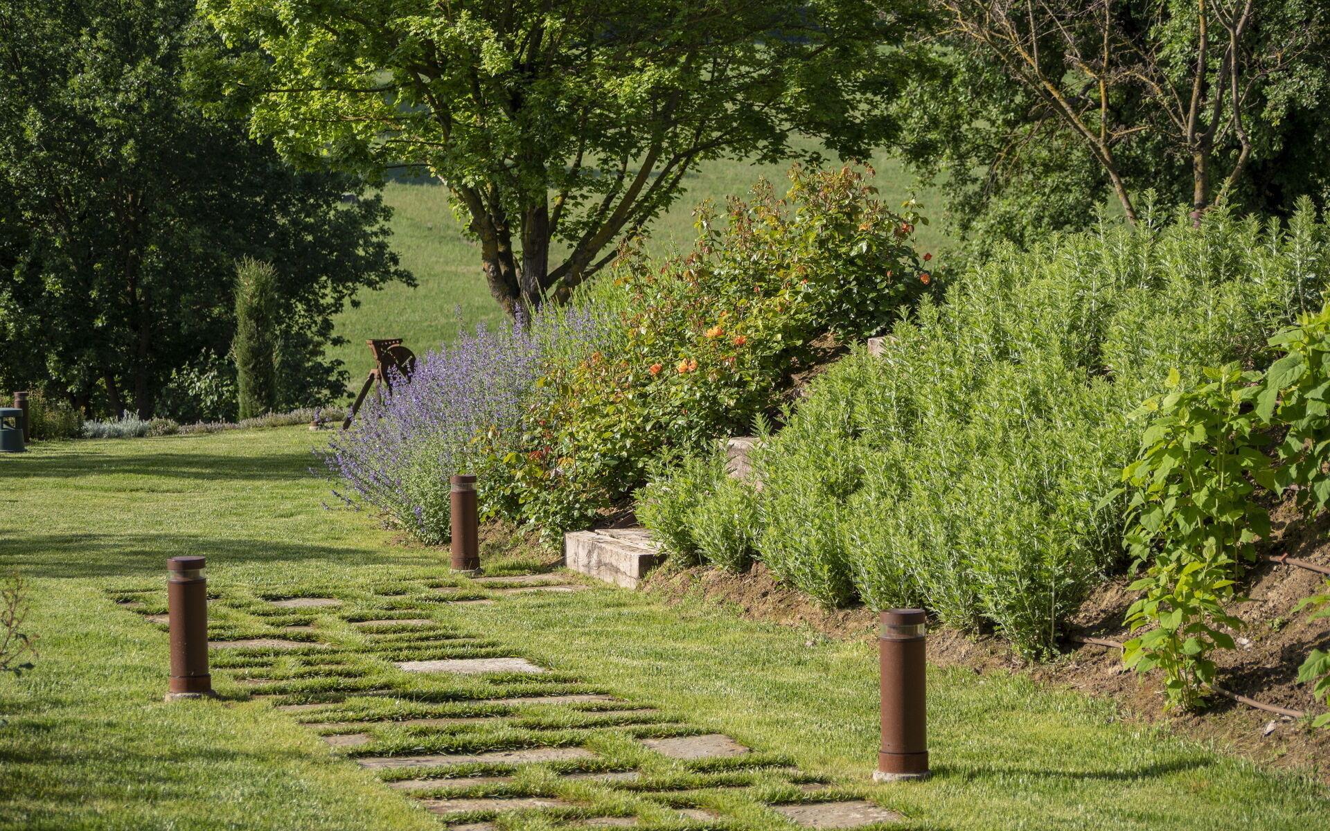 Im Inneren des Parks befindet sich ein wunderschöner 4-seitiger Infinity-Pool (12 x 4 Meter, geöffnet vom 15. Mai bis 15. September) zwischen der Villa und dem Nebengebäude, komplett mit Solarium mit Liegestühlen und Sonnenschirmen. Im großen Park finden Sie auch einen Spielplatz mit einem Fußball-/Volleyballfeld und einen Gemüsegarten, zu dem Gäste freien Zugang haben und in dem Sie kostenlos saisonales Gemüse für Ihre Mahlzeiten ernten können.