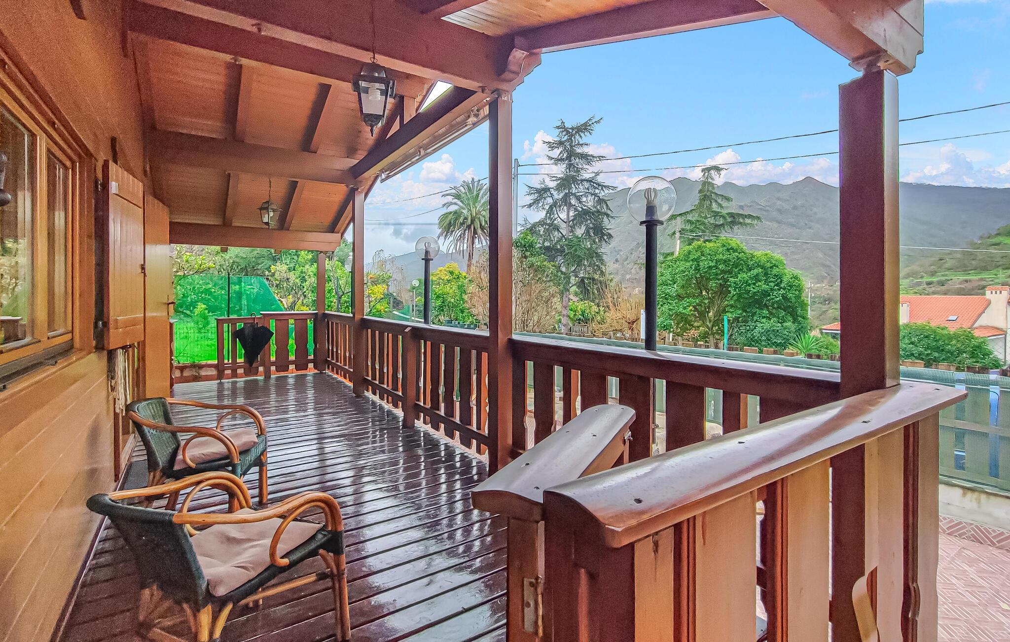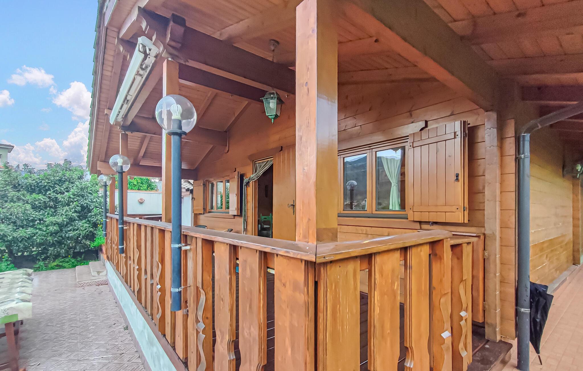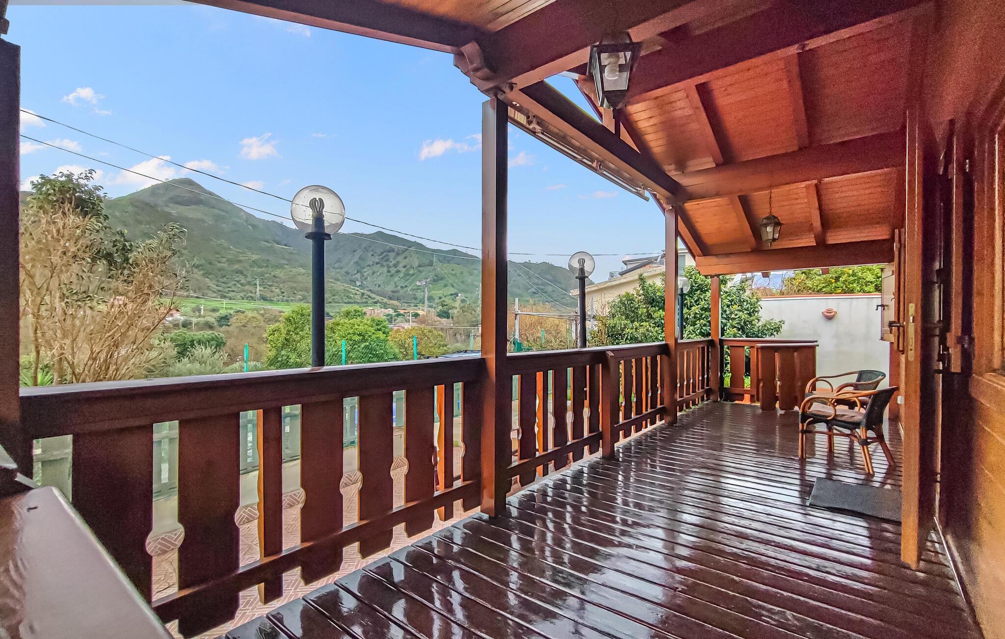 Ihre großzügige, überdachte Holzveranda lockt mit einem schönen Blick auf die umliegende Landschaft und ist der ideale Ort, um das Erlebte abends bei einem Glas Wein Revue passieren zu lassen. Wenn Sie möchten, starten Sie hier auch mit einem ausgedehnten Frühstück in den Tag.