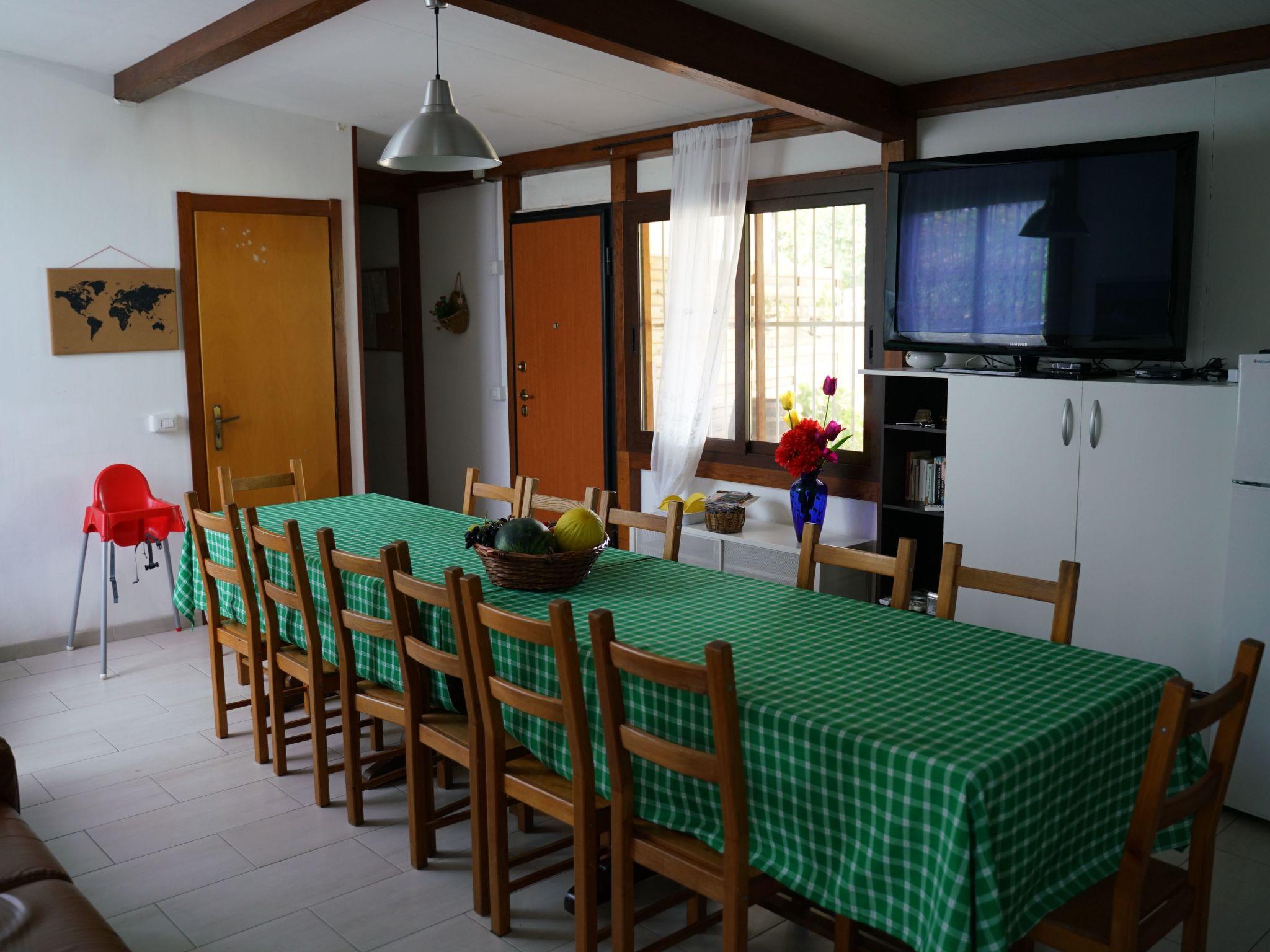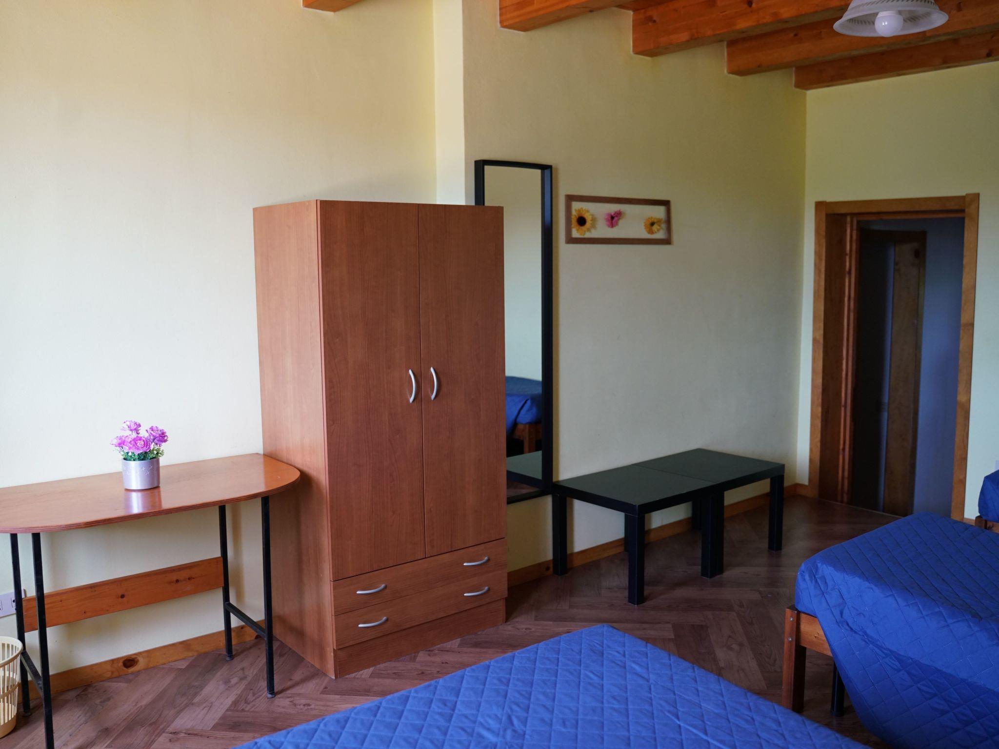 Die Villa, mit viel Liebe zum Detail, besteht aus zwei unabhängigen Reihenhäusern, jedes mit eigenem Eingang, von denen eines von den Eigentümern bewohnt wird und das zweite für Gäste zur Verfügung steht. Sie bietet sieben Schlafzimmer, jedes mit eigenem Bad, und kann bis zu zwanzig Personen beherbergen. Es ist in zwei Etagen unterteilt. Im Erdgeschoss befindet sich eine große Wohnküche von ca. 40 m², in der man sich in geselliger Runde, auch in größeren Gruppen, treffen oder sogar Feste veranstalten kann. Ein großer Esstisch aus Holz ist das Herzstück des Raumes. An einer Wand stehen Sofas und Sessel. Die elegante Küchenzeile ist gut ausgestattet: Sie verfügt über eine Waschmaschine, einen Geschirrspüler, einen Kühlschrank mit Gefrierfach, eine Mikrowelle, einen Gasherd, einen Backofen und einen Toaster. Im Erdgeschoss befinden sich drei Schlafzimmer, zwei Vierbettzimmer und ein Dreibettzimmer, jeweils mit einem Doppelbett. Eines der vier Schlafzimmer verfügt über ein Etagenbett, das zweite über zwei Einzelbetten und das Dreibettzimmer über ein Einzelbett. Jedes Zimmer verfügt über ein eigenes Bad mit Dusche. Eine Treppe führt in das Dachgeschoss. Hier befinden sich die anderen vier Schlafzimmer, jedes mit einem Doppelbett, eines davon auch mit einem Einzelbett. Auch diese Zimmer haben jeweils ein eigenes Bad mit Dusche. Die Maße der Doppelbetten sind 160x190cm, die der Einzelbetten 80x190cm. Alle Zimmer und die Wohnküche sind klimatisiert (warm/kalt). Die Wohnküche und alle Schlafzimmer sind mit TV mit Satellitenprogrammen ausgestattet. Auf Anfrage ist es möglich, zwei zusätzliche Betten für je eine Person aufzustellen, eines in einem der Vierbettzimmer und eines in einem der Dreibettzimmer. Die Villa ist von einem Grundstück von ca. 10.000 m² umgeben. Die Außenbereiche des Ferienhauses sind unabhängig von denen der Eigentümer. Direkt neben dem Haus befindet sich eine Veranda mit mehreren Tischen und Stühlen, auf der Sie Ihre Mahlzeiten genießen und sich im Schatten entspannen können. Ein gemauerter Grill und ein Gasherd ermöglichen die Zubereitung von Mahlzeiten im Freien. Eine Tischtennisplatte und eine Dartscheibe sorgen für Unterhaltung. Für diejenigen, die ein sonniges Plätzchen bevorzugen, stehen auch im Garten Tische und Stühle zur Verfügung. Eine Hängematte lädt zum Entspannen und Lesen ein. Besonders interessant ist der Swimmingpool, der von einer Sonnenterrasse mit Liegestühlen, Sonnenschirmen und Liegestühlen umgeben ist. Sonnensegel spenden angenehmen Schatten. Der Pool kann gemeinsam mit den Hauseigentümern genutzt werden. Für die Kleinsten gibt es Kinderspiele im Garten. Das Anwesen verfügt über einen großen Parkplatz, der Platz für mehrere Fahrzeuge bietet. Die Gäste können auch zwei Fahrräder kostenlos benutzen. Eines der Schlafzimmer im Obergeschoss bietet Zugang zu einer kleinen Terrasse mit Tisch und Stühlen.