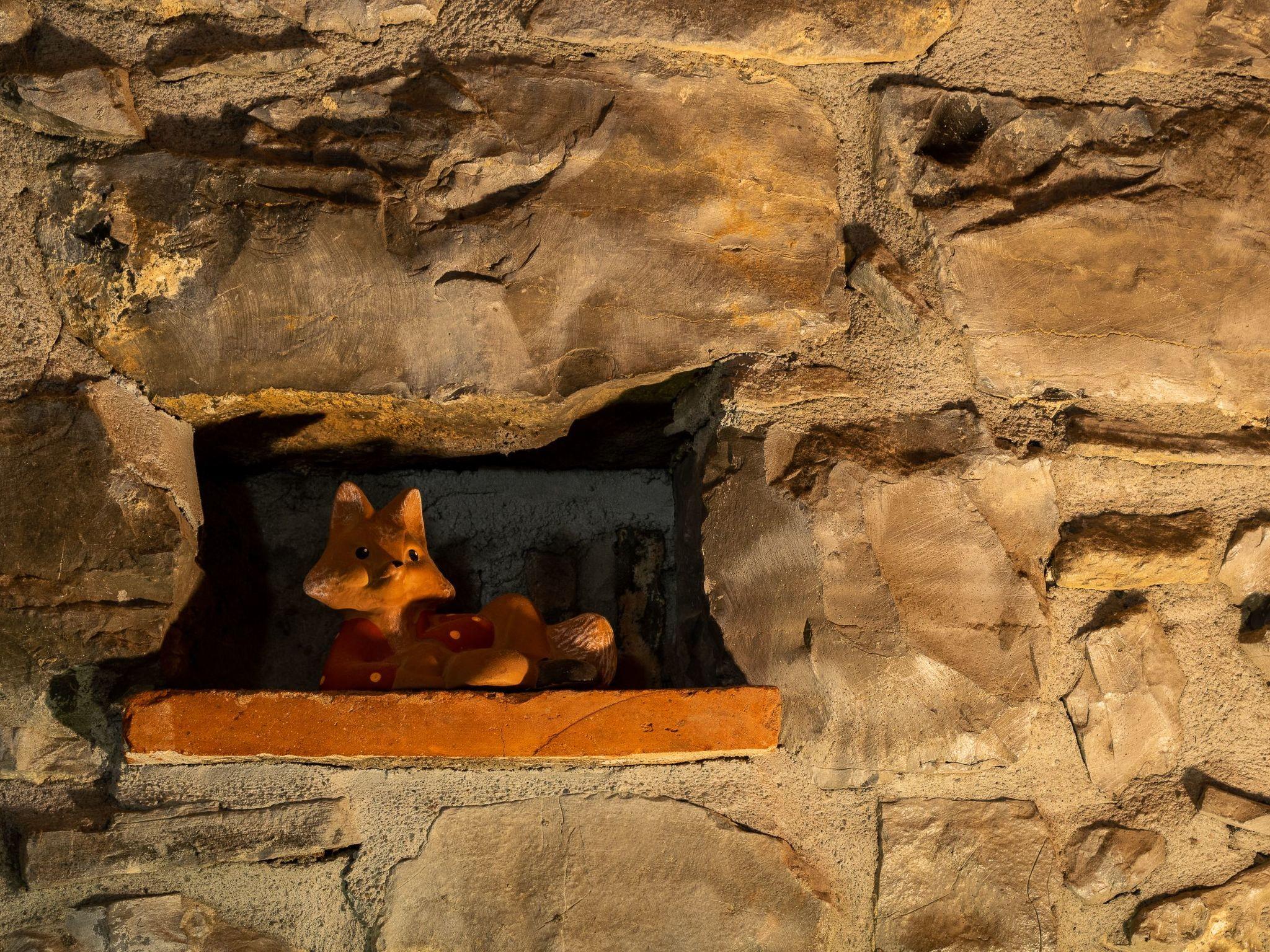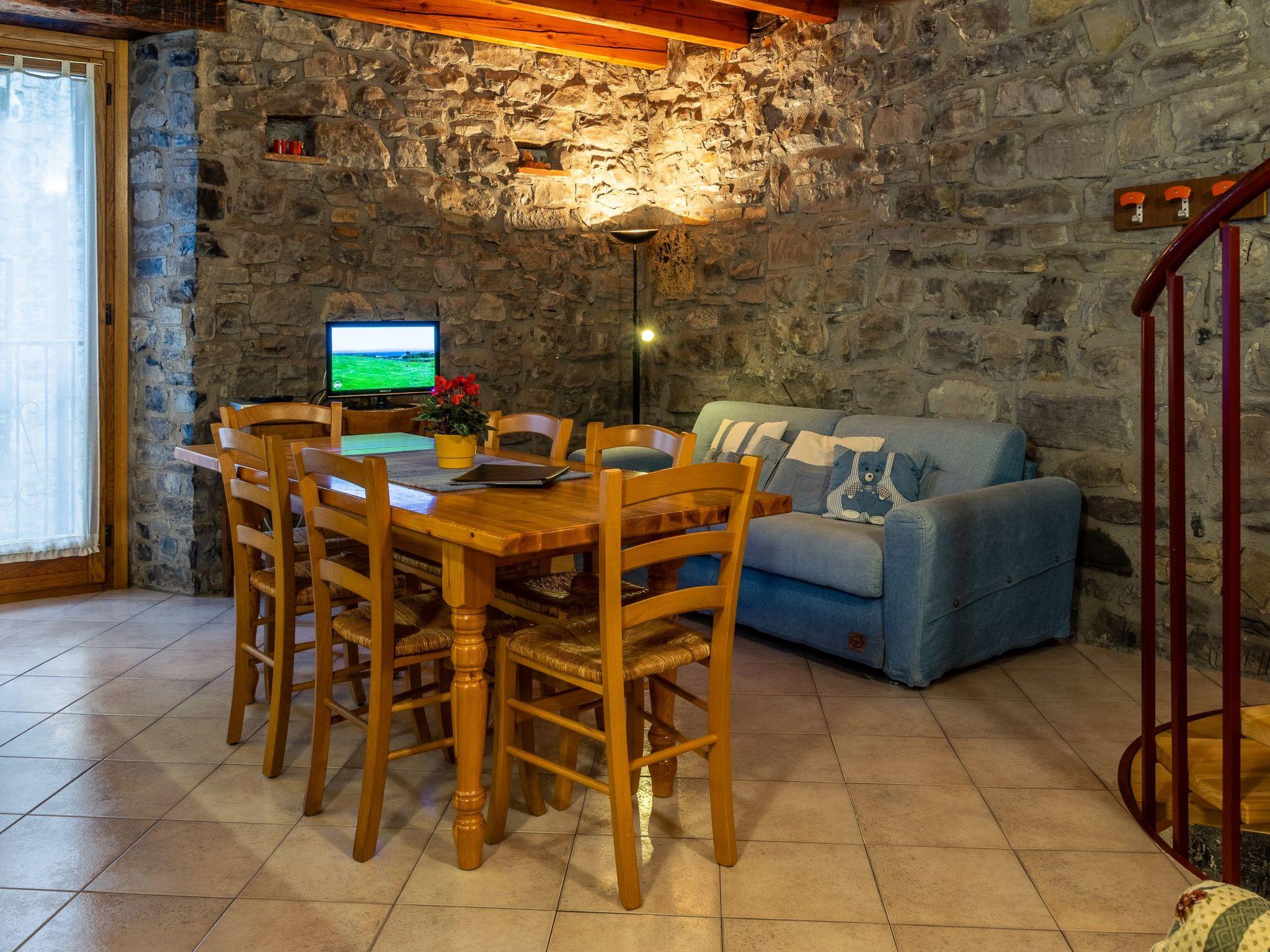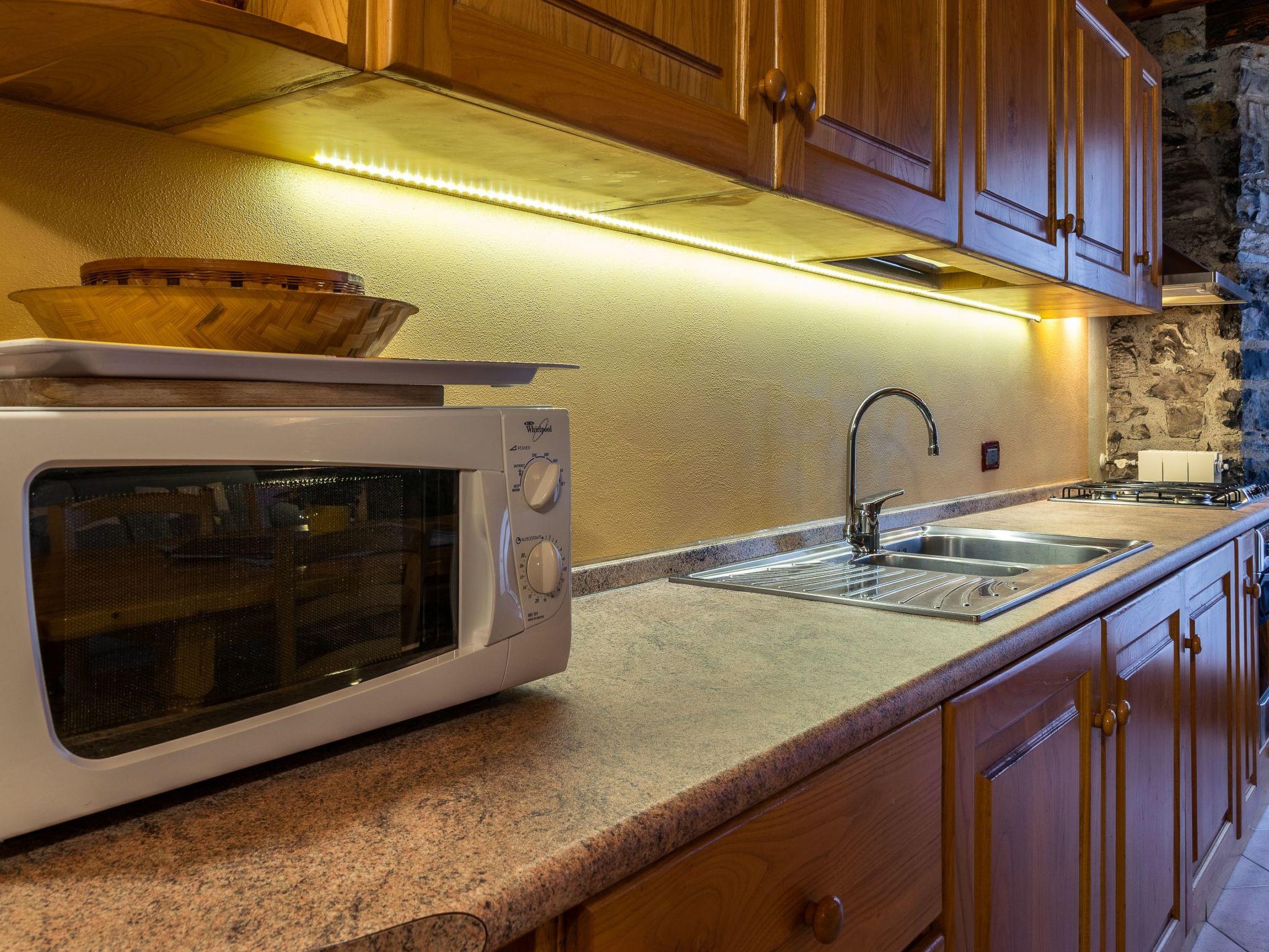 Dank der Deckenbalken und Massivholzmöbeln herrscht eine einladende mittelalterliche Atmosphäre. Im Erdgeschoss befindet sich ein Schlafzimmer mit zwei Einzelbetten (90 x 190 cm), einem Kleiderschrank, einem Badezimmer mit Dusche und Waschmaschine. Eine Wendeltreppe führt in den ersten Stock, wo sich eine große Wohnküche mit Steinwänden und einer Holzbalkendecke befindet, die mit einem großen Esstisch und Stühlen, einem Schlafsofa für zwei Personen und einem Satelliten-Smart-TV ausgestattet ist. Die Küche ist mit Mikrowelle, Gasherd, Backofen, Kühlschrank mit Gefrierfach und Geschirrspüler ausgestattet. Die Wendeltreppe führt weiter bis in die zweite Etage, wo sich ein zweites Schlafzimmer mit Doppelbett (160 x 190 cm) und großem Kleiderschrank befindet, hier befindet sich ein zweites Badezimmer mit Duschkabine. Die Wohnung ist mit einer unabhängigen Heizungsanlage ausgestattet.