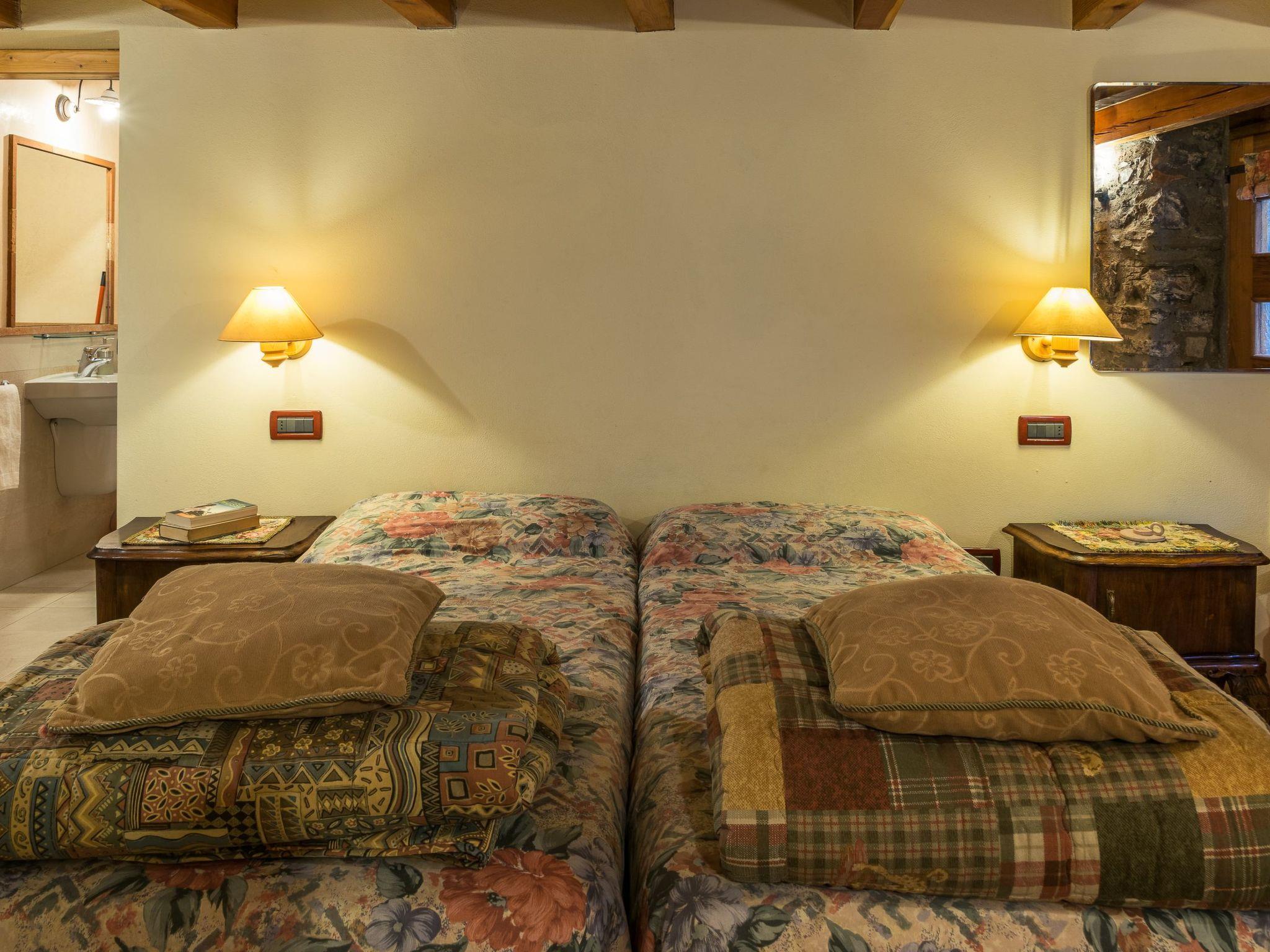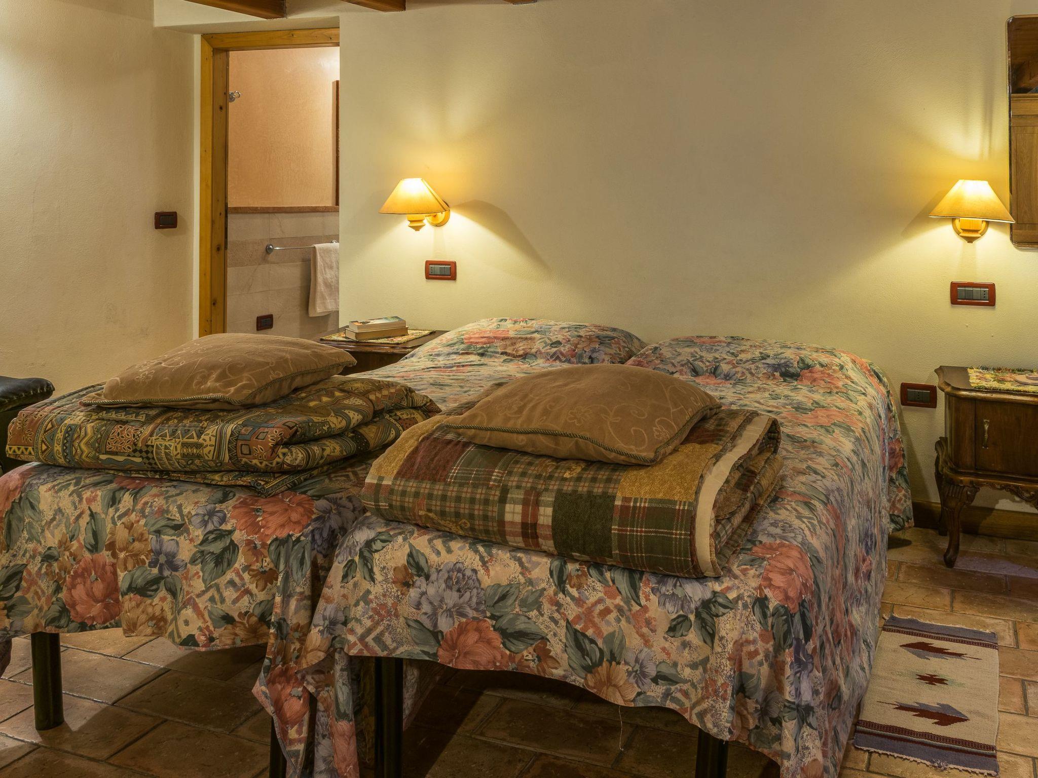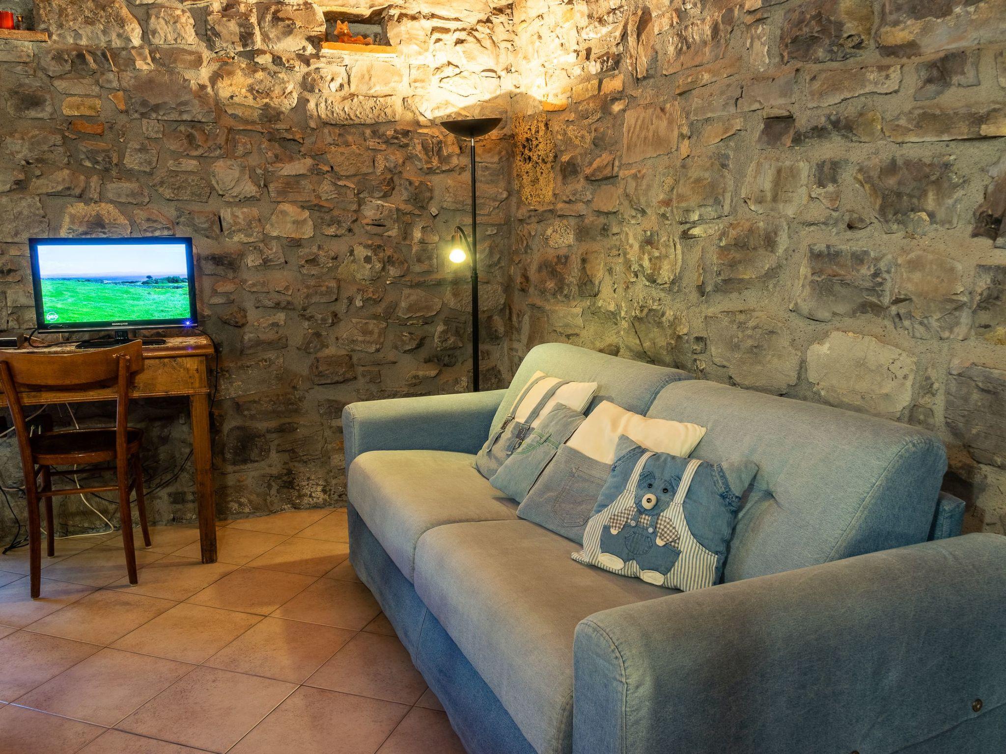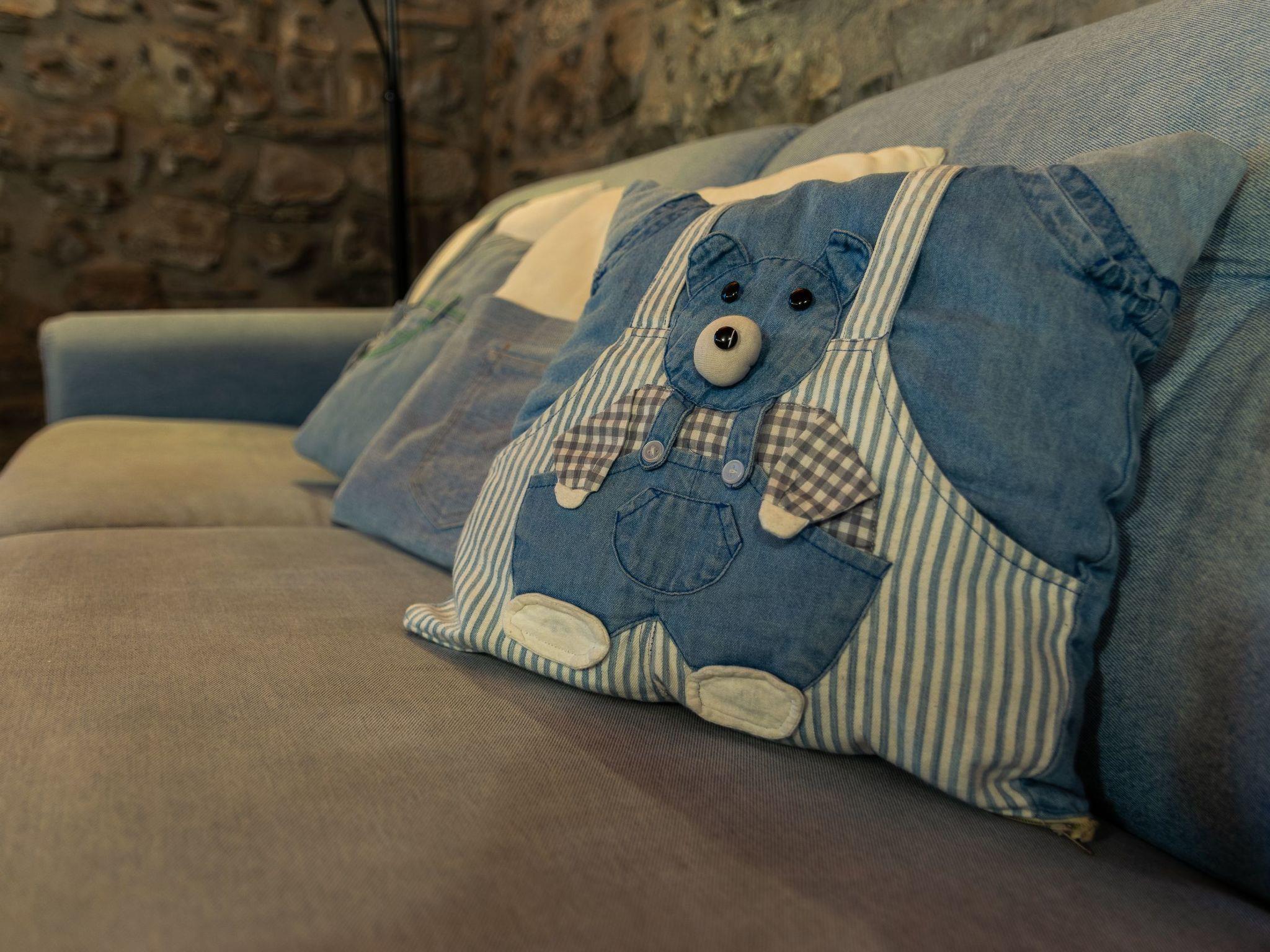 Dank der Deckenbalken und Massivholzmöbeln herrscht eine einladende mittelalterliche Atmosphäre. Im Erdgeschoss befindet sich ein Schlafzimmer mit zwei Einzelbetten (90 x 190 cm), einem Kleiderschrank, einem Badezimmer mit Dusche und Waschmaschine. Eine Wendeltreppe führt in den ersten Stock, wo sich eine große Wohnküche mit Steinwänden und einer Holzbalkendecke befindet, die mit einem großen Esstisch und Stühlen, einem Schlafsofa für zwei Personen und einem Satelliten-Smart-TV ausgestattet ist. Die Küche ist mit Mikrowelle, Gasherd, Backofen, Kühlschrank mit Gefrierfach und Geschirrspüler ausgestattet. Die Wendeltreppe führt weiter bis in die zweite Etage, wo sich ein zweites Schlafzimmer mit Doppelbett (160 x 190 cm) und großem Kleiderschrank befindet, hier befindet sich ein zweites Badezimmer mit Duschkabine. Die Wohnung ist mit einer unabhängigen Heizungsanlage ausgestattet.