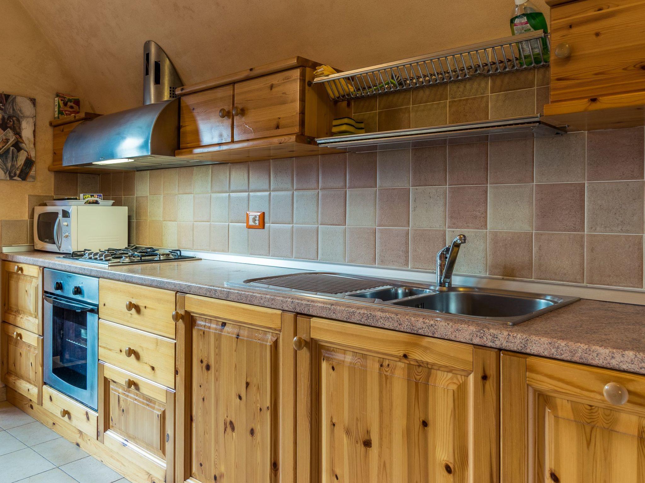 Dank der gewölbten Decke und der Massivholzmöbel herrscht eine einladende mittelalterliche Atmosphäre. Die große Küche ist mit einem Geschirrspüler, einer Mikrowelle, einem Gasherd, einem Backofen und einem Kühlschrank mit Gefrierfach ausgestattet. Außerdem gibt es einen Esstisch mit Stühlen, ein Schlafsofa für zwei Personen und einen Sat-Smart-TV. Im Schlafbereich gibt es ein Doppelbett (160 x 190 cm) und einen Kleiderschrank. Das Badezimmer verfügt über eine Dusche und eine Waschmaschine. Das Studio-Apartment ist mit einer unabhängigen Heizungsanlage ausgestattet.