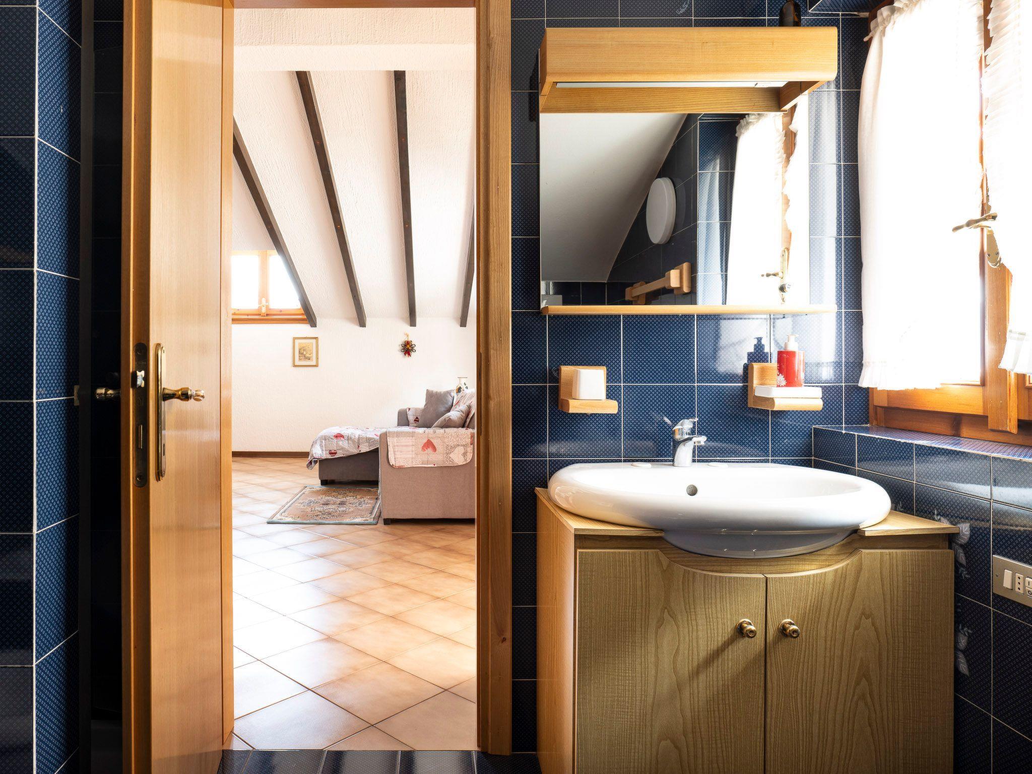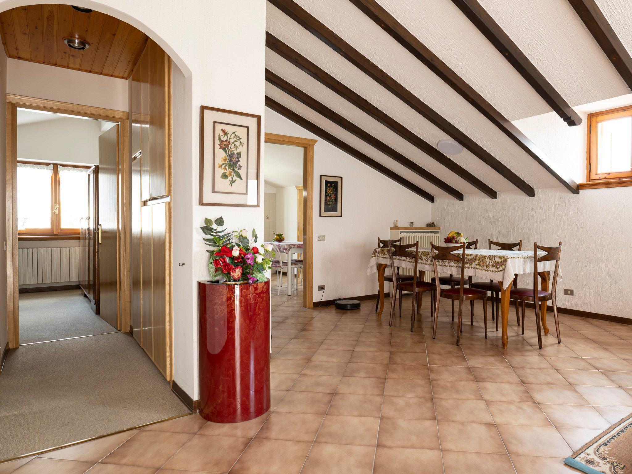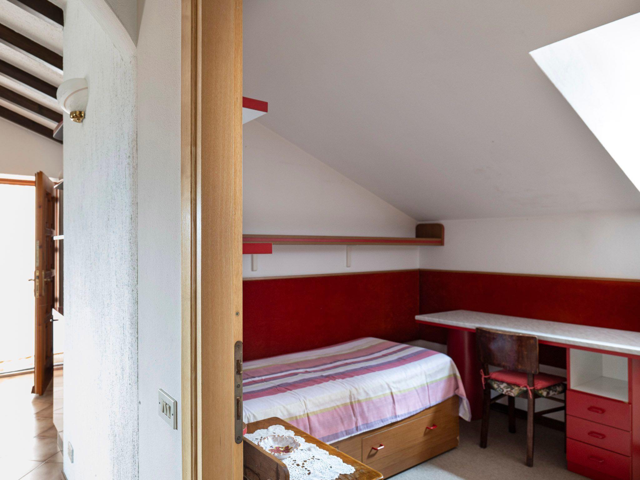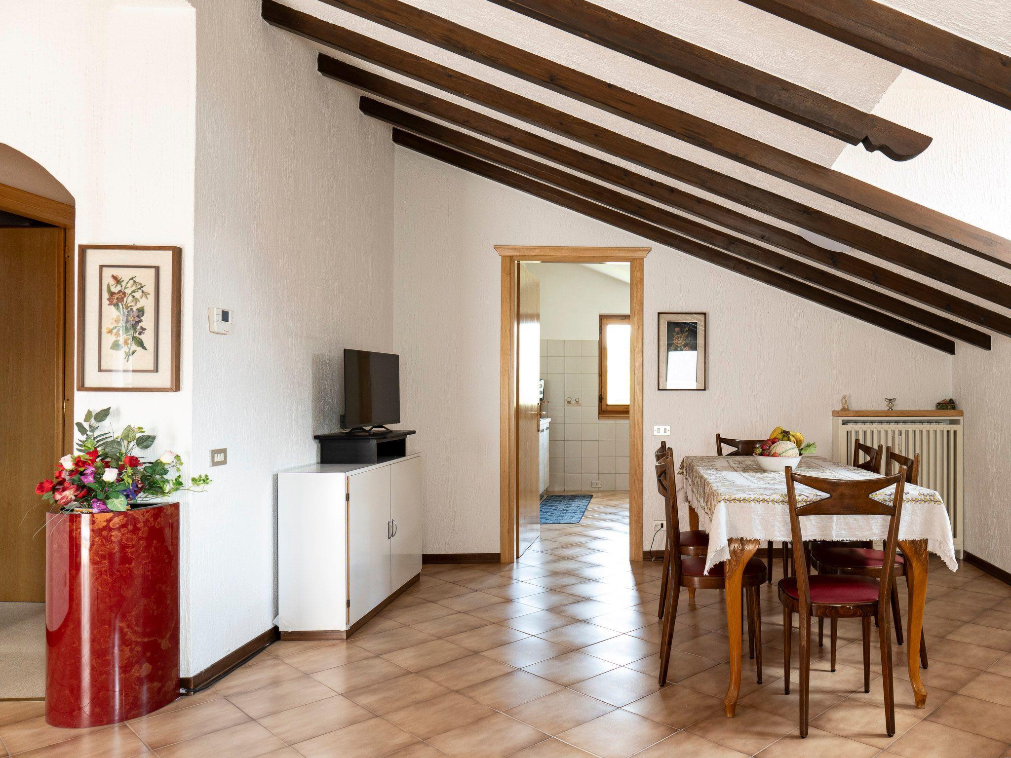 Die Dreizimmerwohnung Gioia del Verde befindet sich in der Gemeinde Tavernola Bergamasca, mit Blick auf die bergamasker Seite des Iseosees, direkt gegenüber von Montisola, in einem kleinen Gebäude in dem Teil des Dorfes, der hinter ihm den Hügel hinaufgeht. Es handelt sich um eine Mansarde mit schrägem Dach und sichtbaren Balken, die auch im untersten Teil eine gute Höhe hat und durch Dachgauben und Fenster Licht erhält.