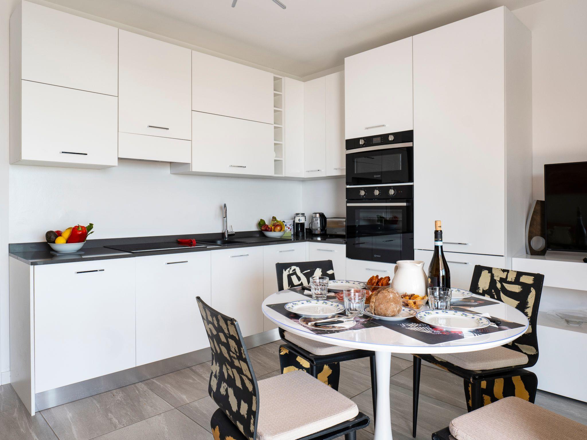 Eine gemütliche und kompakte Wohnung, sehr modern eingerichtet und ausgestattet, mit viel Licht, einer Terrasse, die auch als Raum dient, und Zugang zum Gemeinschaftspool. Ein perfekter Ausgangspunkt für einen Urlaub zu zweit am See, der mit viel Komfort genossen werden kann.