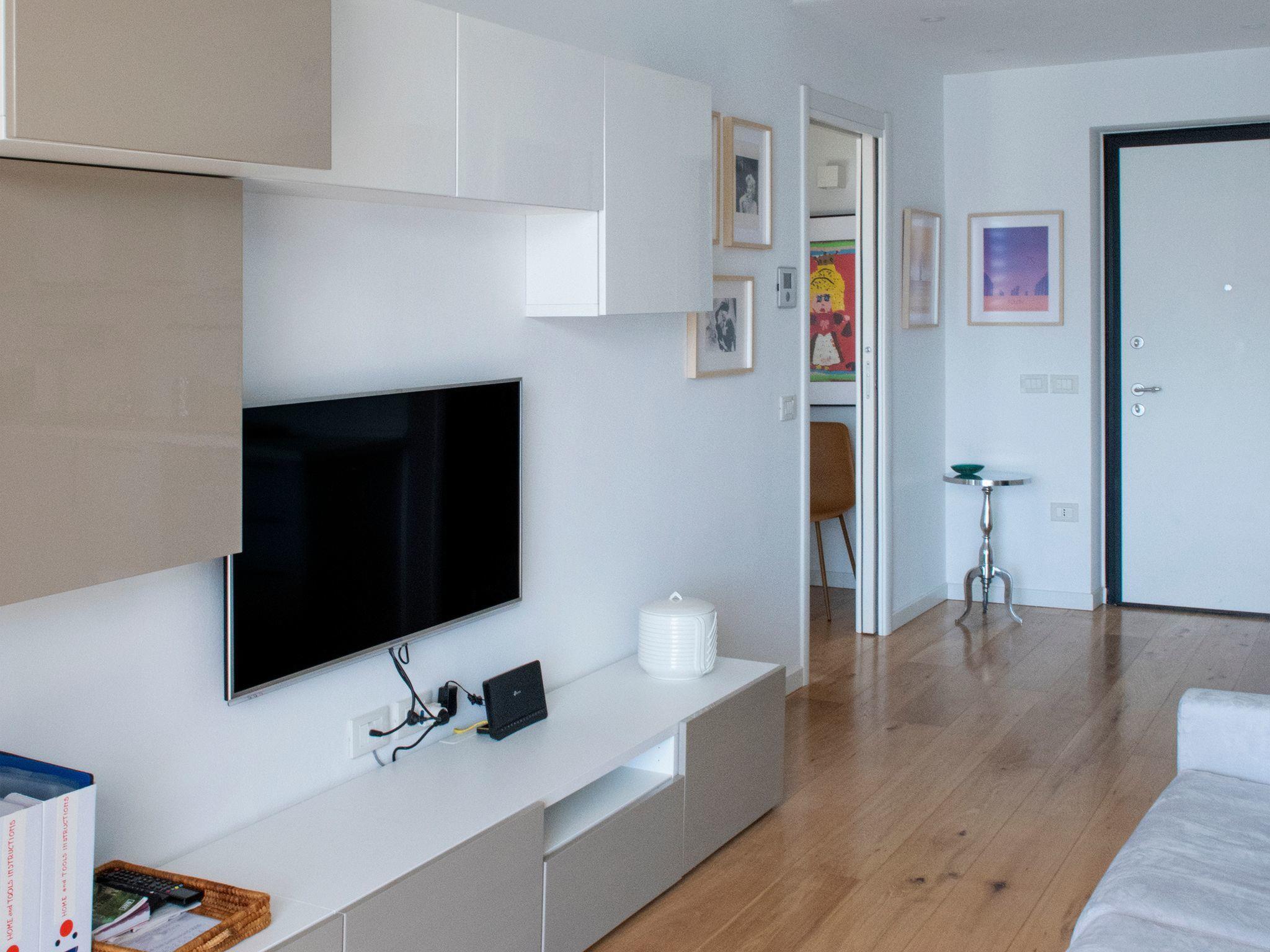 Sie betreten das Haus und blicken auf den See, dank der bodentiefen Fenster in jedem Zimmer und auf den großen, mit Super-Panorama ausgestatteten Außenbereich mit Faltmarkisen. In dem 50 qm großen Haus fühlt man sich wohl durch die Harmonie der Farben, die Raffinesse der Einrichtung und das Gefühl des Willkommenseins, das einen jederzeit begleitet. Die Shabby-Chic-Eckküche verfügt über einen Backofen, eine Mikrowelle, Induktionsplatten, einen Wasserkocher, einen Geschirrspüler, eine Moka und eine Kaffeemaschine mit Nespresso-Kapseln. Im Wohnzimmer finden Sie ein Schlafsofa, einen hängenden Fernseher, einen Tisch mit Stühlen, einen Kühlschrank und einen Gefrierschrank. Es gibt eine Waschmaschine, die Splits für Klimaanlage und Heizung sind in jedem Zimmer vorhanden, die Badezimmerarmaturen sind aufgehängt. Private Garage mit Aufzug bis zum Boden und unbegrenztes WLAN ist verfügbar.
