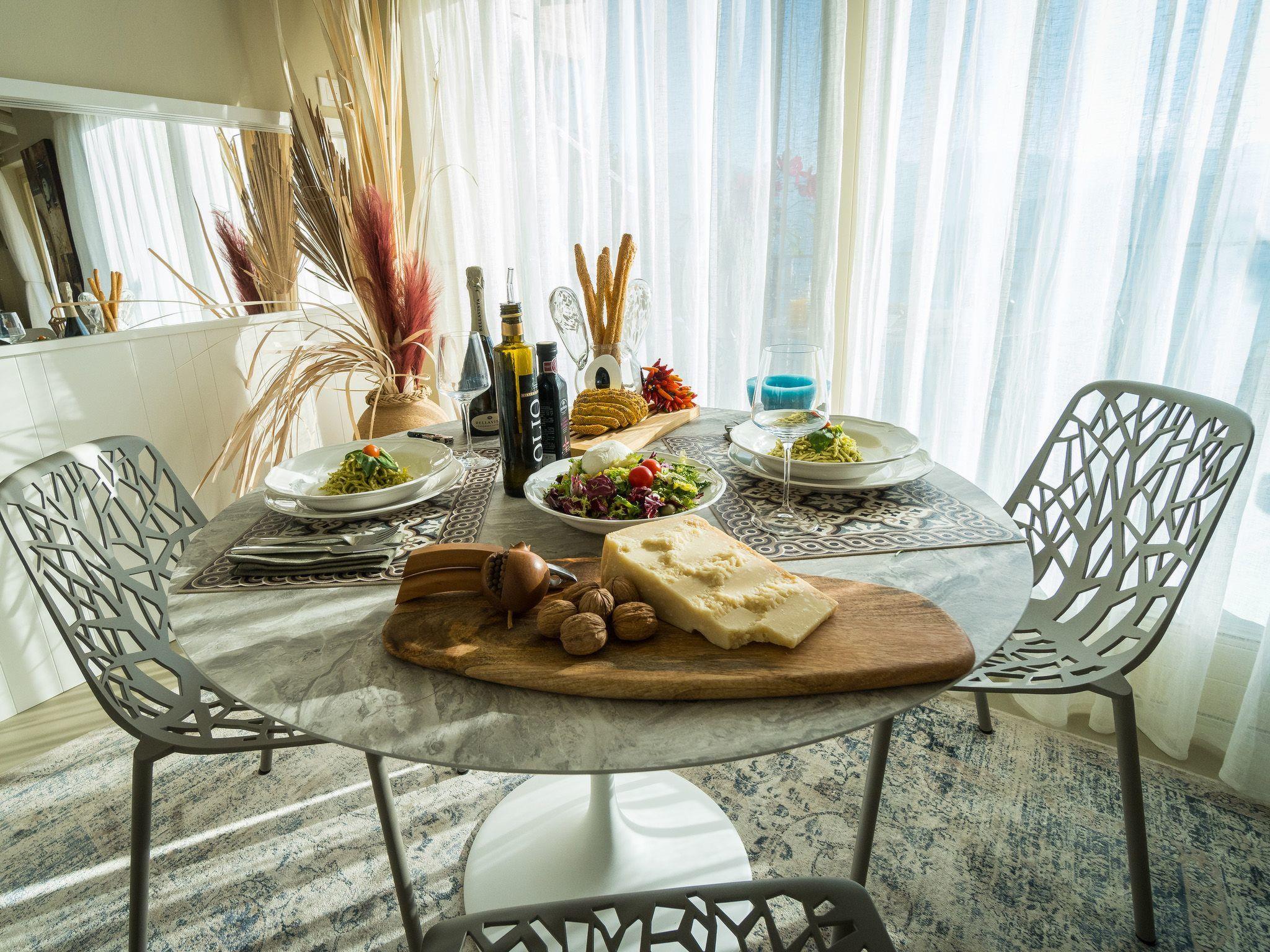 Schöne Ferien führen zur Selbstbereicherung, zum Staunen über Neues, zum Erstaunen über Schönes und gut Gemachtes, zu Emotionen, die bleiben können: Die Zweizimmerwohnung in einer kleinen Villa im ersten und obersten Stockwerk einer Anlage mit Infinity-Pool ist ein Neuanfang und die Grenze zu einem neuen Wohlbefinden.