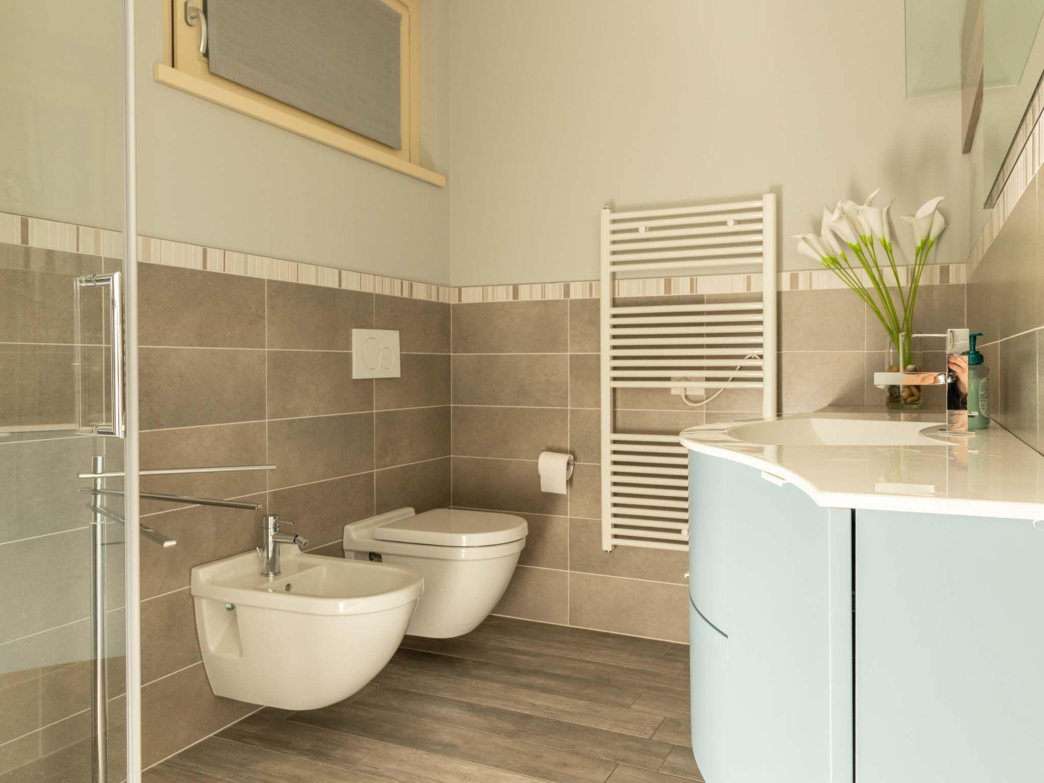Die Drei-Zimmer-Wohnung in einer Villa von über 60 Quadratmetern ist auf zwei Etagen verteilt und empfängt Sie mit einem sehr modernen, in Schwarz-, Weiß- und Blautönen gehaltenen Wohnzimmer, das aus einem Tisch, einem Schlafsofa, einer Küchenecke mit Induktionskochfeld, Kaffeemaschine und Kaffeemaschine mit Pads, Wasserkocher, Geschirrspüler und Backofen besteht. Durch die doppelte Fenstertür gelangt man in den großen Garten, der mit einer Markise und Glasbrüstungen versehen ist und einen unendlichen Blick auf den See bietet. Die Etage wird durch das kleine Schlafzimmer und das Badezimmer mit hängenden Sanitäranlagen vervollständigt. Die schraubenförmige Treppe aus Zement und Stein führt zum Hauptschlafzimmer, das aufgrund des poetischen Ausblicks durch das bodentiefe Fenster, der sichtbaren Balken und des verspiegelten Kleiderschranks, der den verfügbaren Raum vergrößert, einzigartig ist; auf dieser Etage befindet sich auch das Badezimmer, das ebenfalls mit einem hellen bodentiefen Fenster und einer emotionalen Dusche ausgestattet ist, sowie die Panoramaterrasse mit Sonnenliegen, ein wahrer Triumph der Privatsphäre und eine Apotheose der Gefühle. Es gibt unbegrenztes Wi-Fi und eine Garage mit Aufzug zur Etage.
