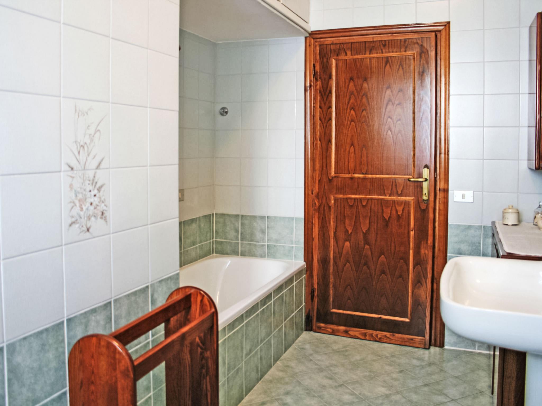 "Giovanna", 5-Zimmer-Villa 130 m2, im Erdgeschoss. Wohn-/Esszimmer mit Sat-TV und DVD. Ausgang zum Garten. 1 Doppelzimmer mit Dusche/Bidet/WC und Klimaanlage. 1 Zimmer mit 2 Betten und Klimaanlage. 1 Zimmer mit 1 Bett und Klimaanlage. 1 Zimmer mit 1 Bett. Küche (4 Kochplatten, Geschirrspüler, Mikrowelle, Tiefkühler) mit Esstisch. Bad/Bidet/WC, Dusche/Bidet/WC. G-Heizung, Klimaanlage. Heizung nur verfügbar von 01.11. bis 15.04. Grosser Garten, Rasen. Sitzplatz. Zur Verfügung: Waschmaschine, Bügeleisen, Haartrockner. Parkplatz (eingezäunt) beim Haus. Bitte beachten: Feuerlöscher. Die Betten sind bei Ankunft bezogen. IT046013B436ABLMEO