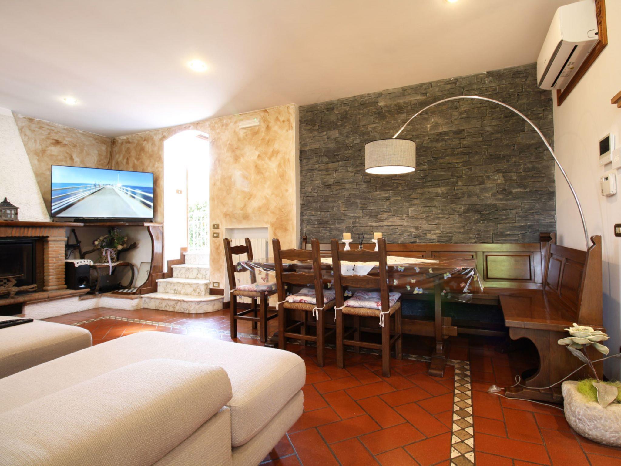 "Roberto", 4-Zimmer-Villa 120 m2 auf 2 Stockwerken. Komfortabel und gemütlich eingerichtet: Wohn-/Esszimmer mit offenem Kamin und Sat-TV (Flachbildschirm), Klimaanlage. Wohnküche (4 Kochplatten, Backofen, Geschirrspüler, Mikrowelle, Tiefkühler, elektrische Kaffeemaschine) mit Esstisch. Dusche/WC. Heizung nur verfügbar von 01.11. bis 07.04. Obergeschoss: 1 Doppelzimmer mit Klimaanlage. 1 Zimmer mit 1 franz. Bett (160 cm, Länge 190 cm), Ventilator. 1 Zimmer mit 1 x 2 Etagenbetten. Bad/Bidet/WC. Terrasse. Terrassenmöbel, Gartengrill, Sitzplatz. Zur Verfügung: Waschmaschine, Wäschetrockner, Safe, Bügeleisen, Haartrockner. Internet (WLAN, gratis). Bitte beachten: Feuerlöscher. Die Betten sind bei Ankunft bezogen. IT046013B436ABLMEO
