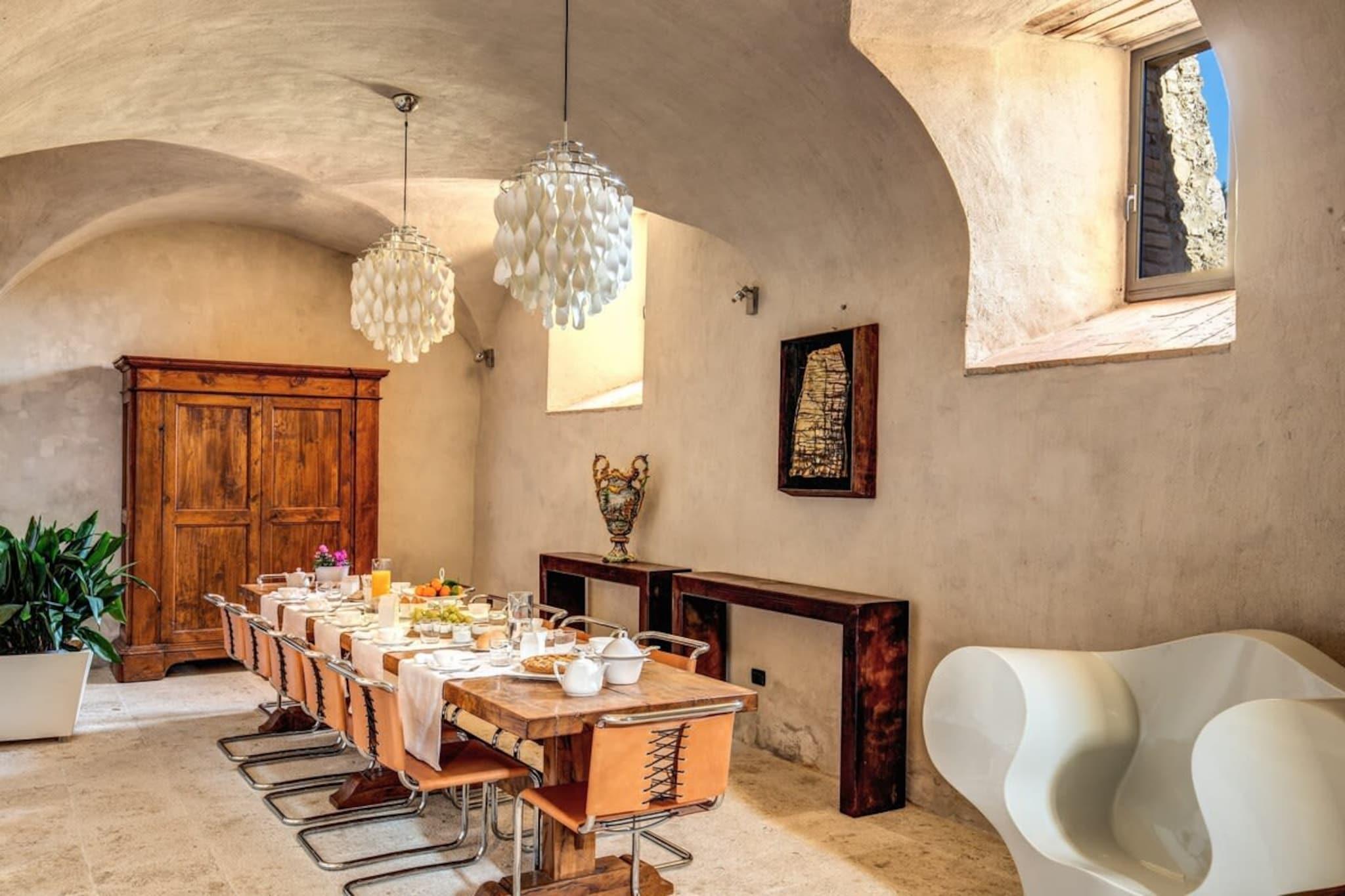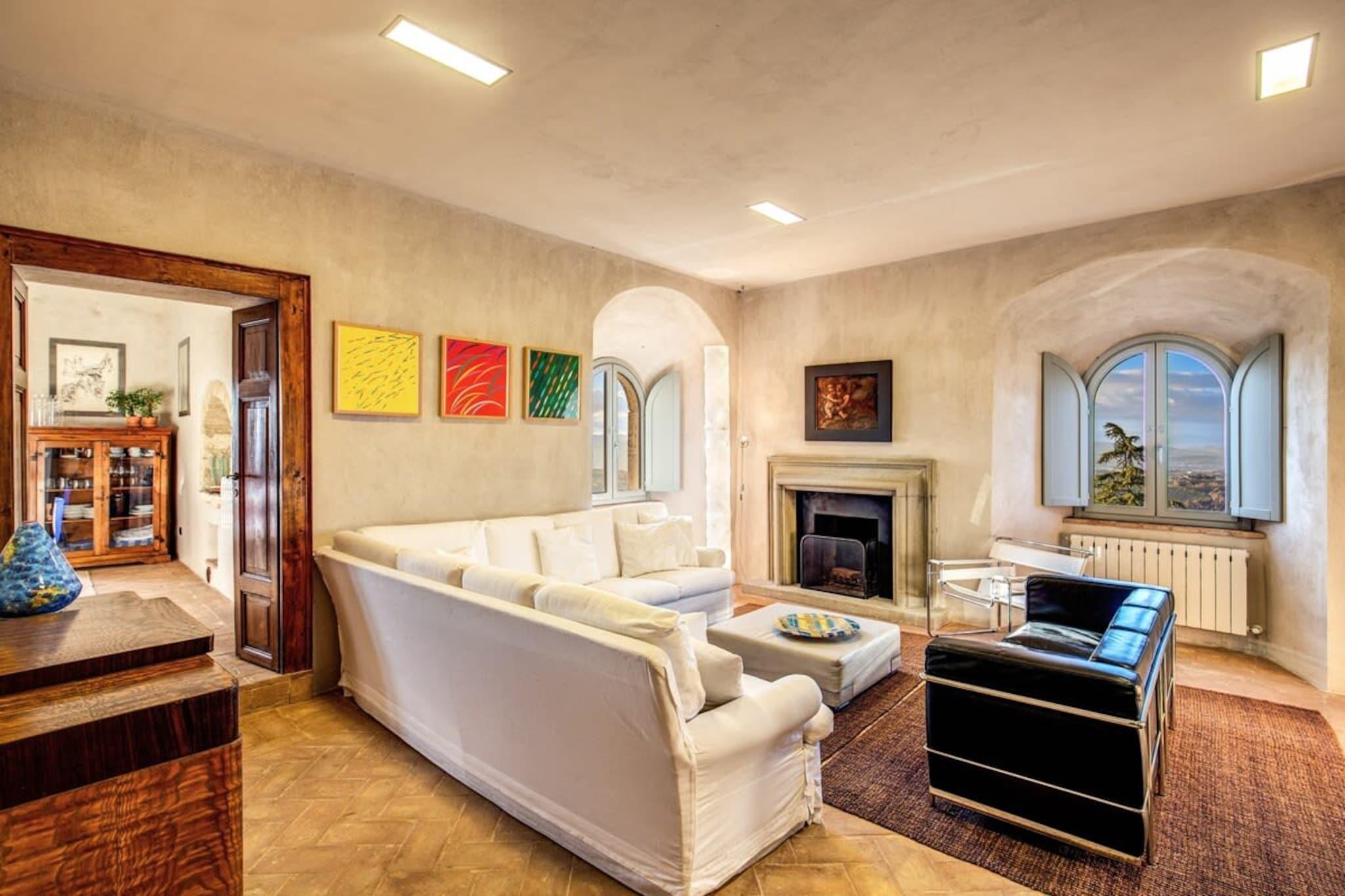 Stolz erhebt sich Torre Fortunata aus den sanften Hügeln Umbriens – ein liebevoll restaurierter mittelalterlicher Turm, ein denkmalgeschütztes italienisches Bauwerk, das in ein elegantes und einladendes Ferienhaus verwandelt wurde. Einst eine Festung, heute ein Refugium voller Stil und Komfort, lädt diese einzigartige Residenz Familien und Freunde ein, den Zauber italienischer Geschichte, vereint mit modernem Luxus, zu erleben. Nur wenige Minuten von der berühmten Stadt Todi entfernt, bietet der Turm einen Panoramablick über die Landschaft und eine gute Anbindung an die kulturellen Schätze der Region – von Perugia und Orvieto bis Assisi, Spoleto, Deruta und darüber hinaus. Gestalten Sie Ihren Tag so aktiv oder ruhig, wie Sie möchten, mit der persönlichen Unterstützung Ihrer Gastgeber und einem interaktiven digitalen Gästeführer, der Sie zu Ihren Abenteuern inspiriert. Im Inneren erstreckt sich Torre Fortunata über mehrere Etagen und verbindet antike Steinmauern mit edlem Interieur. Der Turm verfügt über sechs einladende Schlafzimmer und sechs Badezimmer, die alle mit viel Liebe zum Detail und Komfort gestaltet wurden. Großzügige Wohnbereiche umfassen gemütliche Lounges mit Kaminen und mehrere voll ausgestattete Küchen, ideal für Familienfeiern oder private Dinner. Auch im Außenbereich setzt sich der Charme fort: Terrassen mit Blick auf die mit Olivenbäumen bewachsenen Hügel, ein privater Pool und ruhige Patios laden zum morgendlichen Kaffee oder einem Aperitif bei Sonnenuntergang ein. Moderner Komfort ist reichlich vorhanden – Klimaanlage, WLAN, Waschmaschine und alles, was Familien benötigen, inklusive Kinderbett und Hochstuhl. Haustiere sind herzlich willkommen, sodass sich hier jeder wie zu Hause fühlt. Hier ist die Geschichte in jedem Stein spürbar, während zeitgenössische Eleganz für einen Aufenthalt voller unbeschwerter Freude sorgt – ein wahrhaft außergewöhnliches italienisches Refugium, in dem Vergangenheit und Gegenwart in perfekter Harmonie verschmelzen.