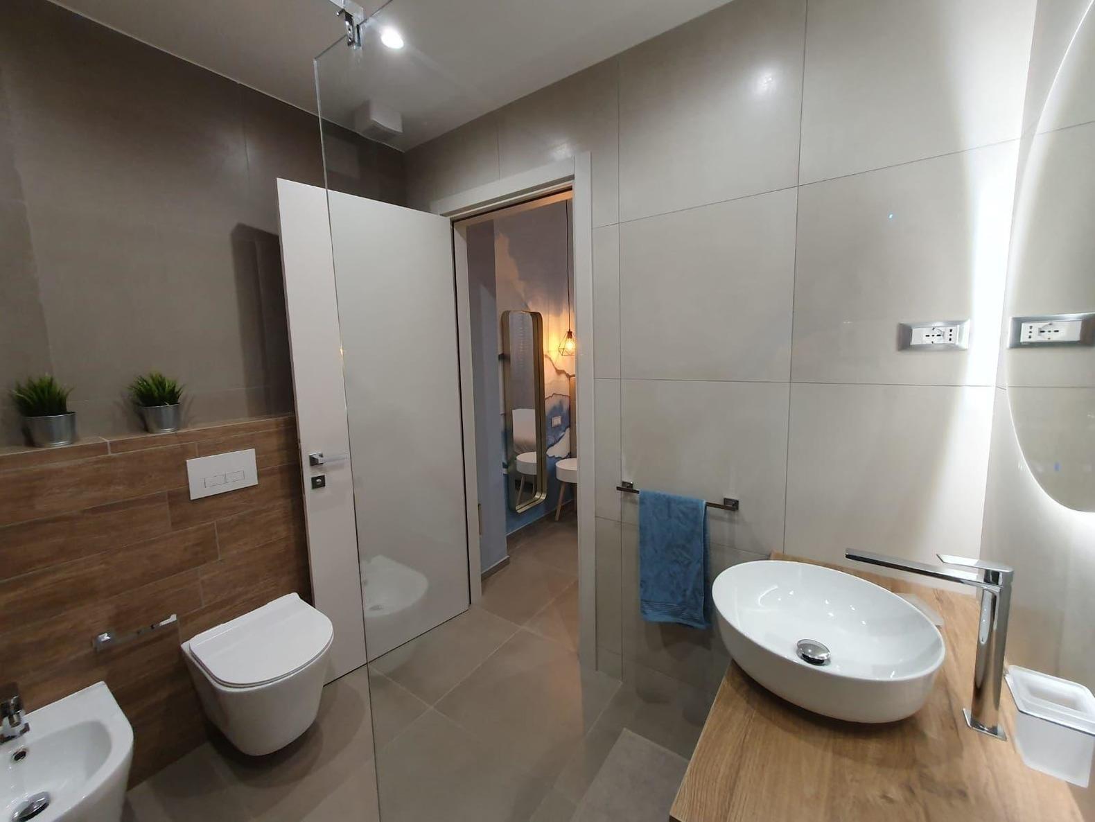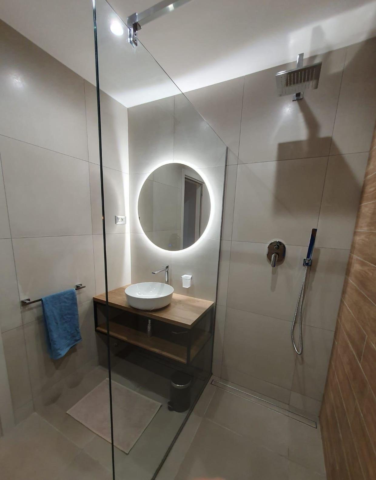 Zwei Bäder mit begehbarer Glasdusche
